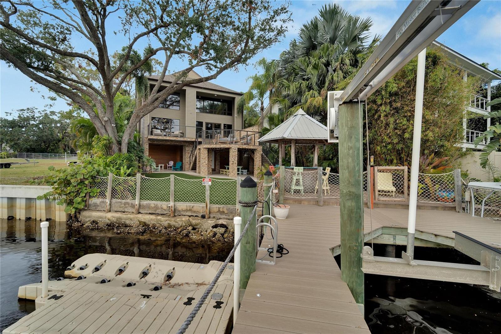 Casa de 3 quartos com 3.225 pés quadrados, mais de 260 pés de orla do rio Hillsborough, 2 docas, 3 elevadores, 1 doca flutuante de jet ski, tudo em 0,91 acres de terreno. Desfrute de vistas deslumbrantes do rio Hillsborough a partir deste imóvel de primeira linha à beira-mar. À venda está o lote duplo localizado em 4033 N River View e a casa unifamiliar localizada em 4035 N River View. Aqui estão as informações sobre ambas as propriedades. Total de 0,91 MOL acres de terreno com mais de 260 pés de orla marítima + 2 docas com 3 elevadores e doca flutuante para jet ski. Esta casa de três andares e 3.225 pés quadrados ocupa 0,21 acres de terreno e possui três quartos com banheiro privativo, tornando-a o espaço perfeito para entretenimento. Saia para um deck de vários níveis, completo com uma área de churrasqueira ao ar livre lindamente construída, ancoradouro com um elevador, eletricidade, água, estação de limpeza de peixes e um cais flutuante para seu jet ski. As portas francesas fornecem acesso contínuo dos espaços ao ar livre à sala de estar aberta, cozinha e área de jantar. A cozinha é espaçosa, com armários de madeira, bancada em granito, eletrodomésticos em aço inox, balcão e despensa. Convenientemente, um dos três quartos com casa de banho privada está localizado no segundo andar. O terceiro andar abriga a suíte master, que oferece vistas deslumbrantes para o mar, pia dupla com bancada de granito, box de chuveiro, closet e amplo armazenamento de roupa de cama. Os quartos secundários em suite têm dimensões generosas, proporcionando muitas opções de arrumação. Recursos adicionais incluem piso de madeira, pintura fresca e atualizações modernas, como um novo telhado (2023), um aquecedor de água (2022) e duas unidades HVAC (2013, 2010). A grande lavanderia está localizada na garagem para maior comodidade. Adjacente a esta propriedade localizada em 4033 N River View está um lote duplo de 0,67 acres com 219 pés lineares de frente para o rio. Este lote inclui um novo paredão de concreto, uma nova doca acomodando de 5 a 6 barcos e um teleférico DECO de acionamento direto em aço inoxidável 516 com capacidade de 10.000 libras para dois barcos. A área é ainda reforçada por uma estação de limpeza de peixes, água, eletricidade e decks compostos feitos de tábuas 2x6 de comprimento total. O terreno recém-classificado oferece o cenário ideal para construir a casa dos seus sonhos. Passe seus fins de semana navegando pelo rio até restaurantes populares, como Rick's on the River, Armature Works e Ulele. Esta propriedade está convenientemente localizada a poucos minutos do centro de Tampa, I-275, Raymond James Stadium, Legends Field e Aeroporto Internacional de Tampa.