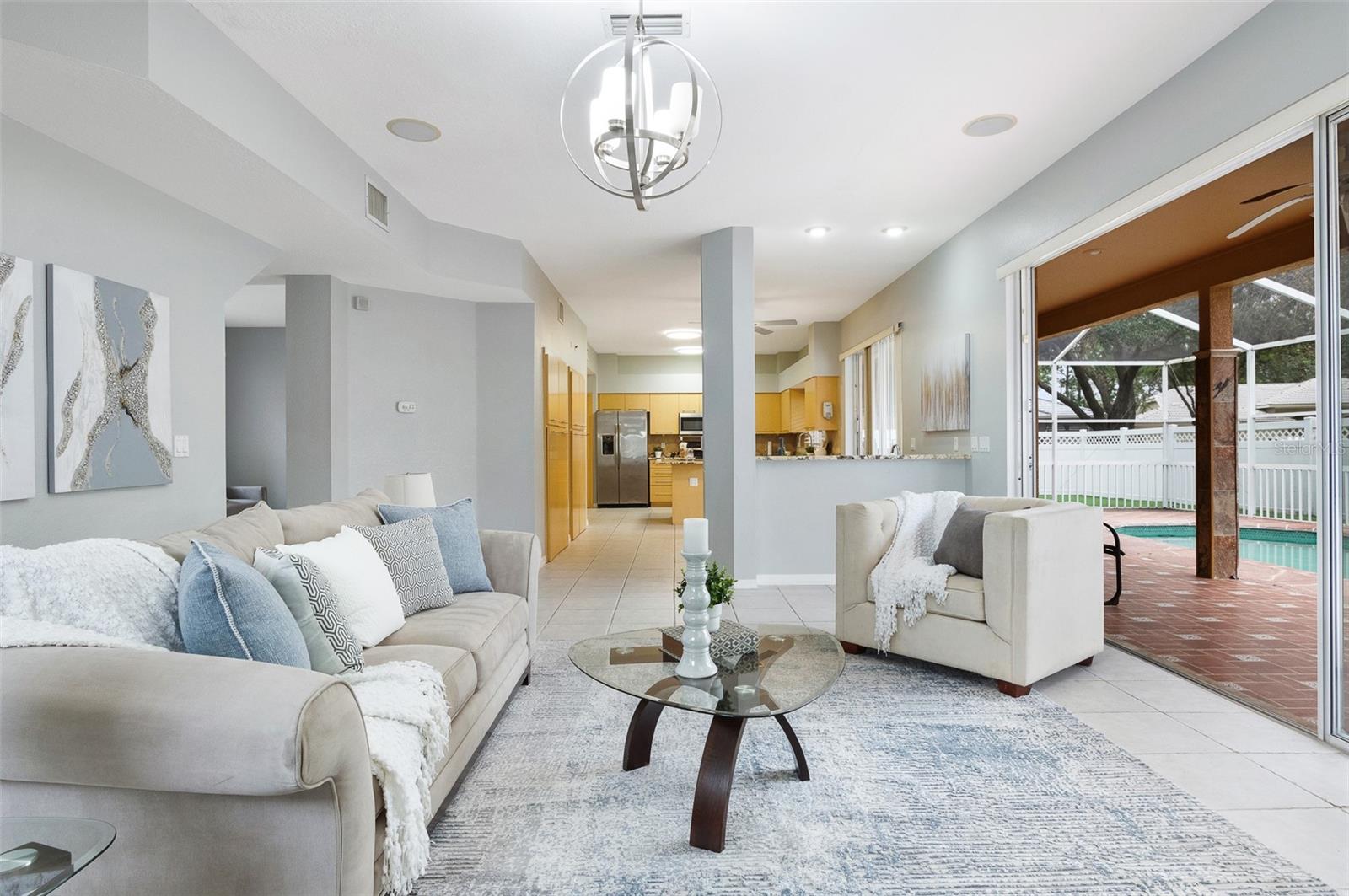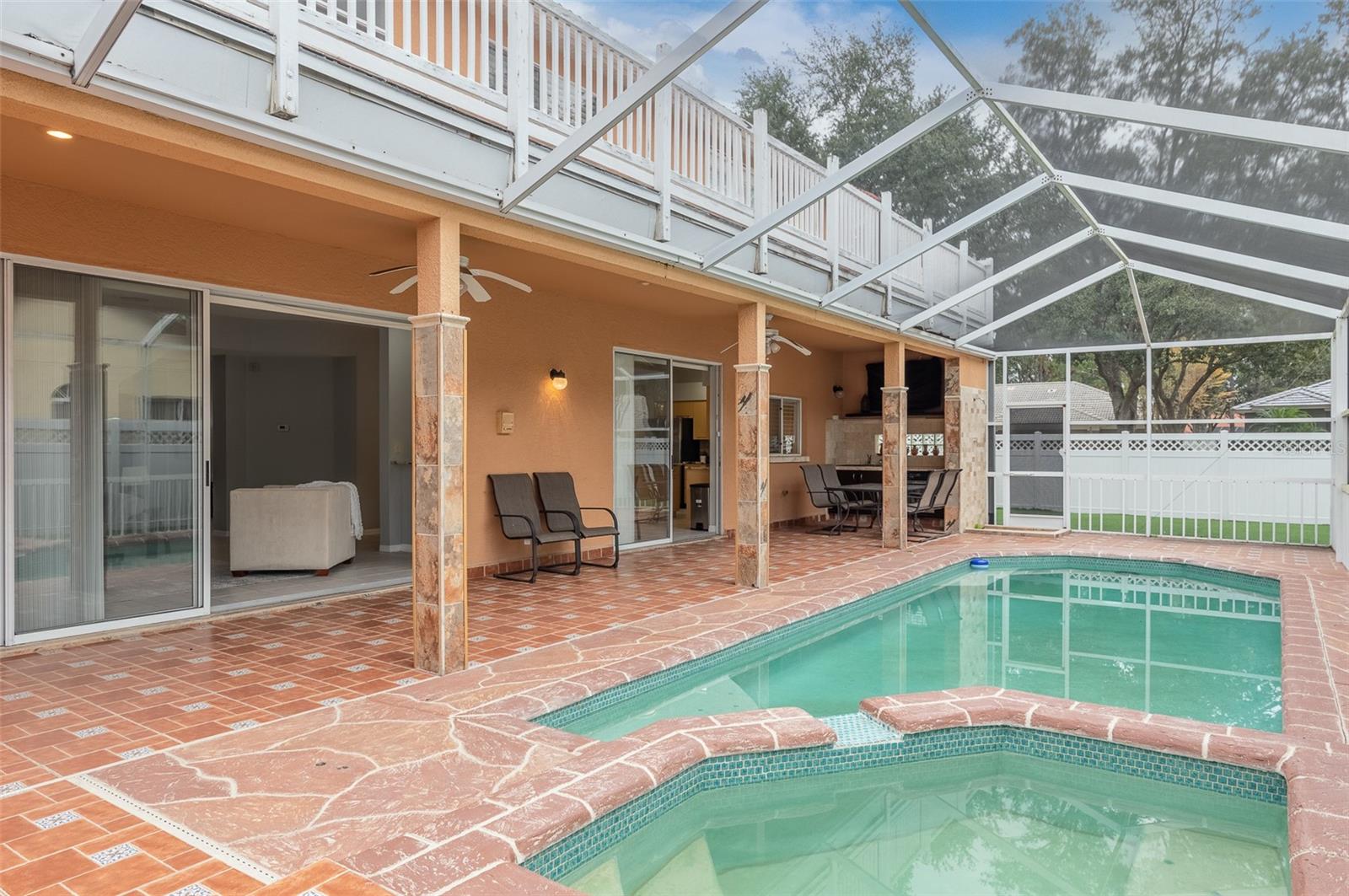 Bem-vindo a esta deslumbrante casa em Rutenberg, construída sob medida, na exclusiva e fechada subdivisão Stonebridge de Hunters Green - uma das comunidades mais desejáveis de New Tampa. Situada em um terreno de esquina dramático com paisagismo tropical exuberante, esta casa de dois andares possui 4 quartos no andar de cima e uma sala versátil (ou 5º quarto) no primeiro andar, perfeita para uma sala de jogos, escritório ou suíte de hóspedes. A luxuosa suíte master inclui área de estar, varanda privativa, banheira de imersão e banheiro atualizado. A cozinha gourmet possui bancadas de granito, eletrodomésticos de aço inoxidável, bar molhado e amplo armazenamento. Aprecie a elegância do piso de porcelanato, complementado por tetos abobadados e muita luz natural. Saia para um quintal totalmente cercado com uma piscina cintilante, spa relaxante e uma varanda espaçosa, ideal para entretenimento. Além disso, uma área generosa com piso de grama artificial oferece o playground perfeito. As atualizações modernas incluem unidades de ar condicionado com eficiência energética e fiação de som surround. Com garagem para 3 carros, muito armazenamento e acesso às comodidades em estilo resort de Hunters Green - campo de golfe, parques, trilhas, quadras de tênis e parque para cães - esta casa está perfeitamente localizada perto da I-75, das melhores escolas, lojas , restaurantes e hospitais. Pronto para morar e pronto para uso, esta é sua chance de possuir um pedaço do paraíso em New Tampa. Agende sua exibição hoje mesmo!