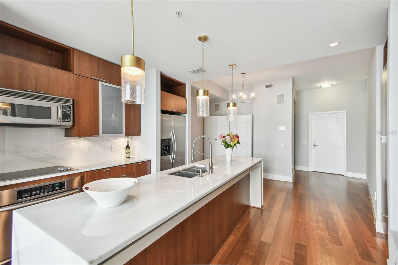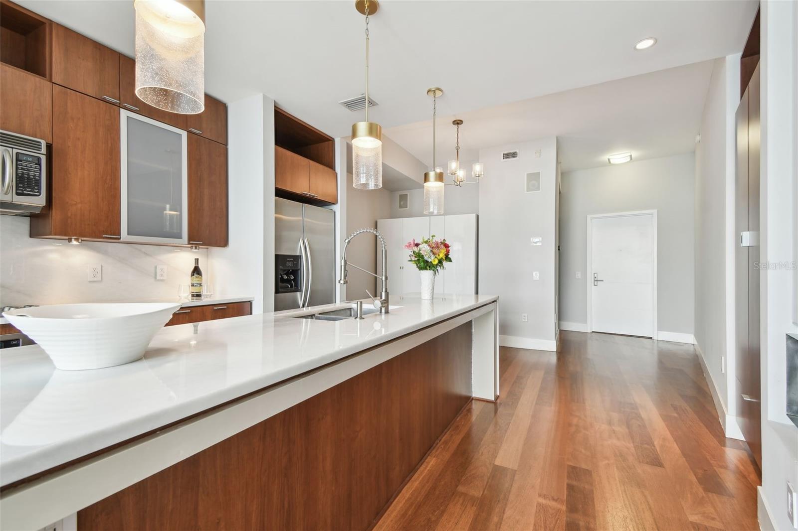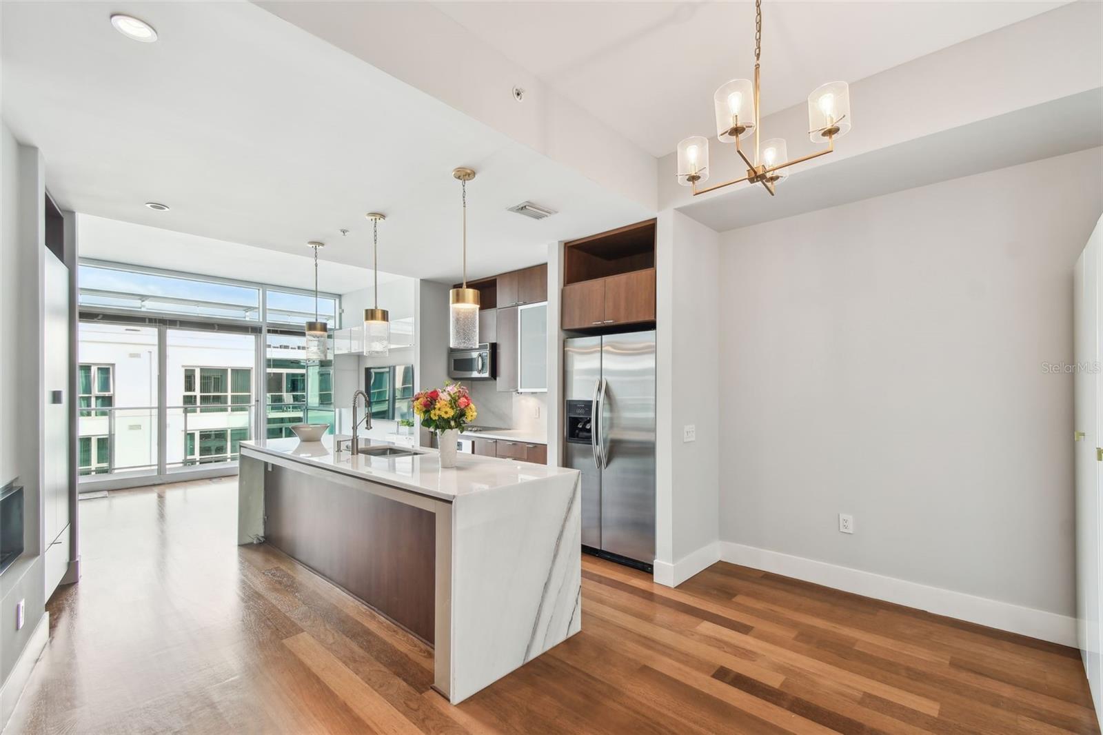 IMPRESSIONANTE CONDOMÍNIO NO ÚLTIMO ANDAR NO PROCURADO DISTRITO DE CHANNELSIDE! Este layout aberto no último andar oferece um espaço fresco e atualizado e uma combinação imbatível de luxo, conveniência e estilo! Este condomínio apresenta um interior recém-pintado com novo piso de cerâmica no quarto e madeira de lei recém-reformada por toda parte. Também possui janelas do chão ao teto que proporcionam muita luz natural e vista para a piscina e para uma paisagem exuberante. A cozinha possui uma ilha central em "cascata" de mármore recapeado, eletrodomésticos de aço inoxidável e uma pia dupla de aço inoxidável, tornando-a perfeita tanto para cozinhar quanto para entretenimento do dia a dia. Um grande closet e um banheiro privativo completo com banheira de imersão e chuveiro separado aumentam o conforto e apelo deste condomínio, enquanto a iluminação de designer adiciona um toque moderno. Saia para sua varanda privada através da porta de vidro deslizante com grades de vidro elegantes para vistas desobstruídas e relaxe com um coquetel ou uma xícara de café. Além disso, este condomínio em particular possui unidades de armazenamento extras embutidas, o que não só ajuda a maximizar o espaço do condomínio, mas também contribui para um ambiente de vida mais funcional e esteticamente agradável. É uma excelente forma de manter a desordem sob controle e aproveitar ao máximo cada centímetro do condomínio. Aproveite a conveniência adicional de uma vaga de estacionamento coberta designada na garagem anexa e acesso por chaveiro para maior segurança. O Place at Channelside oferece uma variedade de comodidades premium, incluindo piscina, sauna, academia, clubhouse e terraço na cobertura. A gestão no local e o segurança garantem tranquilidade, enquanto a proximidade da propriedade com o centro de Tampa, Water Street, Sparkman Wharf, Amalie Arena e Tampa Riverwalk coloca você no centro de tudo! Com restaurantes e lojas fantásticos a poucos quarteirões de distância, este condomínio realmente oferece o melhor da vida em Tampa e é uma ótima opção para quem procura um condomínio conveniente e de baixa manutenção em um bairro vibrante. Bem-vindo ao "lado CHANEL", é onde você precisa estar!!