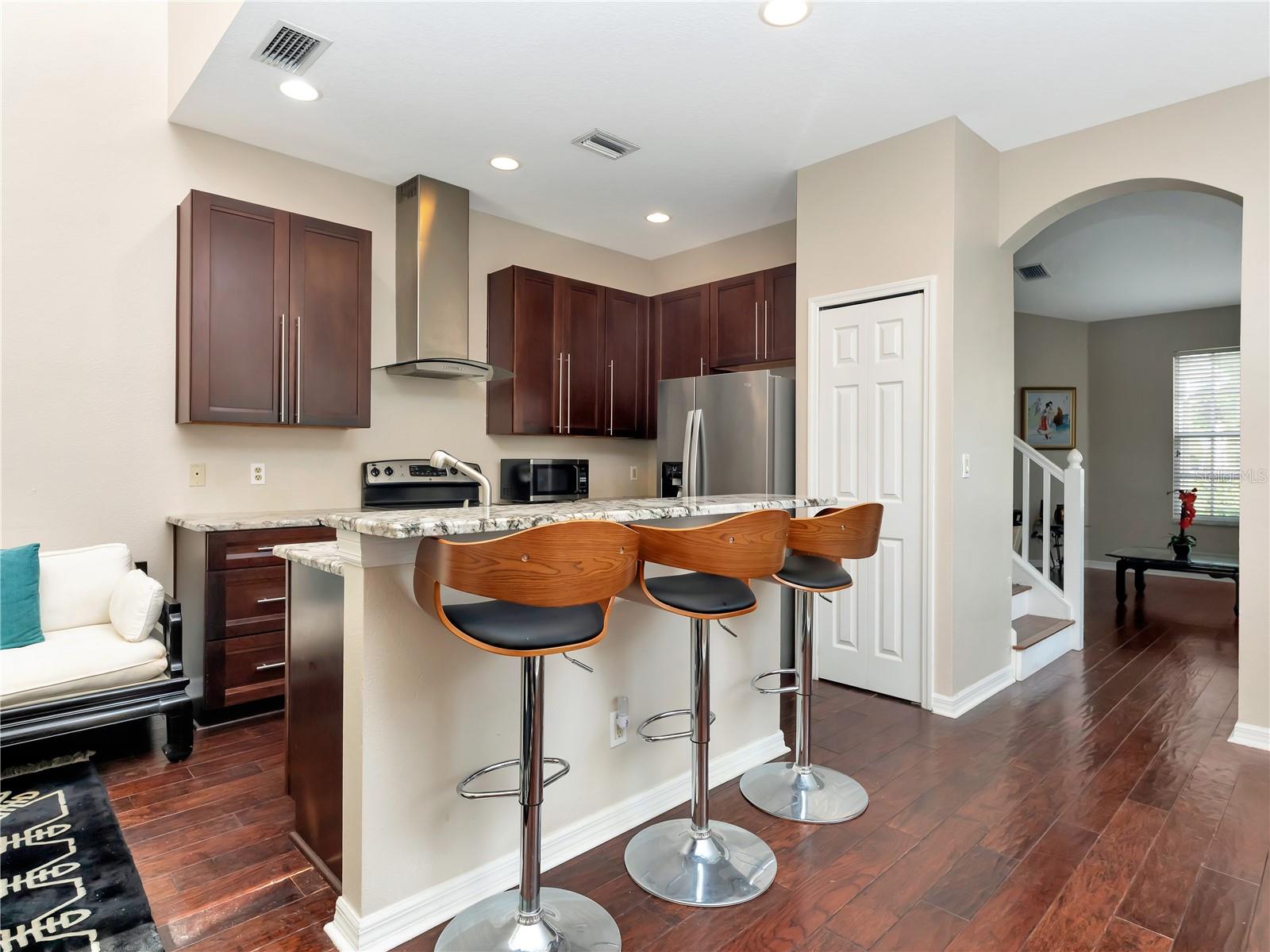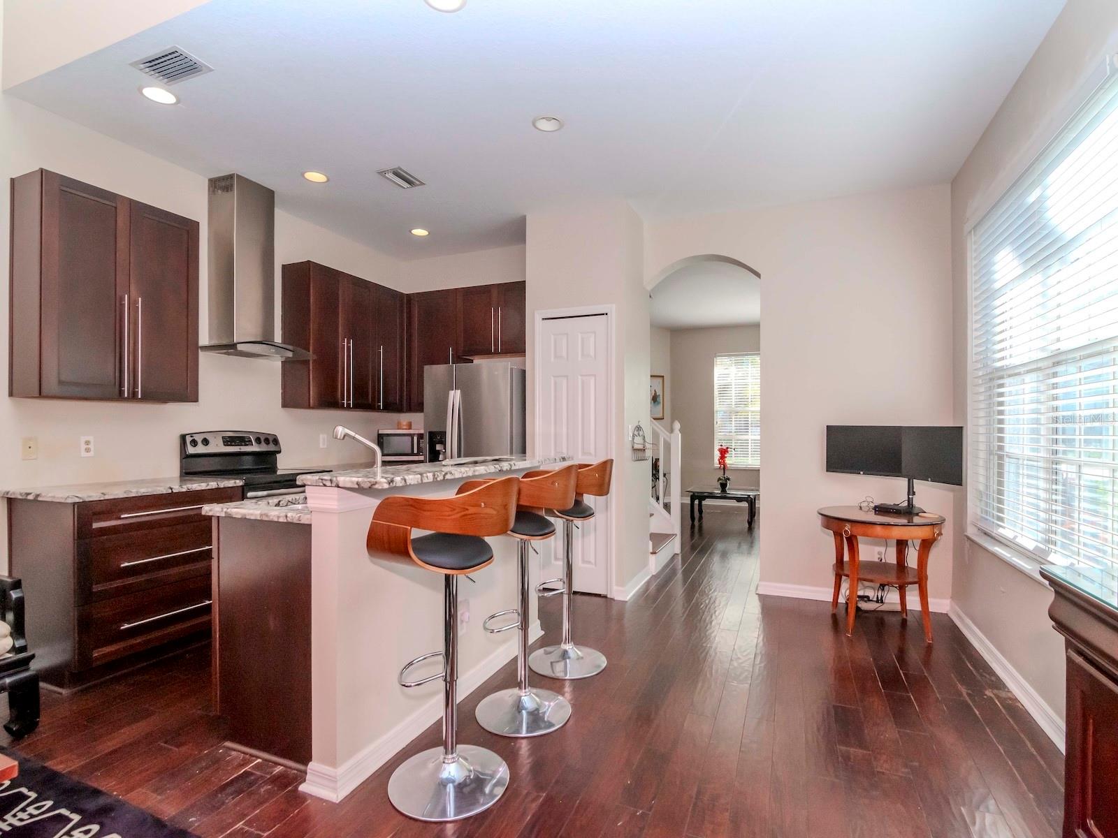 *O vendedor está oferecendo uma garantia residencial e um crédito de US $ 5.000 para o comprador usar para fechar custos ou avaliar o empréstimo atual do vendedor (se o comprador estiver qualificado) e tiver uma grande e baixa taxa de juros de 3,09* Descubra o charme desta espaçosa unidade final do Townhome na tranquila comunidade da Casa Blanca, aninhada entre Westchase e Citrus Park. Este condomínio de 3 quartos e 2,5 banho possui um interior recém -pintado e uma ótima planta baixa com tetos abobadados e pisos de madeira nas áreas de estar. The sleek eat in kitchen boasts 42" wood cabinets, granite countertops, a center island, stainless-steel appliances and stainless steel range hood. Sliding doors off of the family room open to a relaxing outside space with a wood deck and a conservation view. The primary bedroom is located on the first floor and includes a large walk-in closet, en-suite bathroom with a dual sink vanity and a vast walk-in shower. The second floor has two oversized Quartos, um banheiro completo e um espaço no topo da escada que faria o recanto de leitura perfeito.
