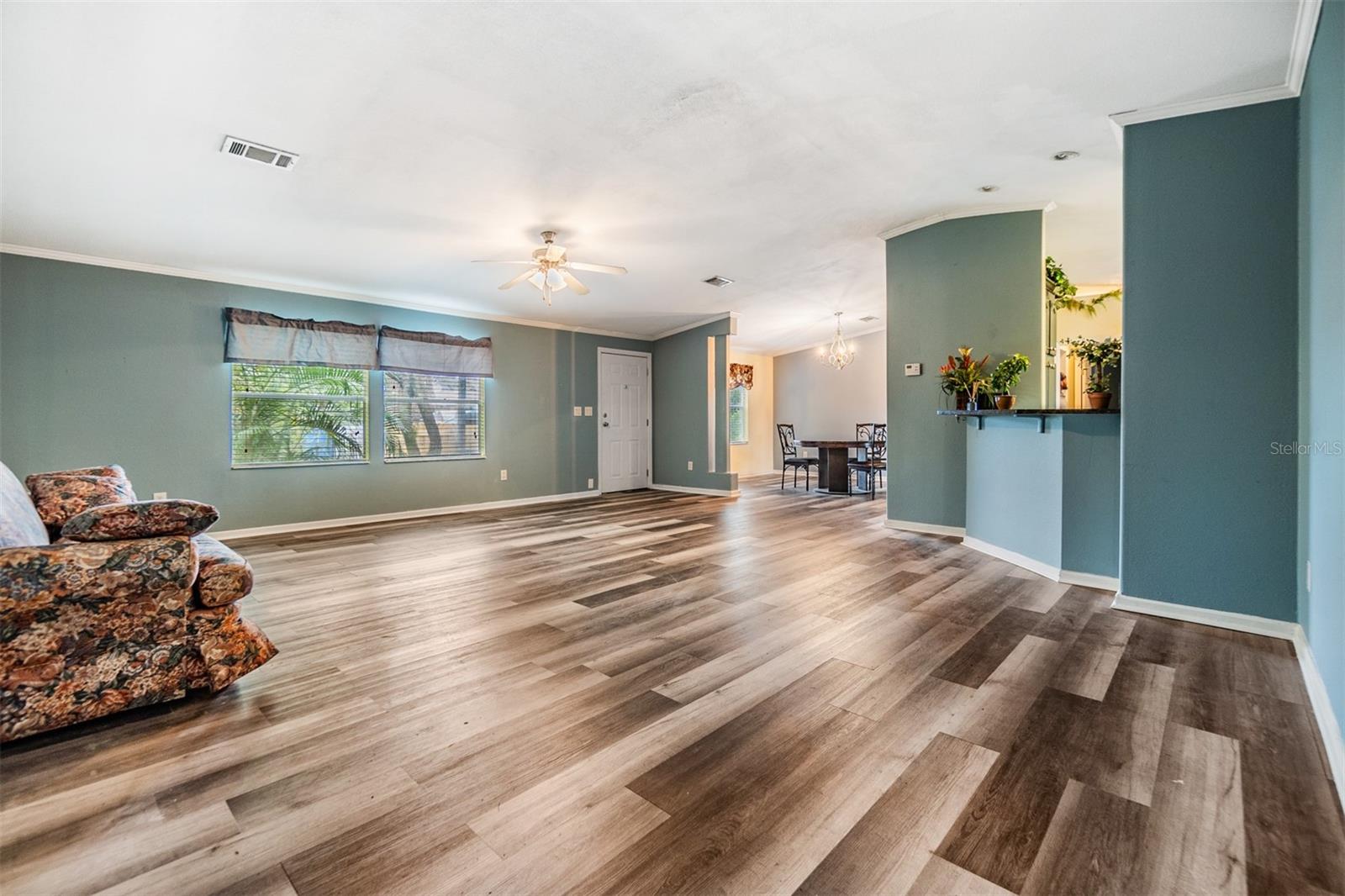 Esta casa oferece mais de 2.000 pés quadrados de vida espaçosa com um piso plano aberto e detalhes impressionantes por toda parte. A casa apresenta molduras elegantes da coroa e bancadas de granito modernas, criando um fluxo perfeito perfeito para entretenimento. Situado em um lote generoso de 35 acres, sem taxas de HOA ou CDD, você terá a liberdade de criar seu espaço ideal ao ar livre. A propriedade está convenientemente localizada perto de lojas, restaurantes e grandes rodovias, fornecendo fácil acesso a tudo o que você precisa. Desfrute do bônus adicional de árvores de fruto, como lichia, pêssego, abacate, laranja e limão ao redor do perímetro, oferecendo um ambiente privado e sereno.