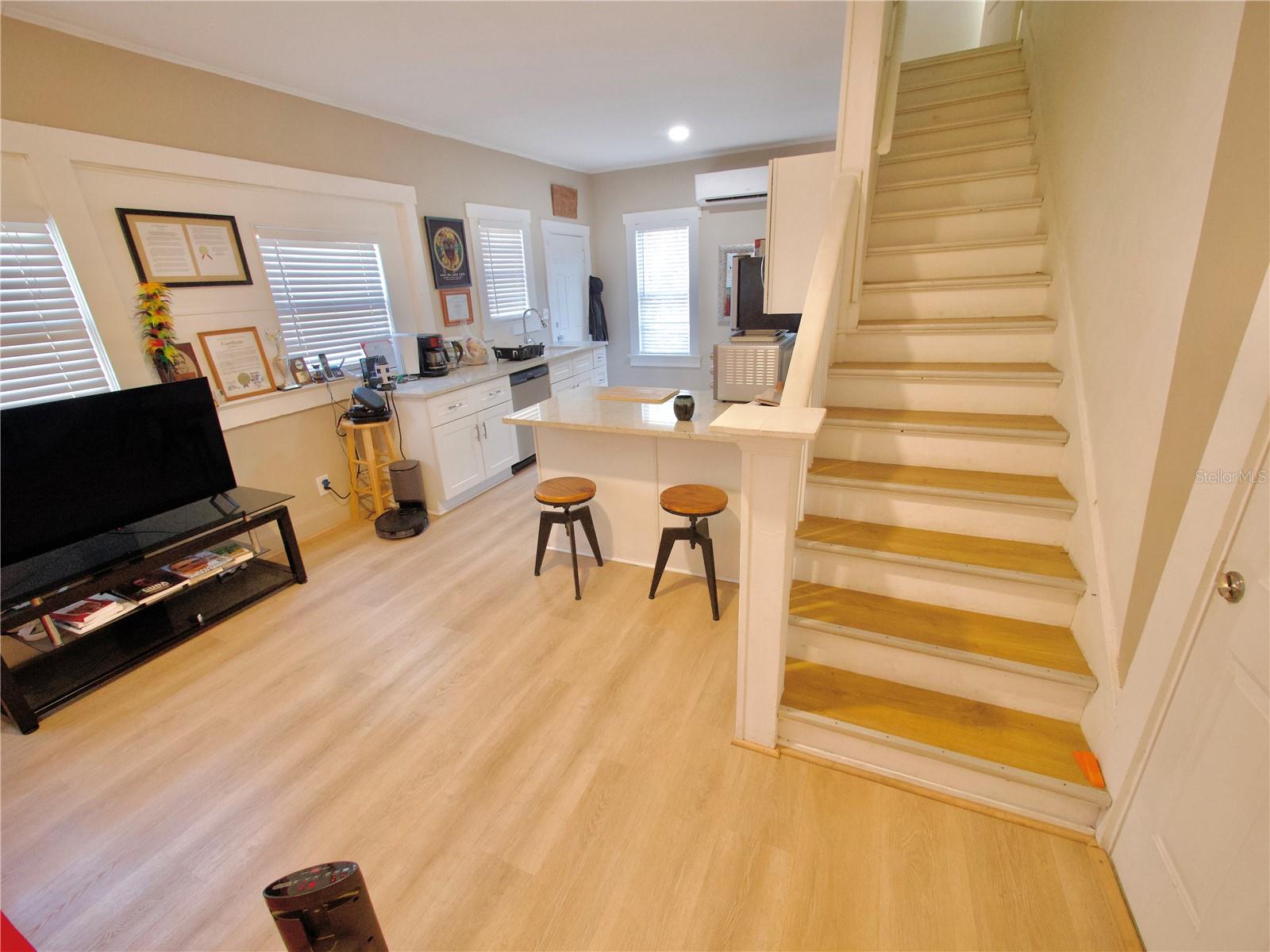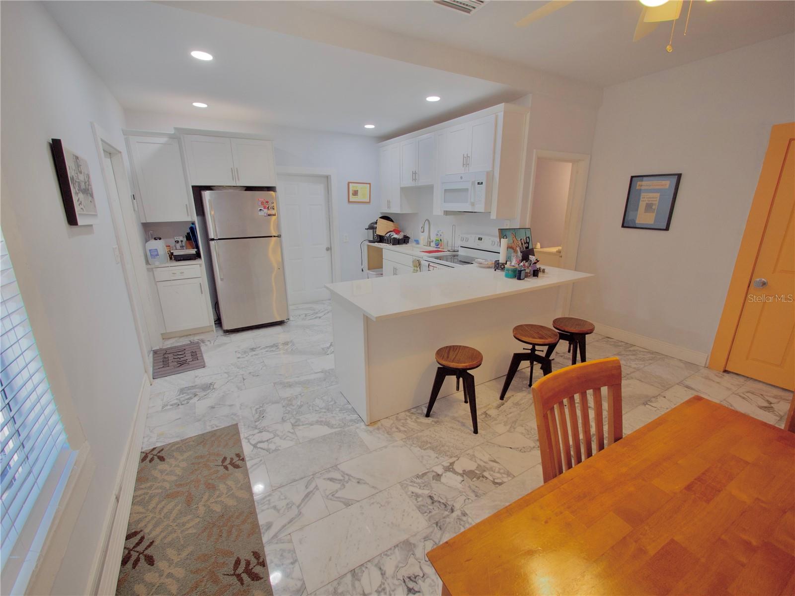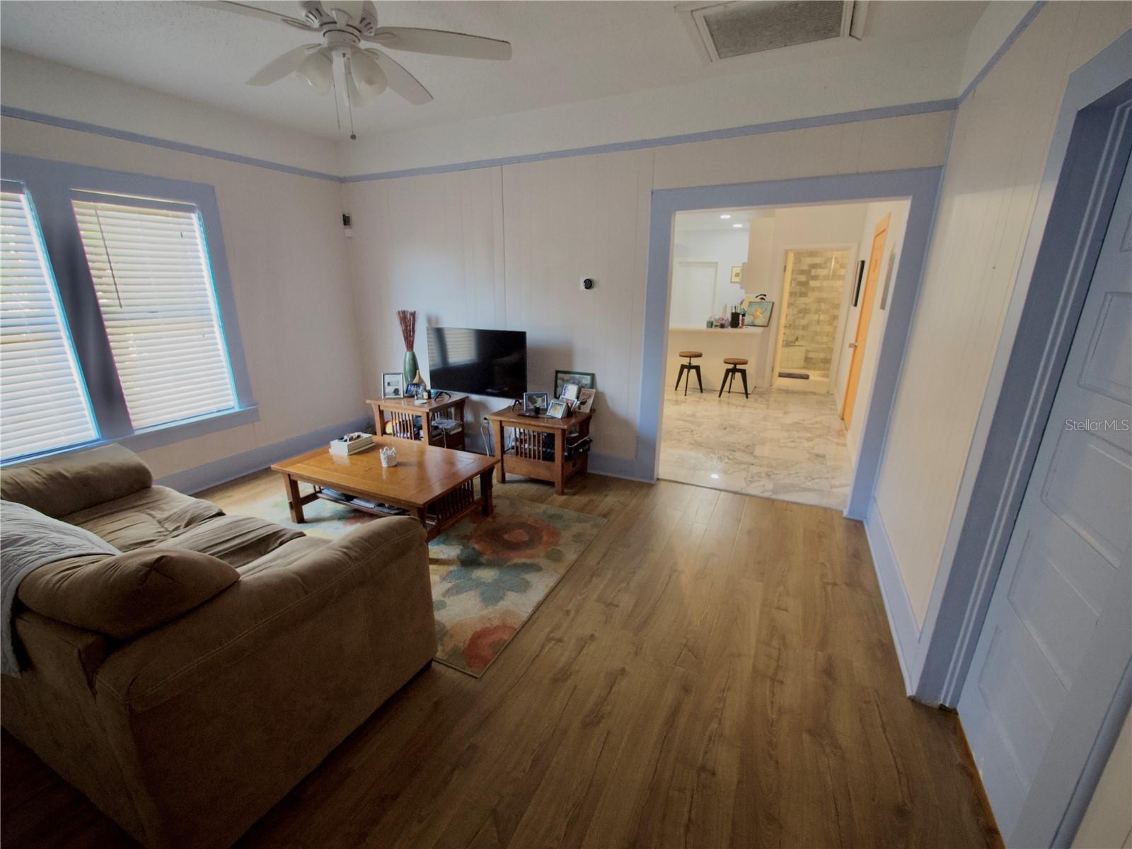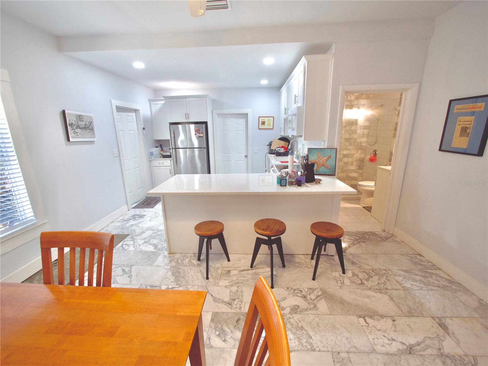 Este pitoresco bangalô da Flórida foi construído em 1925 e fica muito perto de Ybor City, Channelside e Downtown Tampa. A casa possui 2 espaços de estar separados, oferecendo um total de 4 quartos, 2 banheiros, 2 cozinhas, 2 salas familiares e espaço para comer na cozinha principal. Os espaços de convivência são conectados por uma porta interior que pode ser trancada para privacidade, etc. O espaço de estar primário frontal oferece uma cozinha completa que foi totalmente renovada e oferece aparelhos atualizados, piso de azulejos de mármore, forno de microondas, belos balcões de superfície sólida, pia e armários atualizados. O banheiro também foi totalmente reformado com chuveiro de azulejo personalizado, porta de chuveiro de vidro e vaidade elegante. Há uma grande lavanderia interna com lavadora e secadora. O espaço secundário também oferece uma cozinha totalmente renovada, com bancadas de superfície sólidas, pia e armários atualizados. O piso por toda parte é o piso de madeira laminado, que está em ótimas condições. O quarto está no andar de cima - apresenta um espaço para o escritório/covil de casa ou pode não ser utilizado como um quarto adicional. Esta unidade é fácil de manter -se confortável com 2 unidades HVAC divididas em mini, uma para cima e uma para baixo. O estacionamento fica na parte traseira da casa acessível através de um beco. A entrada lateral e a entrada traseira, cada uma das varandas cobertas - perfeitas para ficar de fora e desfrutar de uma limonada refrescante! Programe sua exibição particular antes de se for! Certifique -se de conferir o tour de vídeo online!