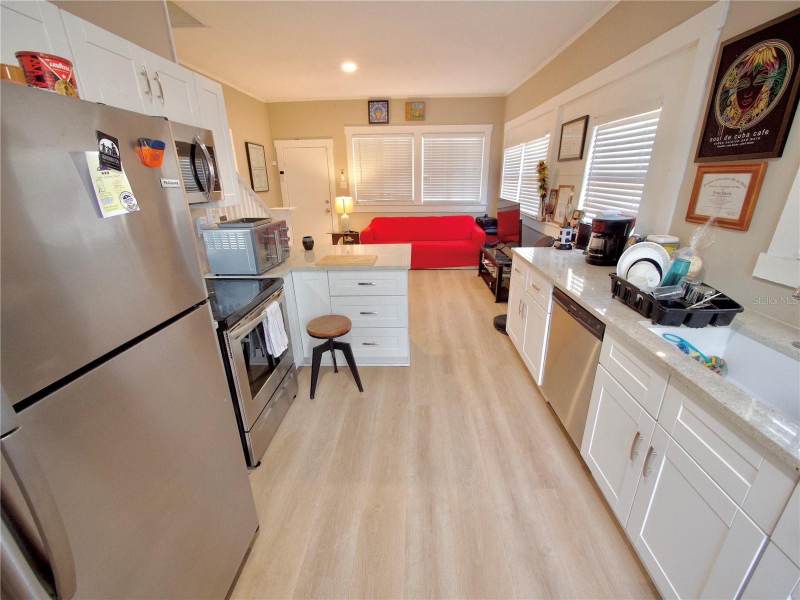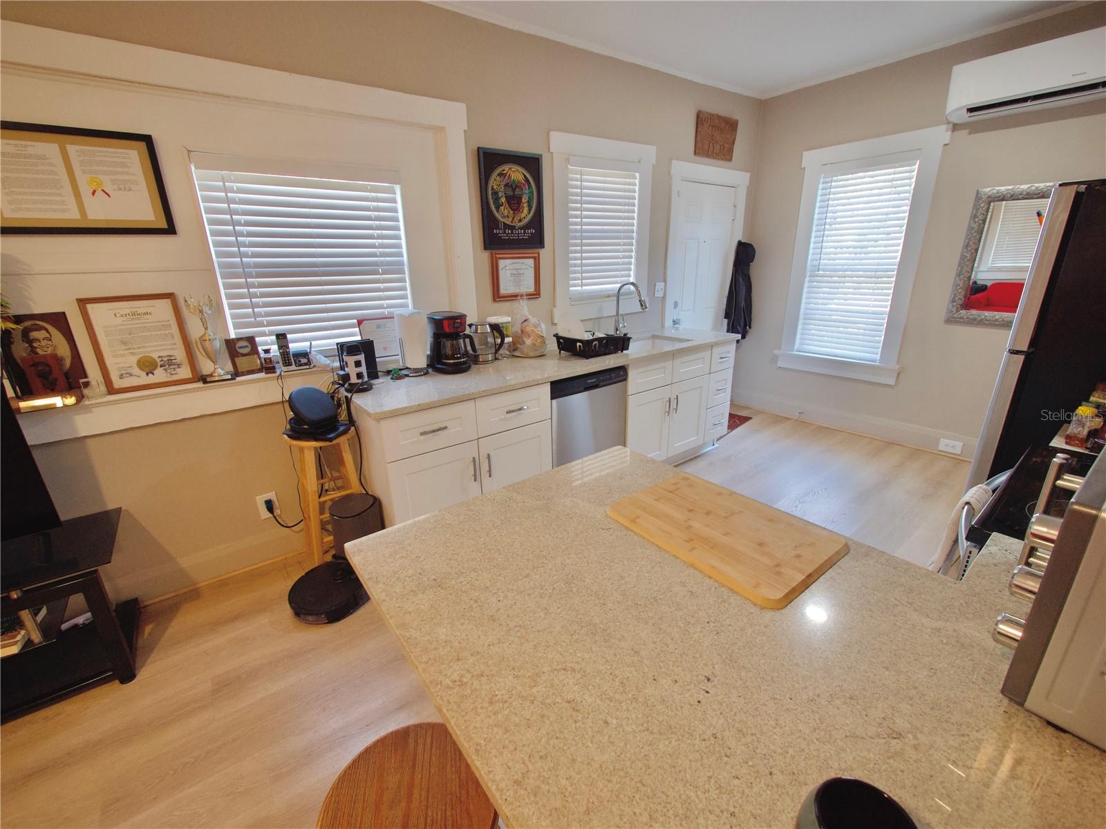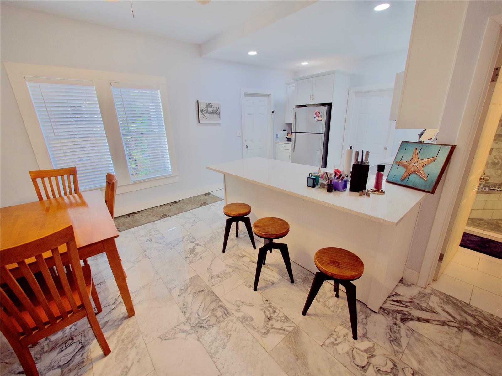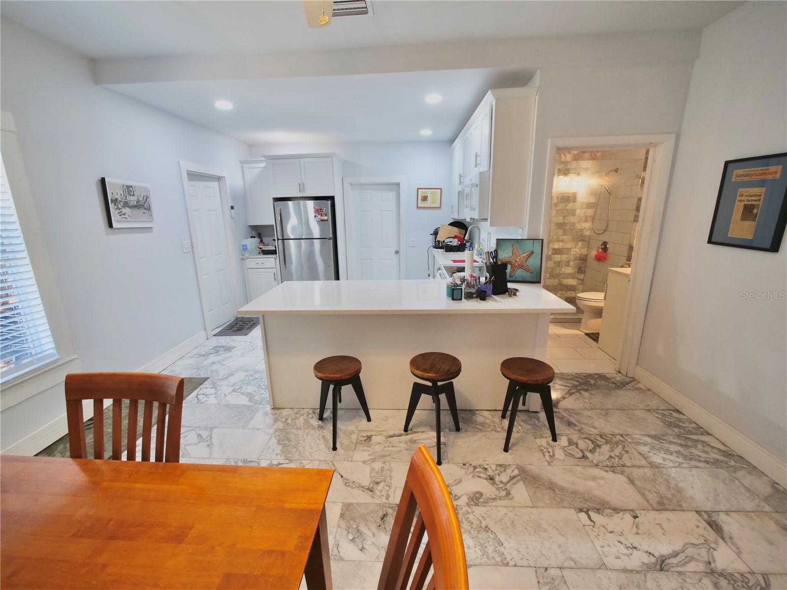 Este pitoresco bangalô da Flórida foi construído em 1925 e fica muito perto de Ybor City, Channelside e Downtown Tampa. A casa possui 2 espaços de estar separados, oferecendo um total de 4 quartos, 2 banheiros, 2 cozinhas, 2 salas familiares e espaço para comer na cozinha principal. Os espaços de convivência são conectados por uma porta interior que pode ser trancada para privacidade, etc. O espaço de estar primário frontal oferece uma cozinha completa que foi totalmente renovada e oferece aparelhos atualizados, piso de azulejos de mármore, forno de microondas, belos balcões de superfície sólida, pia e armários atualizados. O banheiro também foi totalmente reformado com chuveiro de azulejo personalizado, porta de chuveiro de vidro e vaidade elegante. Há uma grande lavanderia interna com lavadora e secadora. O espaço secundário também oferece uma cozinha totalmente renovada, com bancadas de superfície sólidas, pia e armários atualizados. O piso por toda parte é o piso de madeira laminado, que está em ótimas condições. O quarto está no andar de cima - apresenta um espaço para o escritório/covil de casa ou pode não ser utilizado como um quarto adicional. Esta unidade é fácil de manter -se confortável com 2 unidades HVAC divididas em mini, uma para cima e uma para baixo. O estacionamento fica na parte traseira da casa acessível através de um beco. A entrada lateral e a entrada traseira, cada uma das varandas cobertas - perfeitas para ficar de fora e desfrutar de uma limonada refrescante! Programe sua exibição particular antes de se for! Certifique -se de conferir o tour de vídeo online!