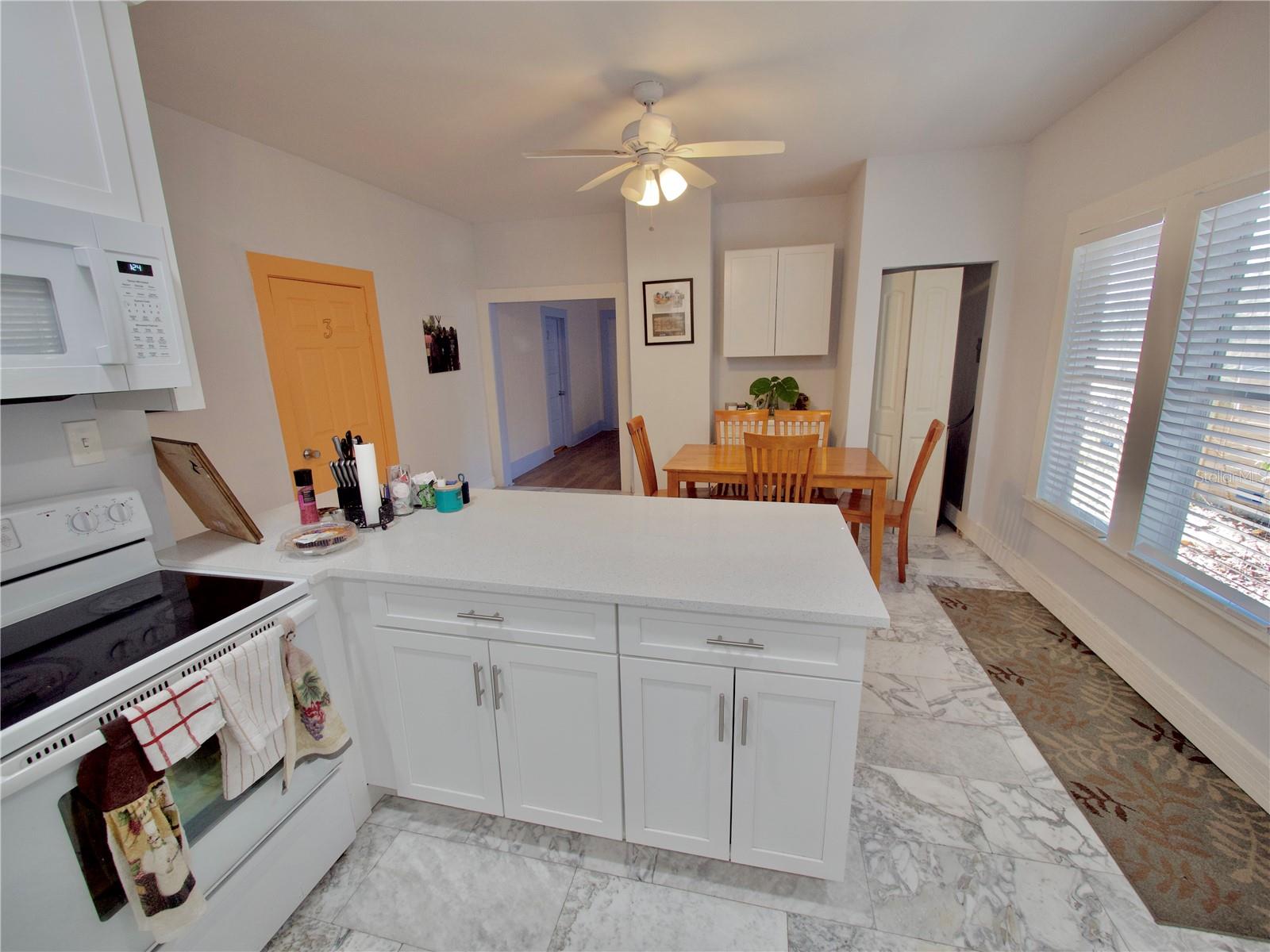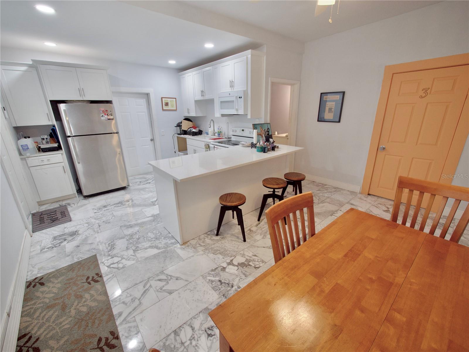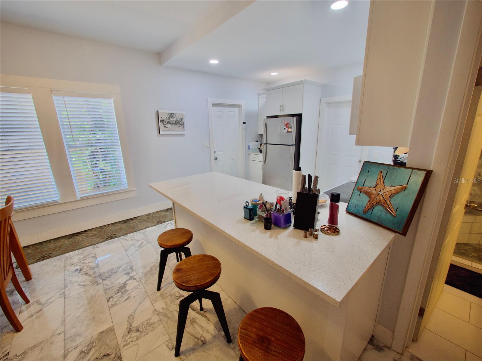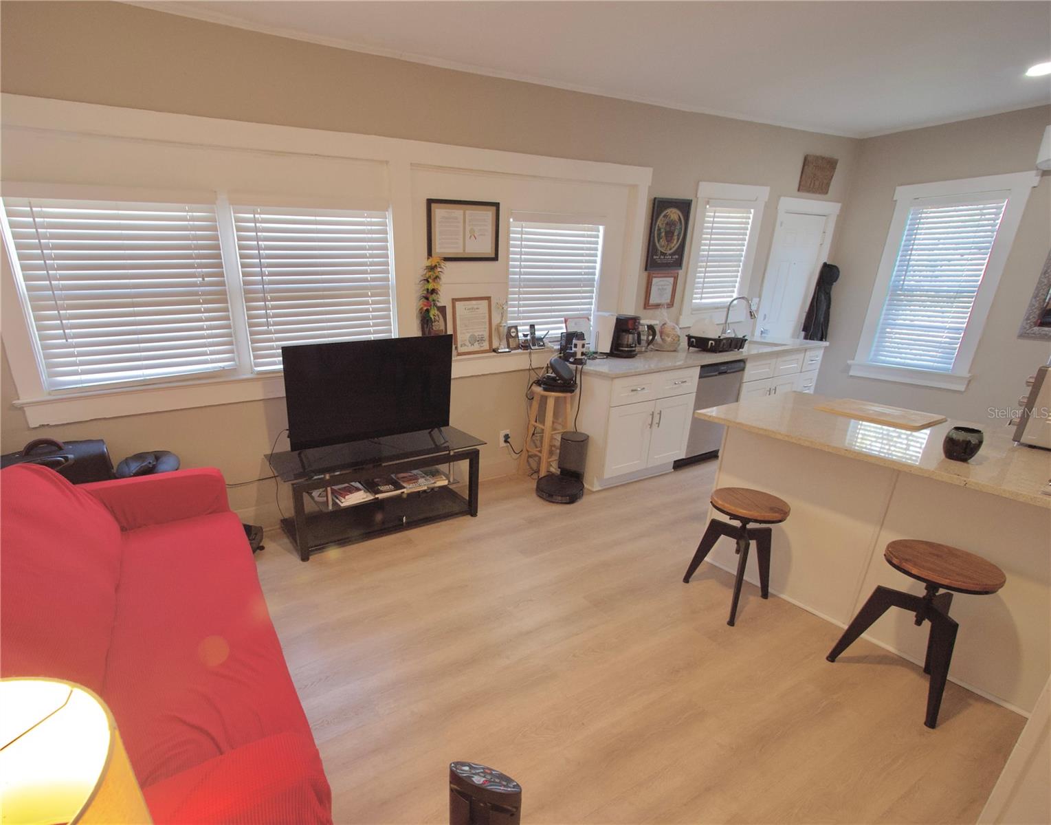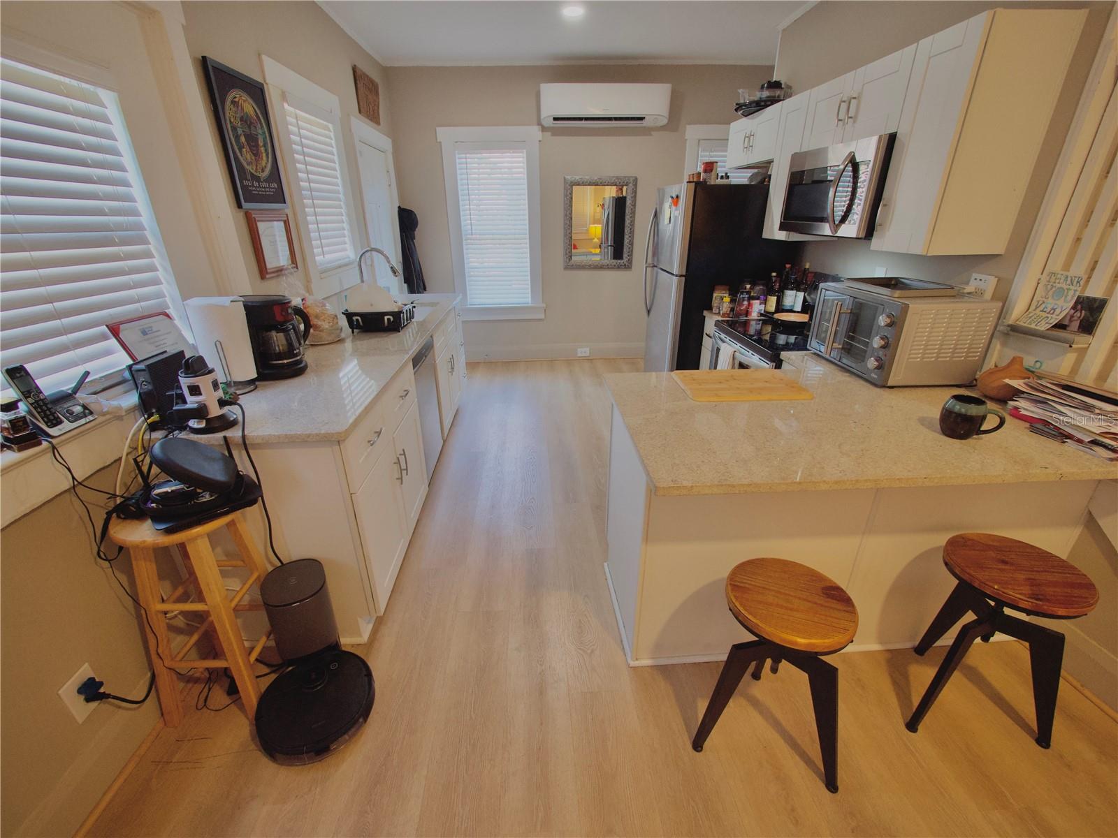 Este pitoresco bangalô da Flórida foi construído em 1925 e fica muito perto de Ybor City, Channelside e Downtown Tampa. A casa possui 2 espaços de estar separados, oferecendo um total de 4 quartos, 2 banheiros, 2 cozinhas, 2 salas familiares e espaço para comer na cozinha principal. Os espaços de convivência são conectados por uma porta interior que pode ser trancada para privacidade, etc. O espaço de estar primário frontal oferece uma cozinha completa que foi totalmente renovada e oferece aparelhos atualizados, piso de azulejos de mármore, forno de microondas, belos balcões de superfície sólida, pia e armários atualizados. O banheiro também foi totalmente reformado com chuveiro de azulejo personalizado, porta de chuveiro de vidro e vaidade elegante. Há uma grande lavanderia interna com lavadora e secadora. O espaço secundário também oferece uma cozinha totalmente renovada, com bancadas de superfície sólidas, pia e armários atualizados. O piso por toda parte é o piso de madeira laminado, que está em ótimas condições. O quarto está no andar de cima - apresenta um espaço para o escritório/covil de casa ou pode não ser utilizado como um quarto adicional. Esta unidade é fácil de manter -se confortável com 2 unidades HVAC divididas em mini, uma para cima e uma para baixo. O estacionamento fica na parte traseira da casa acessível através de um beco. A entrada lateral e a entrada traseira, cada uma das varandas cobertas - perfeitas para ficar de fora e desfrutar de uma limonada refrescante! Programe sua exibição particular antes de se for! Certifique -se de conferir o tour de vídeo online!