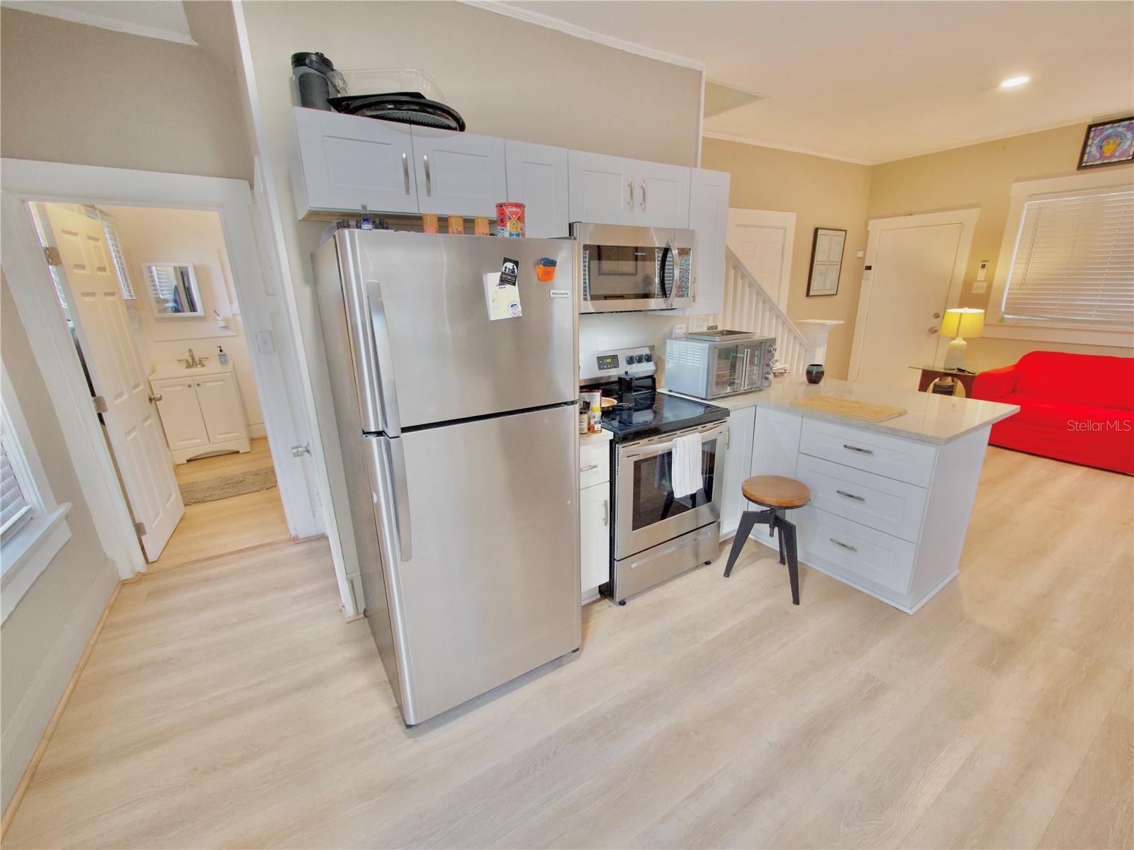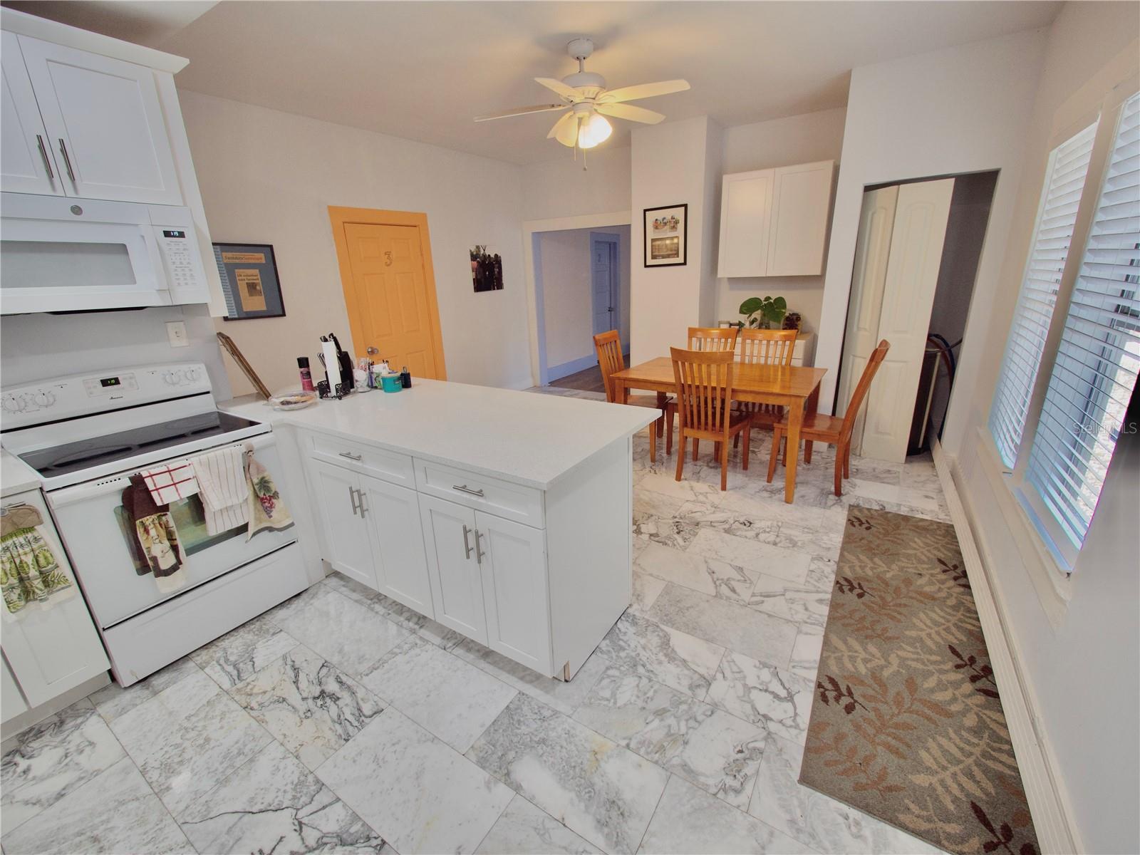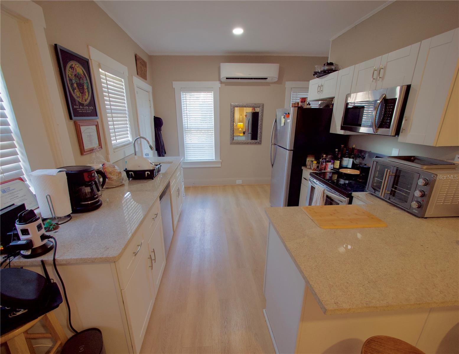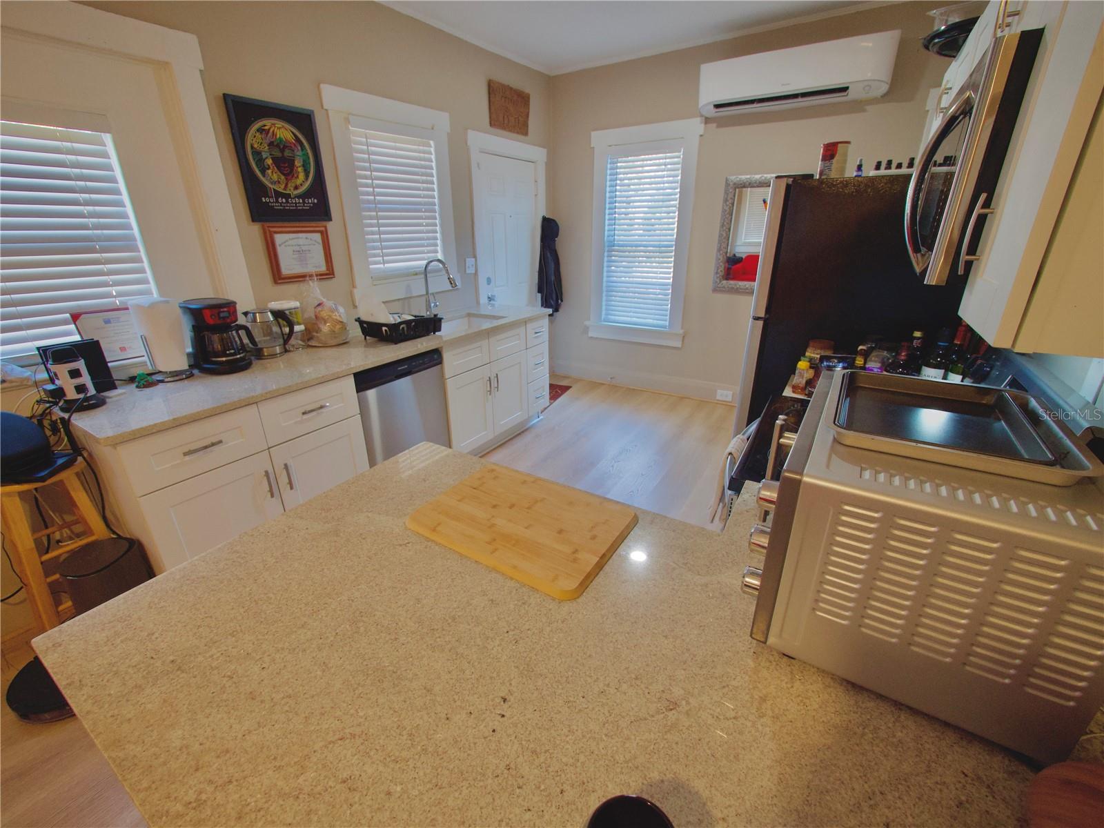 Este pitoresco bangalô da Flórida foi construído em 1925 e fica muito perto de Ybor City, Channelside e Downtown Tampa. A casa possui 2 espaços de estar separados, oferecendo um total de 4 quartos, 2 banheiros, 2 cozinhas, 2 salas familiares e espaço para comer na cozinha principal. Os espaços de convivência são conectados por uma porta interior que pode ser trancada para privacidade, etc. O espaço de estar primário frontal oferece uma cozinha completa que foi totalmente renovada e oferece aparelhos atualizados, piso de azulejos de mármore, forno de microondas, belos balcões de superfície sólida, pia e armários atualizados. O banheiro também foi totalmente reformado com chuveiro de azulejo personalizado, porta de chuveiro de vidro e vaidade elegante. Há uma grande lavanderia interna com lavadora e secadora. O espaço secundário também oferece uma cozinha totalmente renovada, com bancadas de superfície sólidas, pia e armários atualizados. O piso por toda parte é o piso de madeira laminado, que está em ótimas condições. O quarto está no andar de cima - apresenta um espaço para o escritório/covil de casa ou pode não ser utilizado como um quarto adicional. Esta unidade é fácil de manter -se confortável com 2 unidades HVAC divididas em mini, uma para cima e uma para baixo. O estacionamento fica na parte traseira da casa acessível através de um beco. A entrada lateral e a entrada traseira, cada uma das varandas cobertas - perfeitas para ficar de fora e desfrutar de uma limonada refrescante! Programe sua exibição particular antes de se for! Certifique -se de conferir o tour de vídeo online!