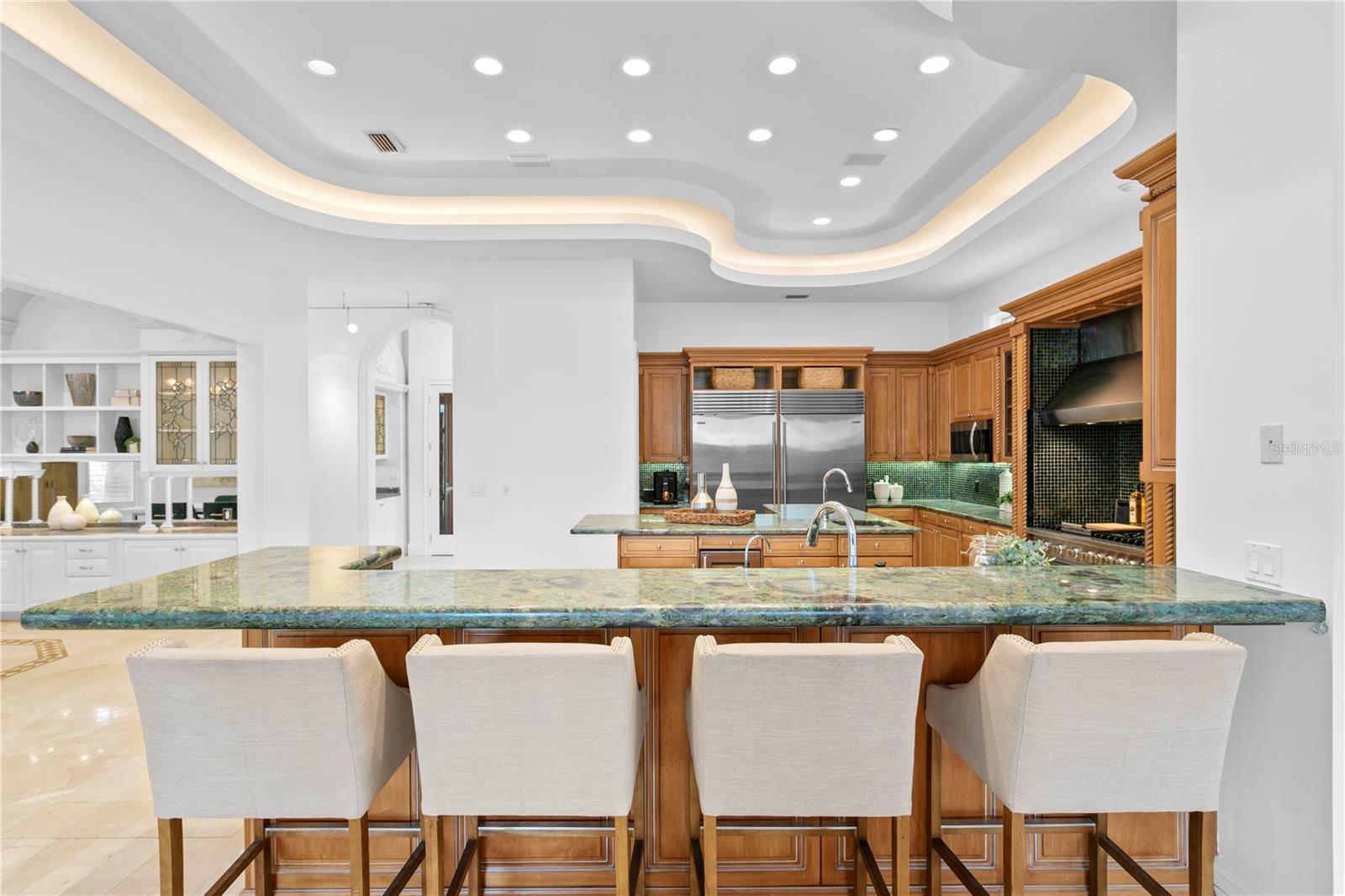 Experimente o Mediterrâneo de luxo que vive em South Tampa, aninhado em Beach Park. Esta residência expansiva fica em um lote de 17.550 pés quadrados, com mais de 7.200 pés quadrados de espaço, 5 quartos, 6,5 banheiros, com a conveniência de um elevador. Entre pela entrada privada com colunas imponentes e portas francesas do lado do tijolo em um vestíbulo espaçoso e de teto alto. A elegante sala de estar apresenta uma lareira embutida com uma manto luxuosa complementada por molduras decorativas por toda parte. A cozinha do chef mostra bancadas de quartzito verde emerald, uma península que serve como uma barra de café da manhã, uma ilha de ponta com cascas de construção personalizadas, uma alcance com alcance, forno embutido, geladeiras grandes de duas portas duplas, lava-louças grandes, aquecedor de água, refrigerador de vinho e prateleiras embutidas com traços duplos e de barragem dupla. A área de jantar exala luxo com um lustre vintage e grandes armários. Um espaçoso escritório/escritório inclui armários de escritório de madeira maciça e um teto alto. No andar de cima, a expansiva suíte primária oferece comodidades luxuosas, incluindo armários personalizados e um banho privativo com uma banheira de imersão, chuveiro fechado separado, balcão de mármore com espelho de envoltório, armários embutidos e um armário. A casa possui 4 quartos adicionais, cada um equipado com armários personalizados. Desfrute de uma sala de estar e acesso a uma sala da Flórida, tanto com ventiladores de teto embutidos quanto molduras decorativas. A casa inclui uma varanda exibida com acesso a uma piscina privada e spa no quintal, além de uma conveniente garagem anexada a 3 carros para amplo estacionamento e armazenamento. A propriedade também possui uma casa de hóspedes isolada, perfeita para entretenimento. Convenientemente localizado perto de restaurantes, cafeterias, compras, compras, Swann Park e Aeroporto Internacional de Tampa, esta jóia escondida não deve ser desperdiçada.
