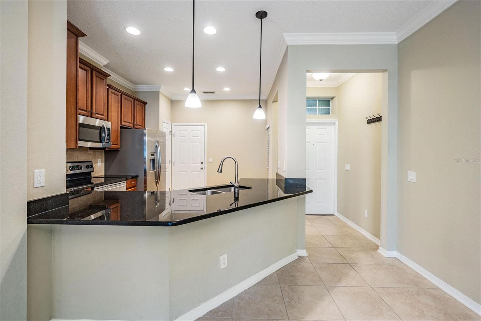 Raramente disponível Townhome na comunidade fechada de South Hampton, na área de Westchase, onde a elegância encontra a conveniência! Novo telhado programado para 2026! Originalmente construído por M/I Homes e localizado no distrito escolar do Sickles; Esta espaçosa beleza de 2 camas/2,5 banheiros possui um piso plano aberto tetos altos e uma luz natural abundante. The kitchen features granite countertops, 42” maple cabinets, a stylish tile backsplash, pendant lights, and stainless appliances. Located upstairs is the principal bedroom, guest room, loft, laundry room, and tons of closet space. The versatile loft area is ideal for a home office, fitness area, or relaxation. Both upstairs bathrooms have granite counters, and you have a standing shower in the principal bath and a A banheira no banho de hóspedes. *Uma ou mais fotos nesta listagem foram praticamente encenadas.