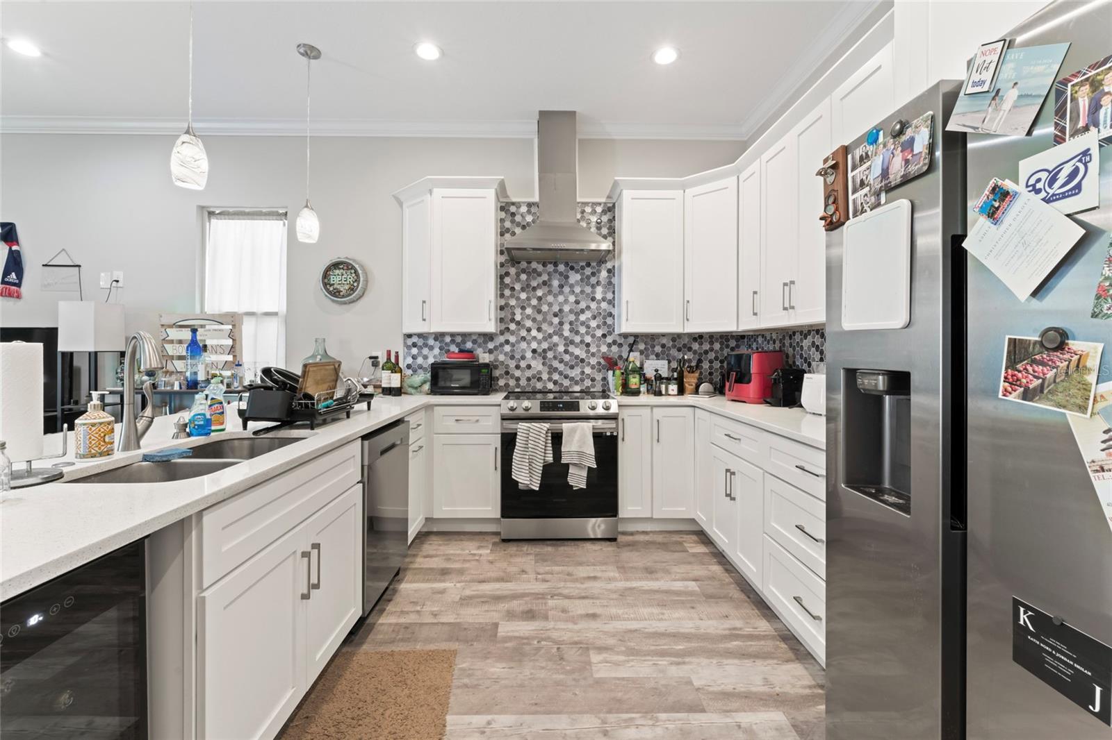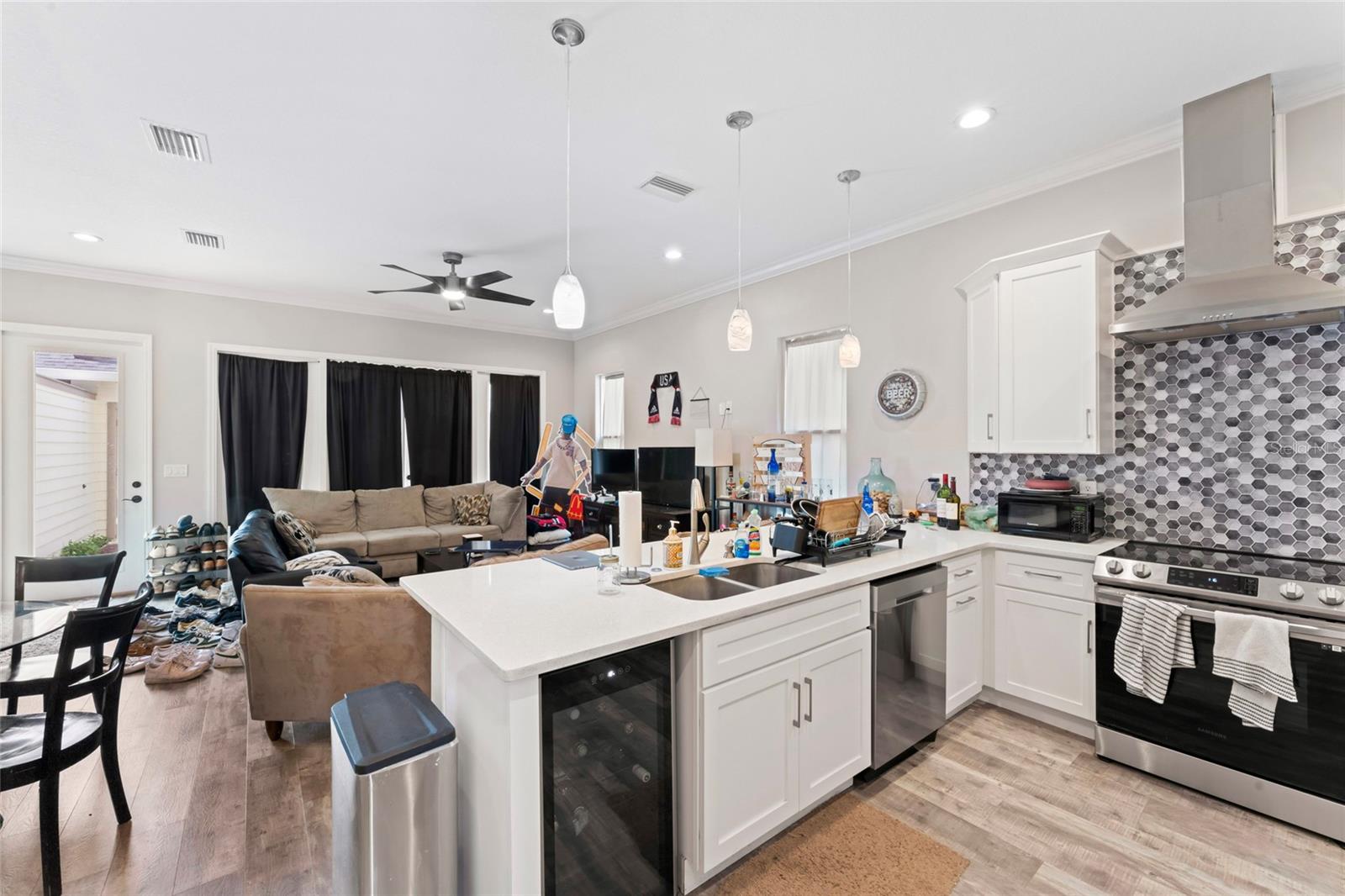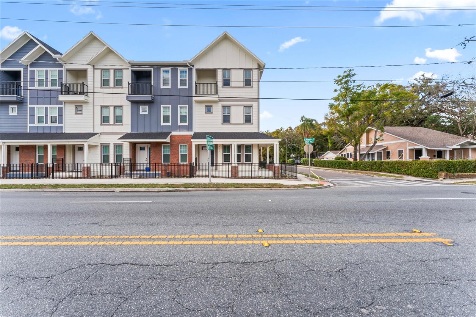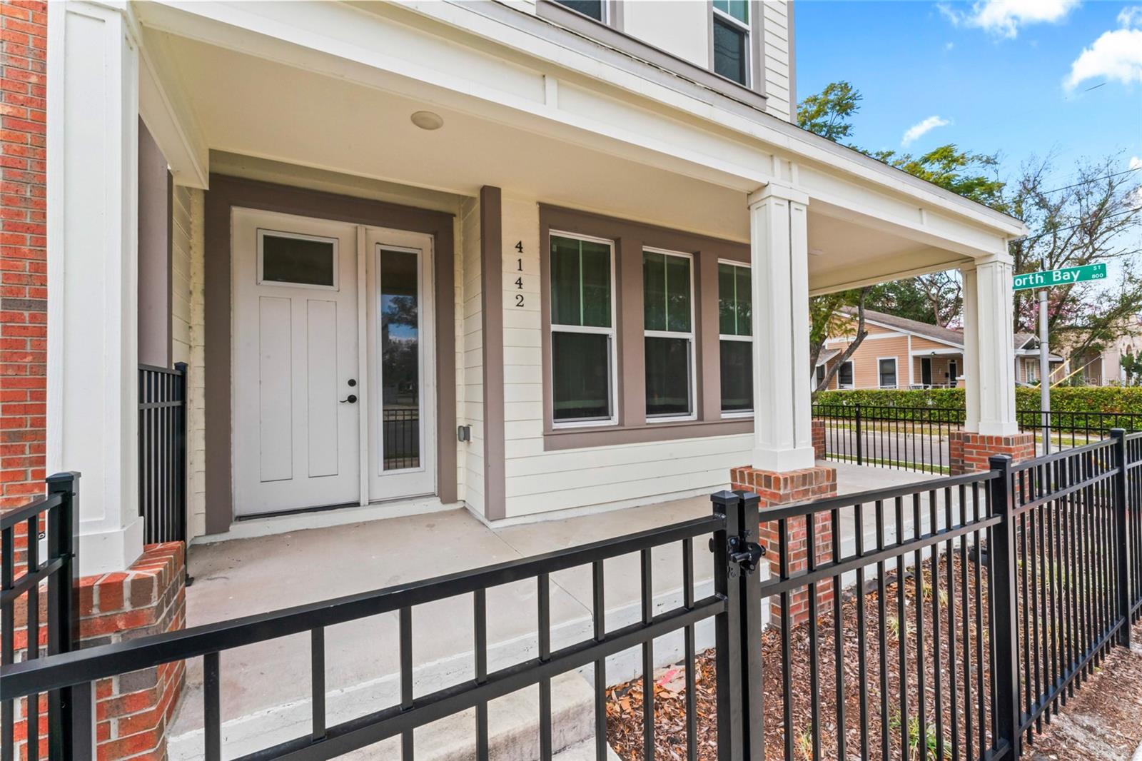 Esta unidade final possui 4 quartos e 4 banheiros com mais de 2.400 pés quadrados de área de estar em três níveis luxuosos com uma garagem de dois carros destacada. O layout e o acabamento exclusivos são uma arquitetura histórica de estilo artesão, com recursos modernos de design incorporados para as necessidades de vida em casa de hoje, bem como de amanhã. The most unique and eye-catching features of this amazing unit is the private open-air courtyard, full first floor living areas (family room, kitchen, pantry, dining room & bathroom), stunningly spacious master suite with a private water closet, dual multi-function showers and an oversized free-standing garden tub, separate walk-in closets, massive 8-foot interior/exterior doors throughout every unit, impact-rated sliders and Pella Defender series windows for care-free gentle Breezes, escadas extra largas com trilhos abertos e degraus de carvalho reais manchados à mão, varandas dianteiras e traseiras e um enorme terraço aberto ao luar no último andar com vistas panorâmicas do horizonte de Tampa. Quartz countertops, all wood cabinets with soft-close doors/drawers, smudge-proof stainless steel appliances, wet bar on top floor, undercounter mini-refrigerator/wine cooler, high volume ceilings on every floor, crown molding in all common areas, decorative tray ceilings, plant shelves, tiled shower/tub areas with built-ins, garages pre-wired for electric vehicle (EV) charging, gallery art niches and luxury pisos de madeira projetada. Todo o edifício é uma construção resistente de blocos de concreto (todos os 3 níveis) para proteção espetacular do furacão, separação de firewall sólida e privacidade máxima entre as unidades. Um elevador opcional está disponível agora ou foi cuidadosamente projetado para acomodar facilmente a conversão posteriormente. Essas unidades estão convenientemente localizadas a uma milha, para que restaurantes e locais de entretenimento, como Ella's, Southern Brewing e Wine Mody, Hair of the Dog, Nebraska Mimast, Ebisu Sushi, Publix e muito mais! As residências do pátio em Seminole Heights são realmente um desenvolvimento único e parece ser uma adição marcante ao bairro de Southeast Seminole Heights para o próximo século.