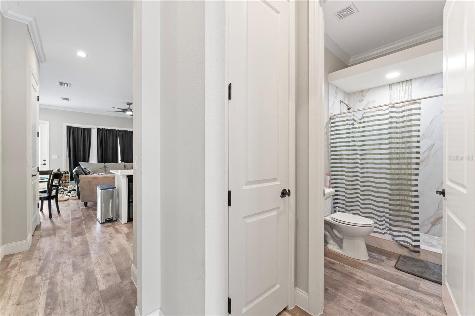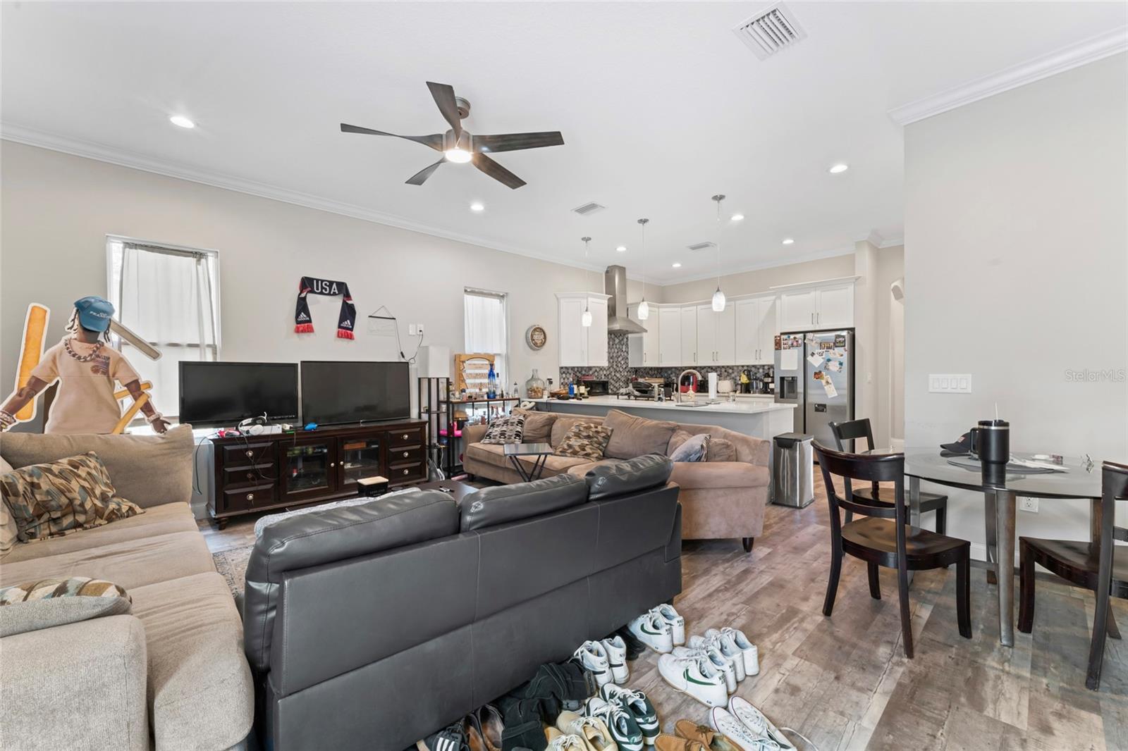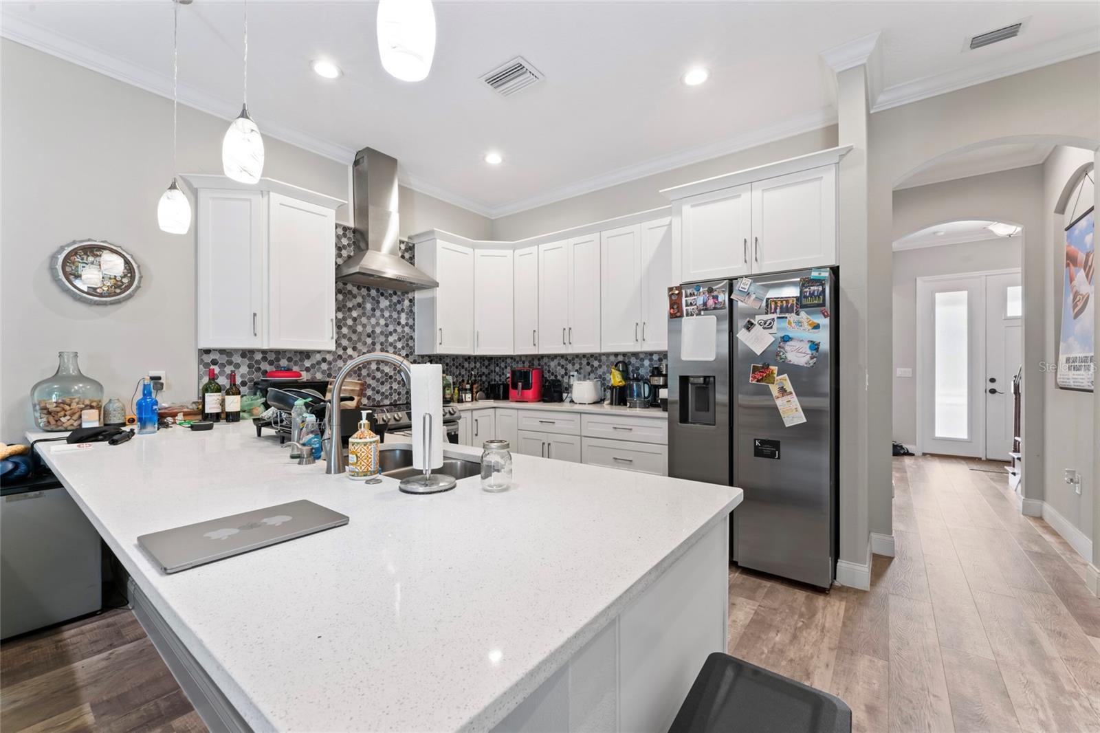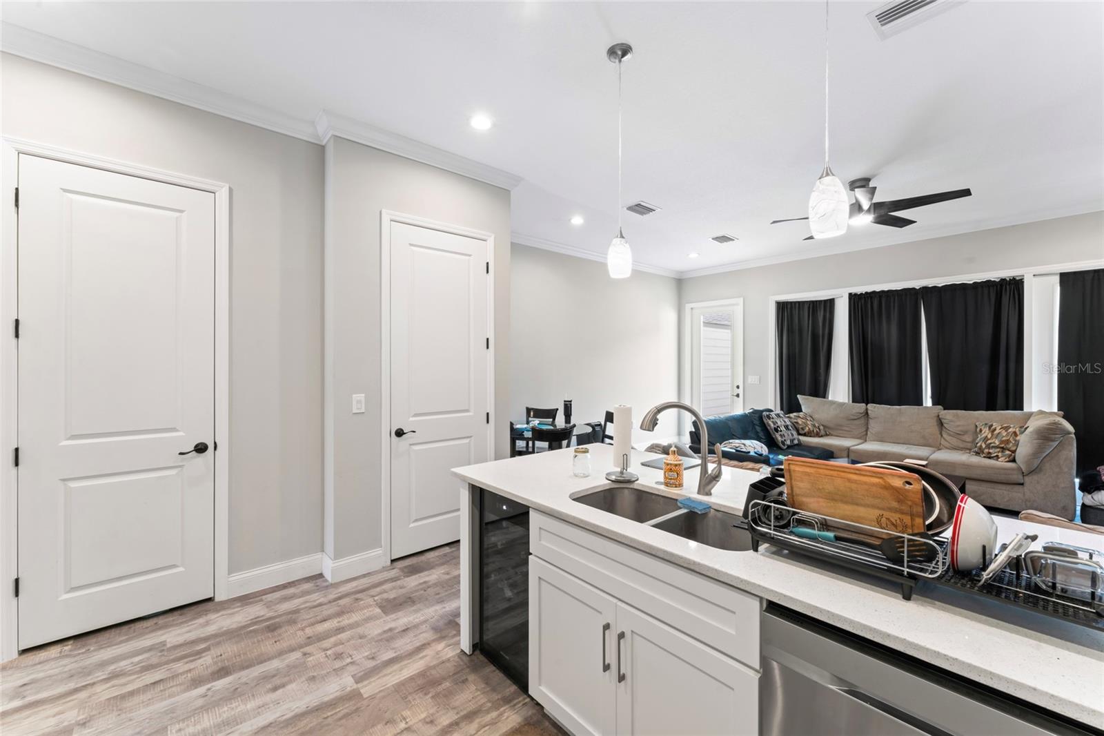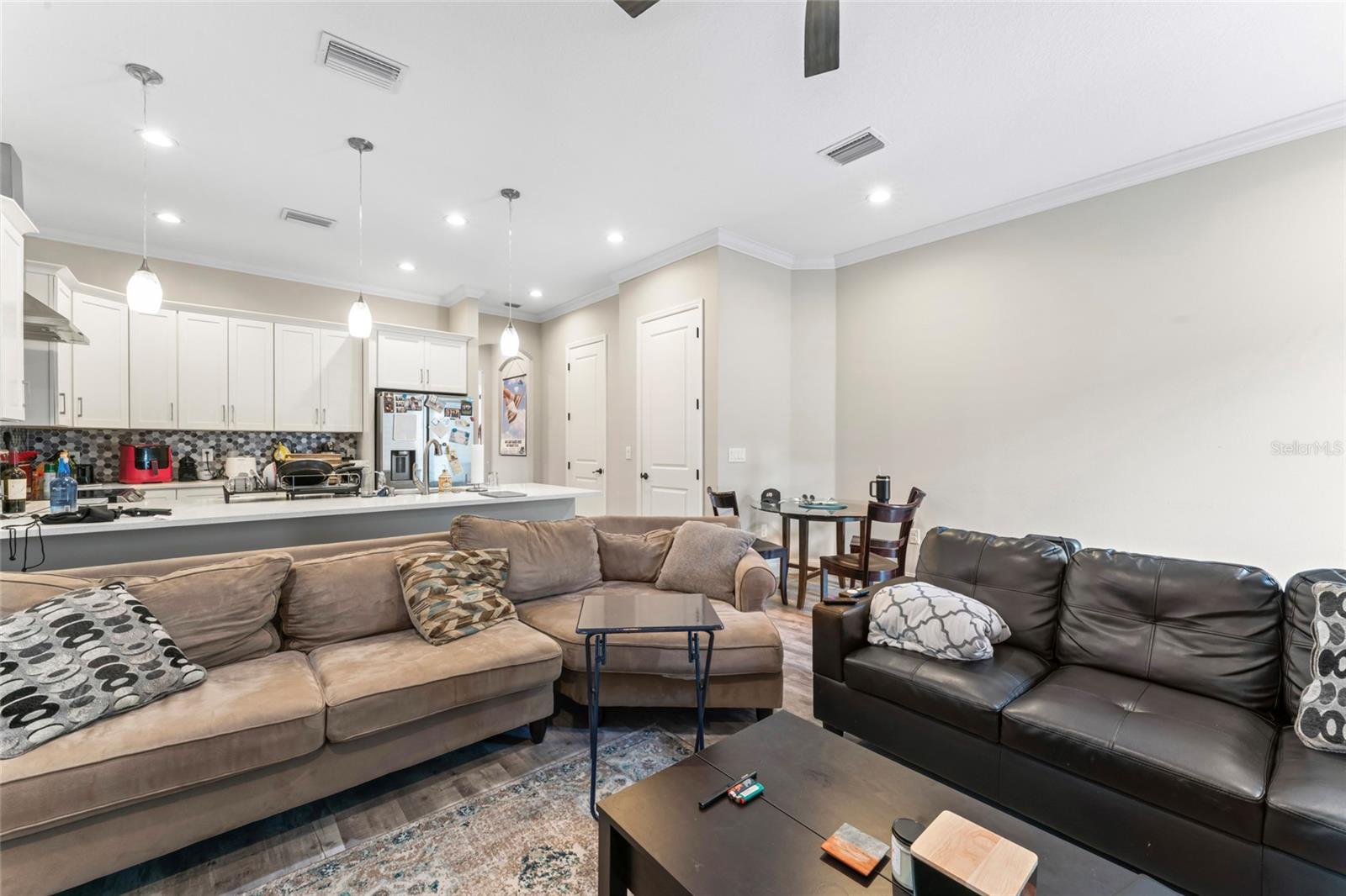 Esta unidade final possui 4 quartos e 4 banheiros com mais de 2.400 pés quadrados de área de estar em três níveis luxuosos com uma garagem de dois carros destacada. O layout e o acabamento exclusivos são uma arquitetura histórica de estilo artesão, com recursos modernos de design incorporados para as necessidades de vida em casa de hoje, bem como de amanhã. The most unique and eye-catching features of this amazing unit is the private open-air courtyard, full first floor living areas (family room, kitchen, pantry, dining room & bathroom), stunningly spacious master suite with a private water closet, dual multi-function showers and an oversized free-standing garden tub, separate walk-in closets, massive 8-foot interior/exterior doors throughout every unit, impact-rated sliders and Pella Defender series windows for care-free gentle Breezes, escadas extra largas com trilhos abertos e degraus de carvalho reais manchados à mão, varandas dianteiras e traseiras e um enorme terraço aberto ao luar no último andar com vistas panorâmicas do horizonte de Tampa. Quartz countertops, all wood cabinets with soft-close doors/drawers, smudge-proof stainless steel appliances, wet bar on top floor, undercounter mini-refrigerator/wine cooler, high volume ceilings on every floor, crown molding in all common areas, decorative tray ceilings, plant shelves, tiled shower/tub areas with built-ins, garages pre-wired for electric vehicle (EV) charging, gallery art niches and luxury pisos de madeira projetada. Todo o edifício é uma construção resistente de blocos de concreto (todos os 3 níveis) para proteção espetacular do furacão, separação de firewall sólida e privacidade máxima entre as unidades. Um elevador opcional está disponível agora ou foi cuidadosamente projetado para acomodar facilmente a conversão posteriormente. Essas unidades estão convenientemente localizadas a uma milha, para que restaurantes e locais de entretenimento, como Ella's, Southern Brewing e Wine Mody, Hair of the Dog, Nebraska Mimast, Ebisu Sushi, Publix e muito mais! As residências do pátio em Seminole Heights são realmente um desenvolvimento único e parece ser uma adição marcante ao bairro de Southeast Seminole Heights para o próximo século.