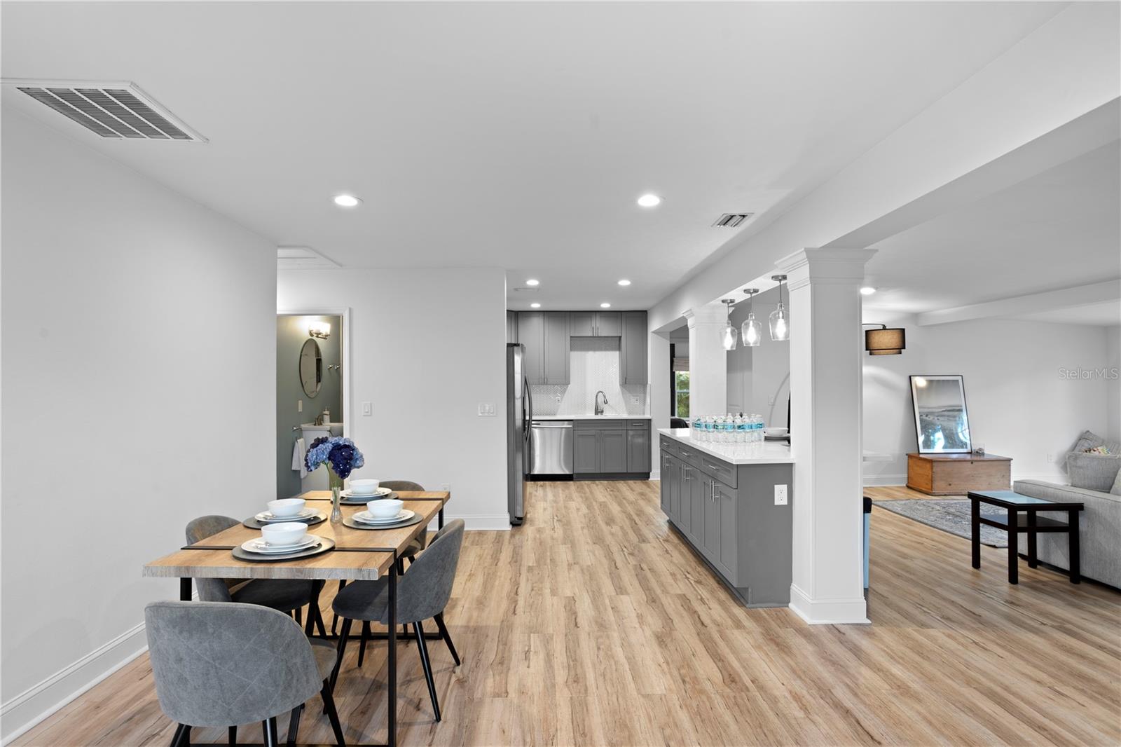 Zona de inundação X. Sem HOA, sem restrições de arrendamento. Aninhado no coração de South Tampa, esta casa lindamente remodelada de 3 quartos e 2 banheiros oferece uma mistura perfeita de atualizações modernas (incluindo um teto novo) e um charme atemporal. Ao entrar, você será atraído pela impressionante planta aberta, acentuada por uma enorme ilha central e uma cozinha de grife com backsplash de espinha de peixe, utensílios de aço inoxidável e bancadas de quartzo. O espaço é perfeito para se divertir e relaxar com a família e os amigos e se estende por meio de portas francesas em seu próprio oásis de quintal particular. Com a vegetação de tirar o fôlego, arrastando uma cerca recém -instalada, o expansivo quintal apresenta uma área de pátio deslumbrante e uma fogueira separada com muito espaço para atividades ao ar livre. De volta para dentro, passe por portas elegantes do celeiro e entre sua suíte master, cheia de luz de seu próprio conjunto separado de portas francesas que se abrem no pátio. O banheiro principal é uma visão a ser vista com um gabinete de banheira/chuveiro de salão úmido, vaidades duplas, uma estação de maquiagem e um closet. Tudo terminado com ladrilhos de porcelana em mármore e mosaico de arabesco personalizado. Seus convidados ficarão impressionados com um banheiro elegante de hóspedes com uma combinação de banheira/chuveiro e um trabalho de ladrilhos lindamente decorados. Dois quartos grandes e uma cova, perfeitos para um escritório, completam o resto da casa. Na frente, você tem duas calçadas, perfeitas para hospedar hóspedes, que fornecem amplo estacionamento para até cinco veículos e um portão duplo para armazenamento de barcos. Localizado dentro do distrito escolar de plantas altamente procurado, a casa fica a uma curta distância do Hyde Park e é cercada por algumas das melhores cafeterias, bares e restaurantes de South Tampa. Não perca a chance de possuir esta jóia deslumbrante em uma das áreas mais desejáveis de Tampa!