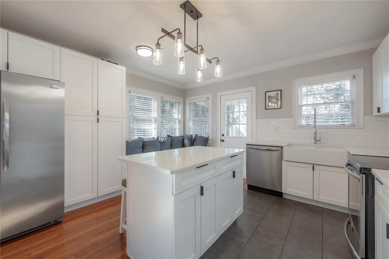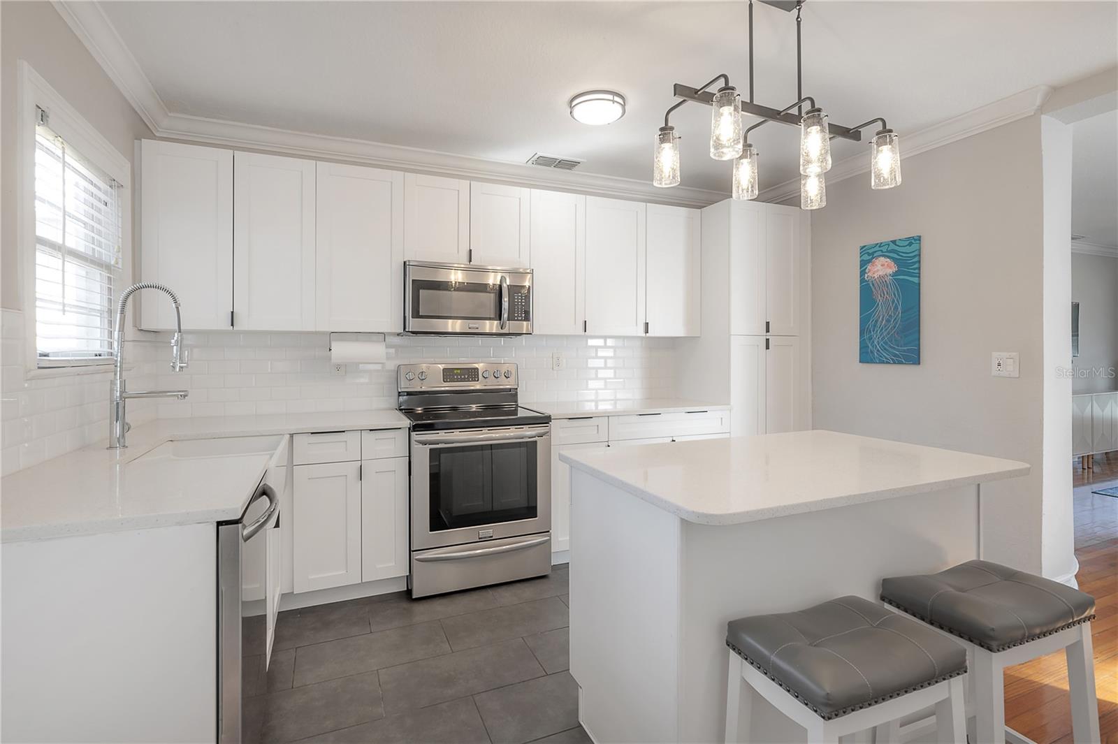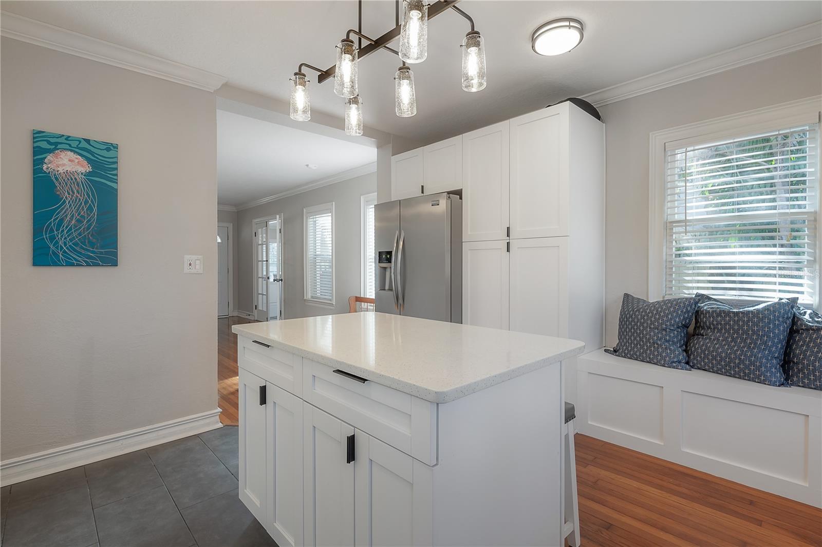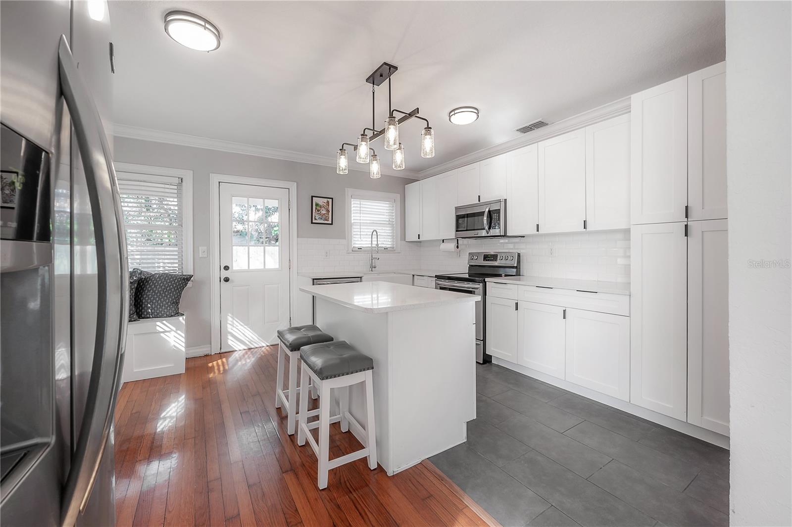 Esta encantadora casa de 2 quartos e 1 banhado, aninhada no cobiçado bairro de Hampton Terrace de Old Seminole Heights, combina perfeitamente atualizações modernas com apelo clássico. Um telhado mais novo, instalado em 2022, aumenta o apelo da casa, juntamente com uma garagem de um carro. Ao se aproximar da varanda da frente convidativa e entrar, a luz natural inunda o espaço através de uma grande janela de imagens, destacando os impressionantes pisos de madeira original. À esquerda, as portas francesas levam a uma espaçosa sala de lavanderia/utilidade, que fornece fácil acesso à garagem para carro. À frente, as áreas de estar, jantar e cozinha de conceito aberto criam um espaço arejado e acolhedor, perfeito para divertir a família e os amigos. O coração desta casa é, sem dúvida, a cozinha espumante e atualizada, banhada à luz do sol. Possui amplo espaço para gabinete e gaveta, um assento de bancada de janela, uma pia da fazenda de porcelana dupla, uma ilha, utensílios de aço inoxidável e bancadas elegantes de quartzo. Portas de madeira de cinco painéis em toda a casa e pisos de madeira reluzentes continuam nos dois quartos de tamanho generoso, cada um oferecendo espaço suficiente para uma cama de tamanho king e um excelente espaço no armário. O banheiro lindamente decorado possui piso de mosaico em preto e branco atemporal em preto e branco, uma combinação de banheira/chuveiro e arredores clássicos de ladrilhos de metrô. Passe pela cozinha e entre no quintal, onde você encontrará um espaçoso deck de madeira que abrange a largura da casa. Uma nova cerca de madeira de 8 pés garante privacidade, criando o local ideal para relaxar ou divertir. Este grande quintal em branco está esperando a sua visão paisagística ganhar vida. Hampton Terrace é uma comunidade vibrante, ancorada pelo cênico lago Roberta. O Grand Oaks, elevado, oferece sombra para passeios de lazer, e a Associação Comunitária Ativa do Bairro organiza eventos e reuniões regulares. A poucos minutos dos melhores restaurantes, compras e atrações em Seminole Heights e no centro de Tampa, bem como I-275 e Aeroporto Internacional de Tampa, esta casa é uma visita obrigatória absoluta. Agende uma exibição hoje!
