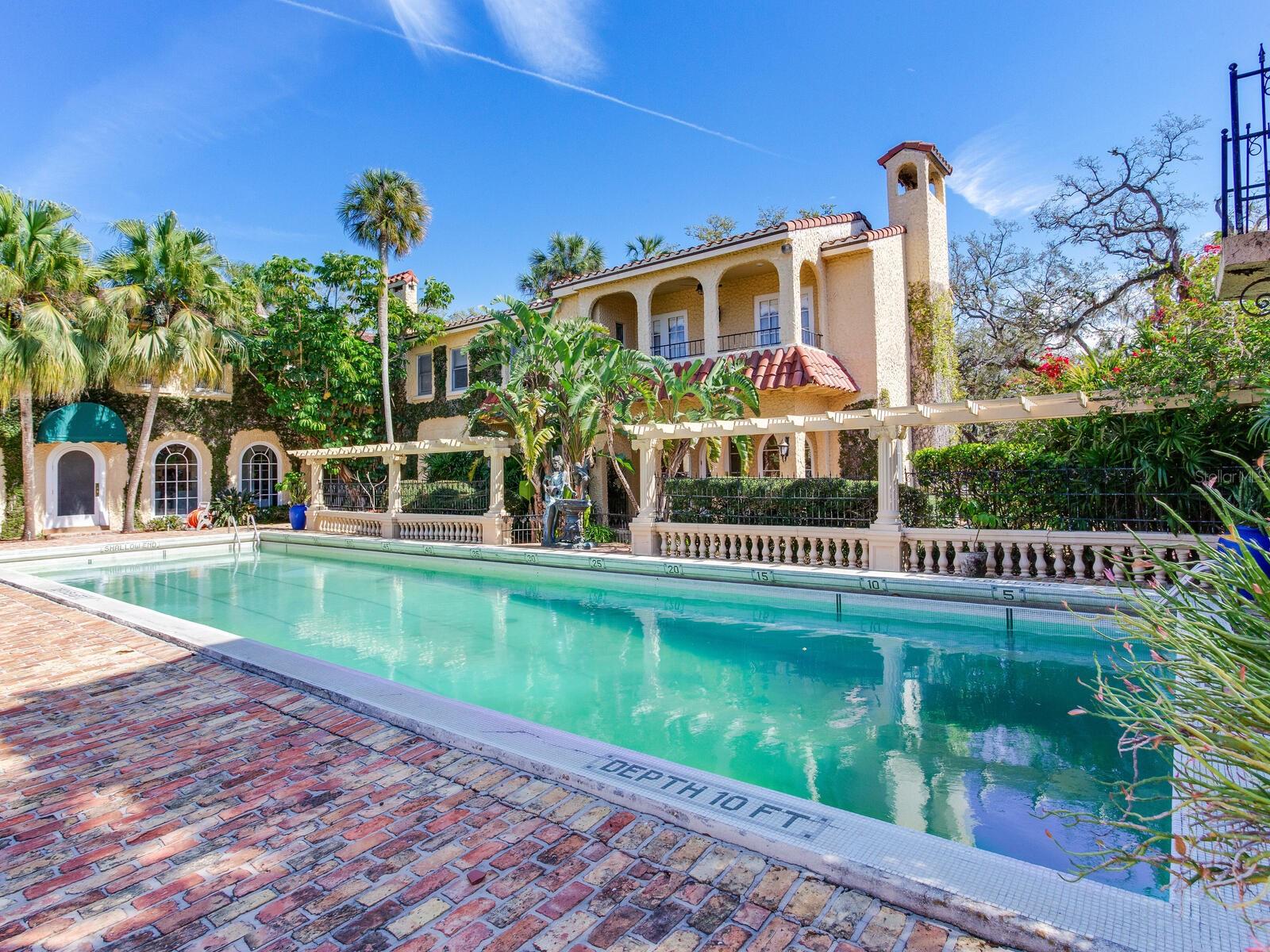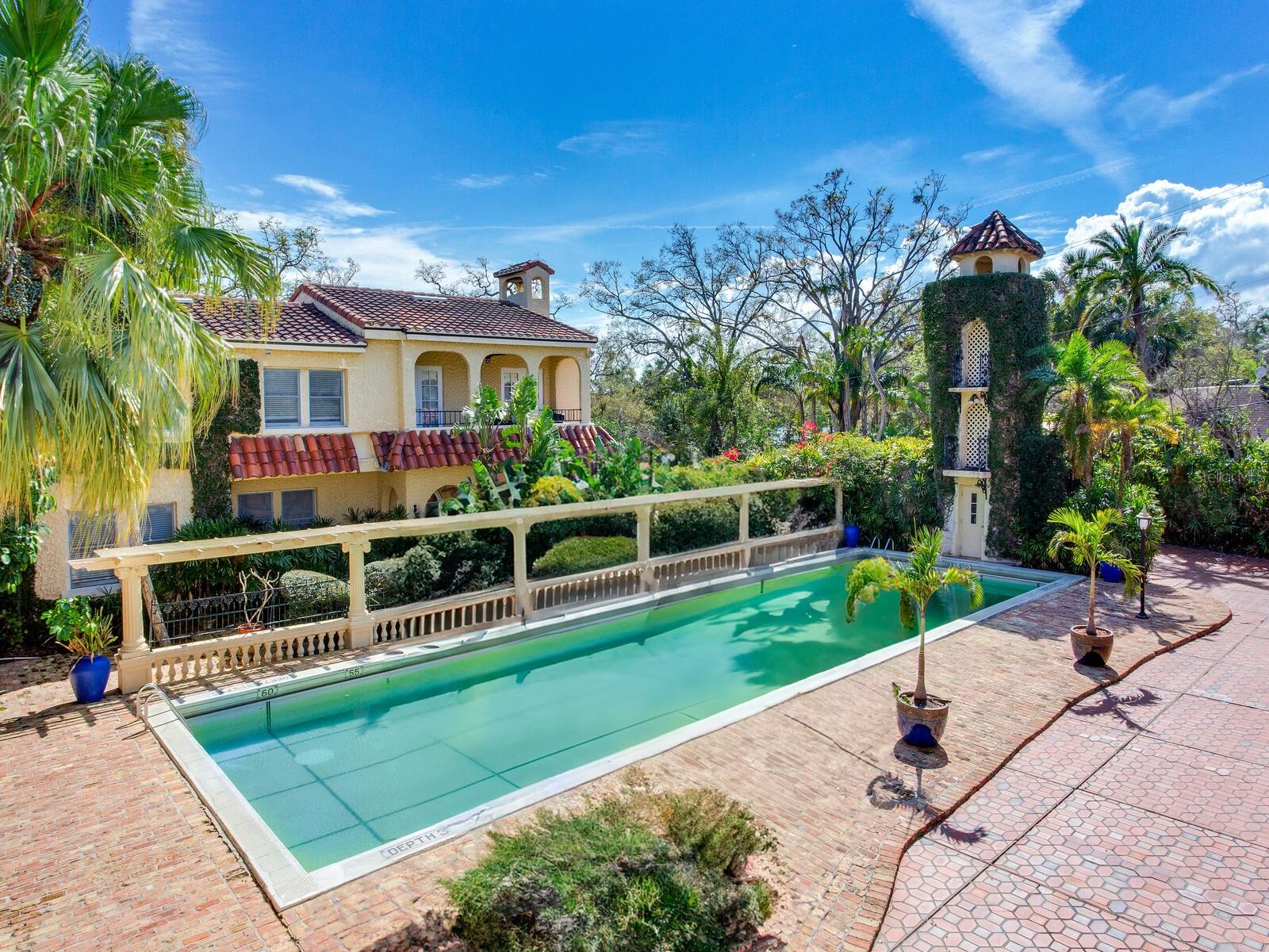 A casa está sendo vendida sem garantias do proprietário, a estrutura desta casa é incrível e vale a pena reformar para quem não quer uma nova construção. A história deste marco histórico de Tampa (embora não esteja no registro histórico) é muito interessante. A propriedade de estilo mediterrâneo com mais de ½ acre foi restaurada à sua grandeza da década de 1920 em 1987. É cercada por um muro de segurança de estuque sobre azulejos ocos, reforçado por portões de segurança forjados em ferro forjado espanhol. As passarelas, pátios e partes da frente e da piscina são feitas à mão em tijolos antigos de Chicago. A piscina olímpica era originalmente alimentada por água salgada da Baía de Tampa. A doca foi parcialmente danificada pela tempestade e não é possível caminhar no momento. Os proprietários originais, Arnold S. Kirkelby e sua esposa Carlotta, Cuesta (os herdeiros do charuto Cuesta), a única filha do magnata do charuto de Tampa, AL Questa, adorava entreter convidados de Hollywood, como Esther Williams, que se apresentou mergulhando da torre de três andares na piscina de 67 pés. Kirkleby era de Hollywood, e sua casa em Hollywood foi usada para a série caipira de Beverly Hills. A casa Shore Crest não é considerada parte da venda, mas só vem com o terreno se alguém quiser.