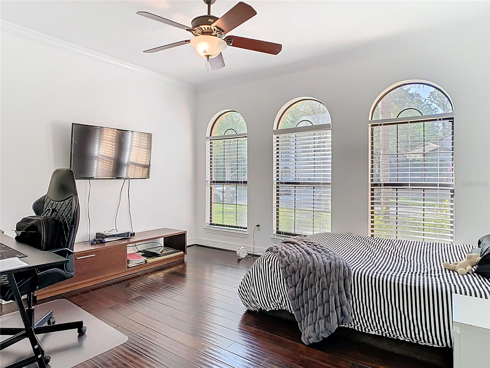 PREÇO DE VENDA – NÃO DURARÁ MUITO! De volta ao mercado com um novo piso de vinil de luxo no andar de cima! Impressionante casa de estilo mediterrâneo em Grand Hampton com 4 quartos + escritório/arrumos, 3,5 banheiros e garagem para 2 carros. O primeiro andar oferece pisos de madeira texturizados, tetos altos de 15 pés e luz natural abundante com portas francesas que se abrem para uma varanda com tela e vistas serenas de conservação - sem vizinhos no quintal! Cozinha gourmet com bancada em granito, eletrodomésticos a gás em aço inox, armários de 42", ilha com pia e área de jantar. O andar de cima inclui quartos espaçosos e uma suíte master ampla com closet, vista para o bosque e banheiro luxuoso com pia dupla e box amplo. Condomínio fechado com comodidades em estilo resort: piscina de entrada zero com tobogã, piscina olímpica, quadras de tênis, clubhouse e muito mais.