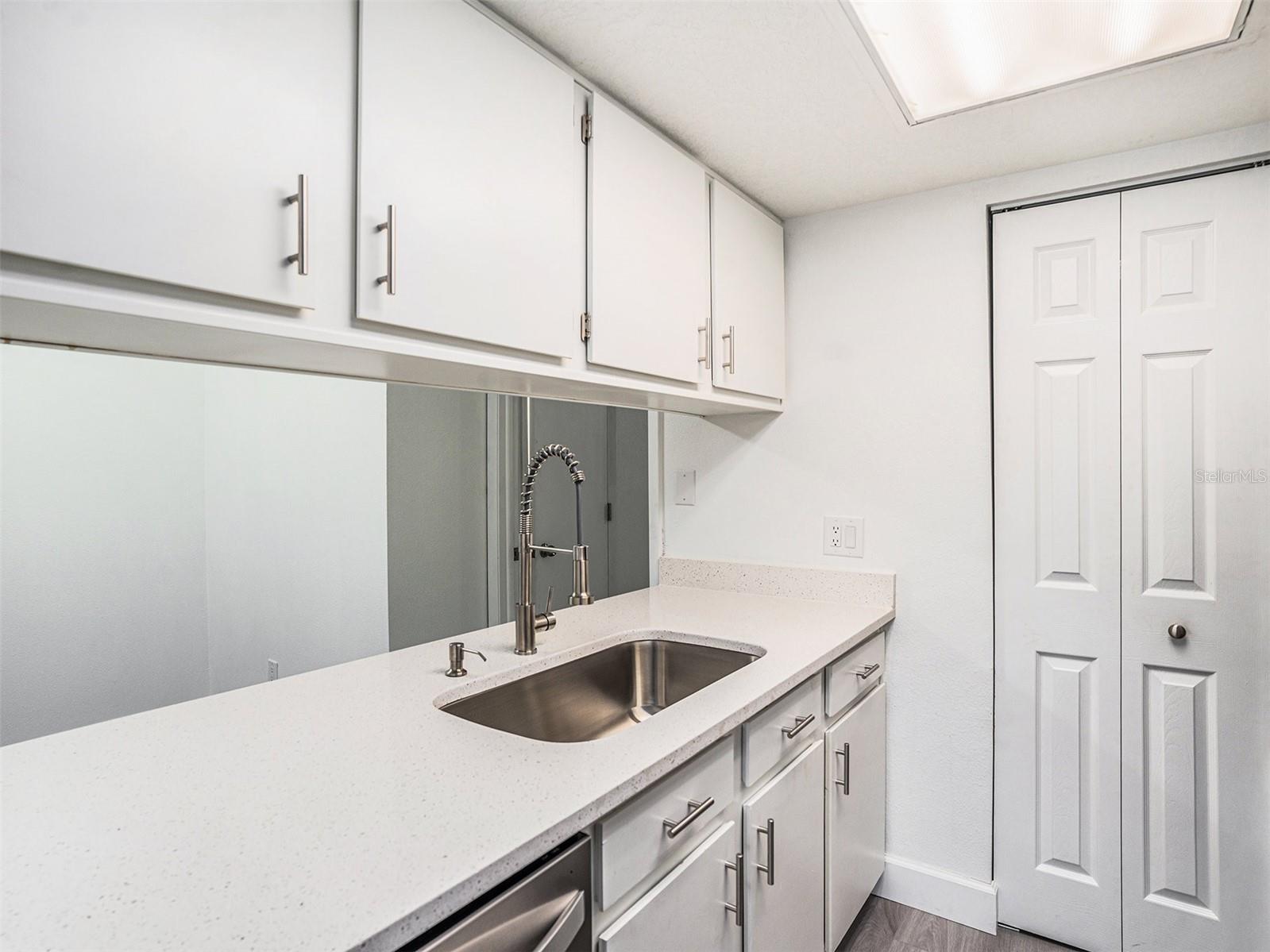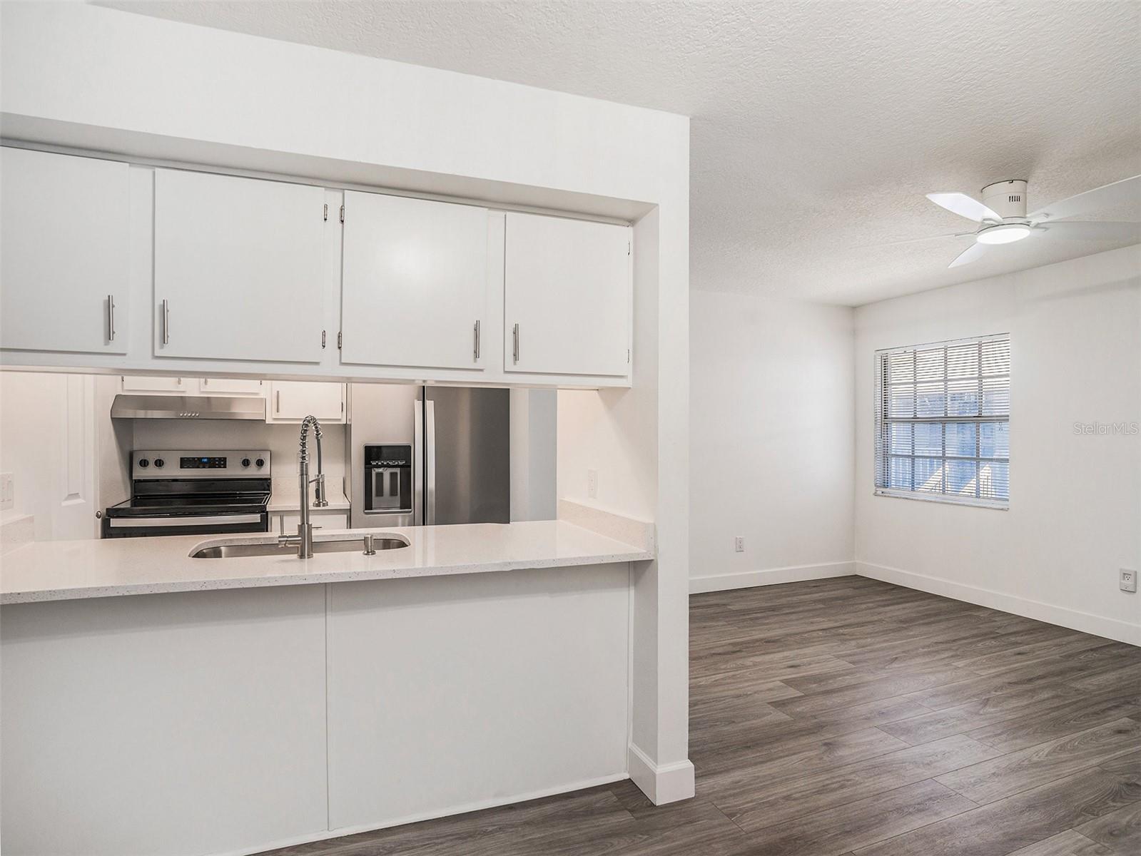 Este recém-renovado condomínio de 1 quarto (de cima para baixo) e 1 banheiro está localizado no Westshore Club em Dynamic South Tampa. A cozinha possui bancadas de quartzo e um pacote de aparelhos de aço inoxidável novo. Ele se abre para um jantar e sala de estar combinados com piso de vinil de luxo. Tudo foi atualizado com bom gosto e em tons neutros. O quarto também possui um novo piso de vinil de luxo e espaço abundante no armário, incluindo um closet. Você pode acessar uma varanda voltada para o oeste do quarto com vista para a piscina e o clube da comunidade. Você encontrará o manipulador de ar HVAC e uma lavadora/secadora empilhável em um terceiro armário. O banheiro inclui um chuveiro, uma nova vaidade com bancada de quartzo e ladrilhos novos no chão e no chuveiro. Este condomínio está convenientemente situado perto do novo distrito de South Tampa, a rampa de barcos Gandy, restaurantes e compras. Perfeito para um comprador pela primeira vez, Nester vazio ou investidor (pode alugar imediatamente após a compra). Taxas razoáveis de condomínio que cobrem água/esgoto/lixo, seguro para o edifício, manutenção externa - e, mais importante, sem avaliações especiais pendentes.