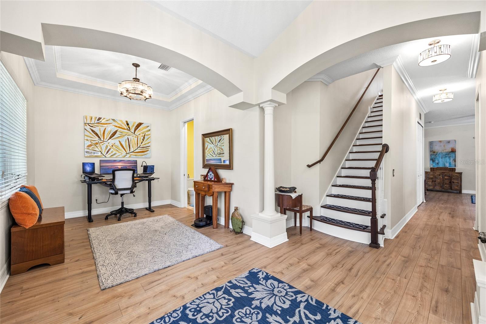 Redução de preços! Aninhado no coração do belo parque da Virginia e localizado no cobiçado distrito do ensino médio, esta casa excepcional possui um refúgio de quintal sonhador com uma piscina de mergulho, uma planta de piso cuidadosamente projetada com uma suíte primária no térreo, e todos os quartos têm seu próprio banheiro e closet. Desde o momento em que você chega, a encantadora varanda coberta, paisagismo exuberante e a passarela de tijolos convidativos deram o tom para o calor e a elegância da casa. Entre para descobrir o piso LVP deslumbrante e os tetos altos em toda a planta aberta. A sala de jantar formal é inundada com luz natural e flui diretamente para a cozinha gourmet, com armários azuis elegantes, uma despensa, fogão a gás, forno embutido, geladeira de grandes dimensões e ilha. Logo depois, a espaçosa área de estar oferece acesso direto ao lado de fora do retiro no quintal. Esteja você querendo dar um mergulho refrescante na piscina de mergulho (não aquecida), mergulhe ao sol, acenda a grelha ou desfrute de jantar ao ar livre sob o toldo embutido, este espaço é projetado para desfrutar o ano todo. A suíte primária inclui um grande armário com embutidos personalizados, bem como um banheiro de pne suíte completo com uma banheira embutida, chuveiro de pé com chuveiro de chuva, vaidades duplas e um armário de água privado. No andar de cima, um loft aconchegante oferece espaço adicional, ideal para uma sala de mídia, área de recreação ou espaço de escritório. Os três quartos no andar de cima apresentam seus próprios banheiros privativos em suíte, armários espaçosos e belos tetos abobadados. A garagem de dois carros destacada oferece espaço de armazenamento adicional, aumentando a incrível funcionalidade da casa. As atualizações adicionais incluem uma nova unidade CA no andar de cima (2023), novos utensílios de cozinha (2024), nova lavadora/secadora (2024), um sistema de irrigação "inteligente", aquecedor de água sem tanques para água quente ilimitada e um amaciador de água doméstica inteira. Localizado a minutos das escolas de melhor classificação, Premier Dining, Shoppings and Parks, esta casa é o lugar perfeito para desfrutar do melhor da vida em South Tampa! Os compradores qualificados da VA podem assumir US $ 790 mil mtg a 3,125%, com pouco mais de 30% em torno de US $ 352.000 a um preço reduzido de listagem! (Ou consulte seu credor como uma segunda hipoteca para obter melhores índices para sua hipoteca).