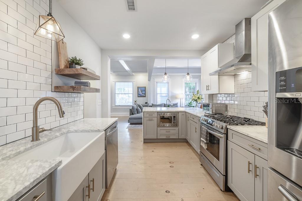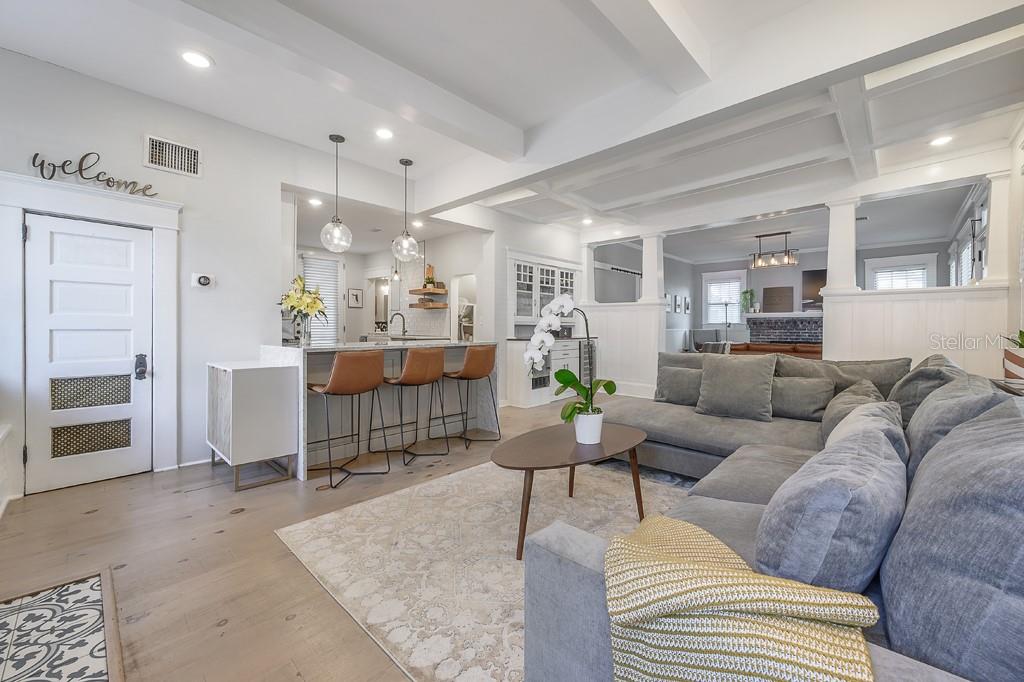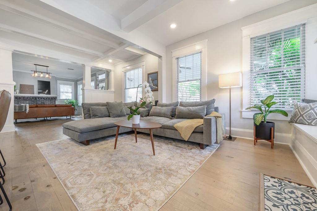 Venha ver este bangalô lindamente restaurado ao estilo artesão em Seminole Heights, que combina aquele charme clássico que você ama com todas as comodidades modernas que deseja. Apresentado na turnê Historic Home de 2019 Seminole Heights, esta casa de 3 quartos / 3 banheiros com sala de bônus / sala de treino / sala de jogo está esperando seu próximo ocupante. O paisagismo maduro e uma varanda da frente convidativa criam o epítome do apelo do meio -fio. Entre na porta da frente para revelar as áreas de estar dupla separadas por estantes clássicas embutidas de bangalô, tetos divididos, bancos de janela e duas lareiras que funcionam totalmente. A área de estar principal possui um bar embutido com armários de vidro vintage, fabricante de gelo e geladeira de vinho, perfeitos para entretenimento. Há muito espaço para montar uma sala de jantar, se desejar. Armários de Shaker, bancadas de mármore, utensílios de aço inoxidável e linha de gás são apenas alguns dos acabamentos sofisticados que fazem disso a cozinha dos sonhos de um chef. No primeiro andar, há um quarto principal, com um banheiro e armário completo. Há também um segundo quarto e um banheiro completo com uma banheira de garra vintage e pia de pedestal. Suba as escadas para encontrar dois quartos adicionais unidos por um banheiro luxuoso de Jack e Jill, com uma vaidade flutuante moderna, chuveiro fechado de vidro com chuveiro de chuva e closet. Aproveite o clima quente da Flórida com o belo quintal paisagístico que inclui uma fogueira embutida e varanda traseira com uma área de estar perfeita para desfrutar do seu café da manhã. Venha ver por que a vida em Tampa é melhor nas alturas.