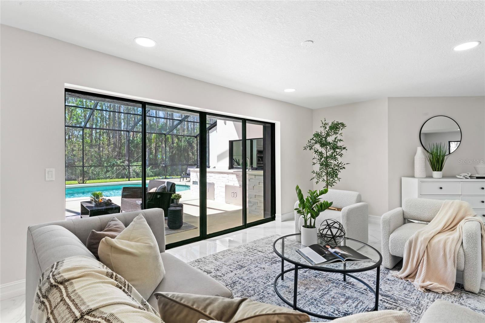 NOVA ENORME MELHORIA DE PREÇO! NÃO PERCA ESSA OPORTUNIDADE E ÓTIMO VALOR! Uma residência recém-remodelada IMPRESSIONANTE e ESPAÇOSA com 4.558 pés quadrados de área útil. Um achado raro, esta ampla propriedade está situada em um lindo terreno pitoresco e privado. TODAS AS NOVAS JANELAS E PORTAS DE IMPACTO DO FURACÃO (2025). Desde o momento em que você entra, belas vistas serenas da área de estar ao ar livre, da piscina cintilante e do terreno arborizado. Esta casa oferece muita luz natural e uma planta aberta convidativa. Uma nova cozinha moderna e iluminada com armários totalmente novos, luxuosas bancadas de quartzo, novos eletrodomésticos de aço inoxidável e uma grande ilha com espaço para refeições. Sala de jantar formal separada. Uma propriedade incrível com 6 quartos, 5 lindos banheiros novos, uma enorme suíte primária ao lado da piscina no primeiro andar com closet, 2 salas de estar, incluindo uma incrível sala grande com lareira de pedra e tetos altos de tábuas de madeira. O escritório / sala bônus é um ótimo espaço com banheiro privativo e fácil acesso à área da piscina e nova cozinha externa ótima para entretenimento. Muitos armários e garagem para 2 carros. Convenientemente localizado perto de escolas, estádios e locais esportivos de Tampa Bay, lojas, restaurantes, campos de golfe, parques, Aeroporto Internacional de Tampa, Shopping Internacional de Tampa e muito mais! Agende sua exibição privada hoje!