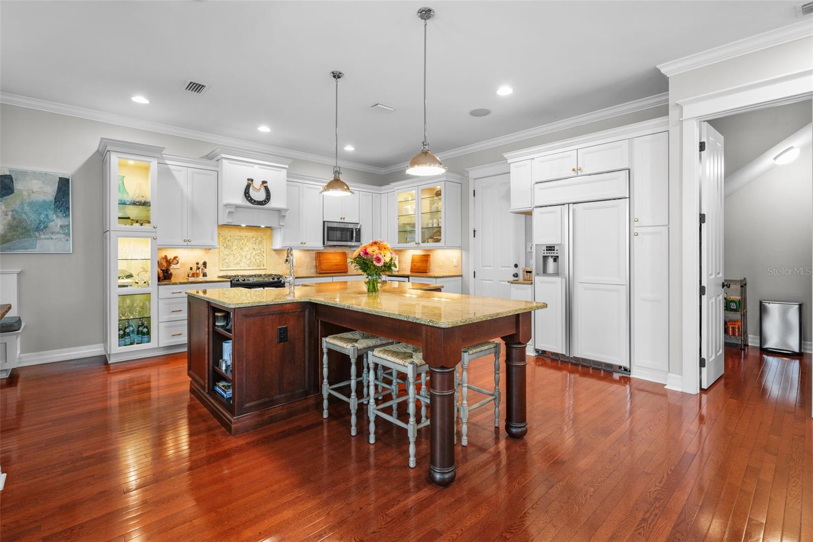 Localizada em um distrito escolar de Bayshore de Bayshore altamente desejável e a poucos passos da mundialmente de renome Bayshore Blvd, esta linda casa de dois andares de dois andares, construída por Javic Homes, aguarda você. Situada em uma rua sem saída tranquila, esta casa de bloco de concreto é adornada com pisos de madeira quente e molduras elegantes da coroa com ampla luz natural brilhando através das persianas da plantação que cobrem a maior parte das janelas classificadas pelo impacto. A espaçosa cozinha do chef possui uma grande ilha, armários de madeira maciça, bancadas requintadas em granito, alcance de gás com capa de ventilação decorativa, geladeira de vinho, pia da fazenda, juntamente com uma despensa personalizada e recanto do café da manhã. A cozinha se abre para a espaçosa sala de estar com lareira a gás, oferecendo vistas deslumbrantes do luxuriante quintal. Volte para a Lanai de tijolos cobertos e selecionados para descobrir a área de entretenimento ao ar livre, piscina e spa aquecidos, a fogueira a gás, que tem acesso a um banheiro privativo ao ar livre. O espaço é perfeito para entretenimento, com as escadas e a área externa aprimoradas pelos alto -falantes de som surround. Suba as escadas para encontrar espaço adicional, incluindo 4 quartos, uma sala de mídia bônus, juntamente com lavanderia no andar de cima e armazenamento adicional no sótão. A suíte primária apresenta armários dele e dela, os dele e os dela afundam, um chuveiro enorme, todos adornados com azulejos de mármore. Muito armazenamento está disponível na garagem de 3 carros, possui tetos de 16 pés, juntamente com o loft de armazenamento de 200 pés quadrados no sótão. Esta bela casa apresenta uma combinação de estilo elegante, construção de qualidade em um ambiente único e privado, perfeito para fazer memórias com familiares e amigos. Ligue hoje para uma exibição.