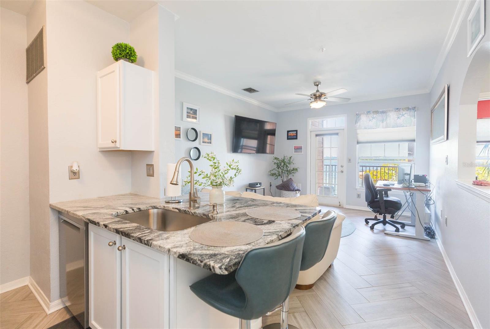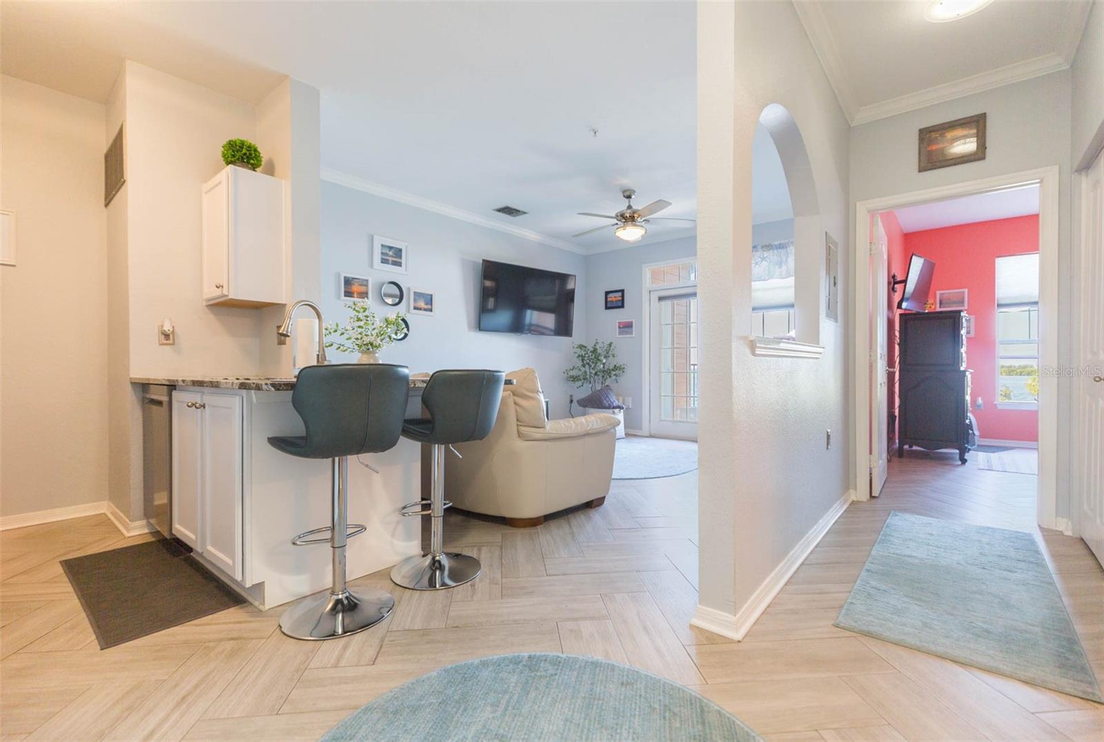 O estilo de resort Living encontra a propriedade da casa na comunidade CulBreath Key, onde todos os dias parecem férias! Assim que você entra, uma vista discrevida do Golfo recebe você em casa e é o pano de fundo de um estilo de vida. A cozinha atualizada com armários de madeira maciça, utensílios de aço inoxidável, despensa e bancadas de pedra é perfeita para sediar uma ótima refeição com vista. A telha de madeira de cerâmica decorativa em um padrão de espinha de peixe dá aos pisos um elemento artístico extra. O banheiro é moderno e elegante, com ladrilhos de chão ao teto, detalhes em torneiras cromadas no chuveiro e um grande nicho para encaixar seus produtos de higiene pessoal de spa. Você sentirá que está dormindo em uma casa na árvore acima da água e balançando palmeiras, é a maneira perfeita de começar e terminar o dia. Entre no armário para obter um espaço extra. A lavadora e a secadora está convenientemente localizada na unidade e possui armazenamento. A comunidade tem muitas áreas comuns para absorver o sol, nadar, churrasqueiras públicas, academia e um clube para sediar eventos maiores com vista para a marina e os peixes -boi! Você pode até caminhar seu animal de estimação no caminho para o cachorro correr e fazer novos amigos. É sempre um dia na praia sentado no pátio e assistindo ao pôr do sol com sua bebida favorita. Convenientemente localizado para tudo em Tampa e Pinellas, perto de restaurantes, lojas e o próximo distrito de Westshore Marina. Este é o momento perfeito para possuir antes que todos queiram um pedaço de vida à beira -mar!