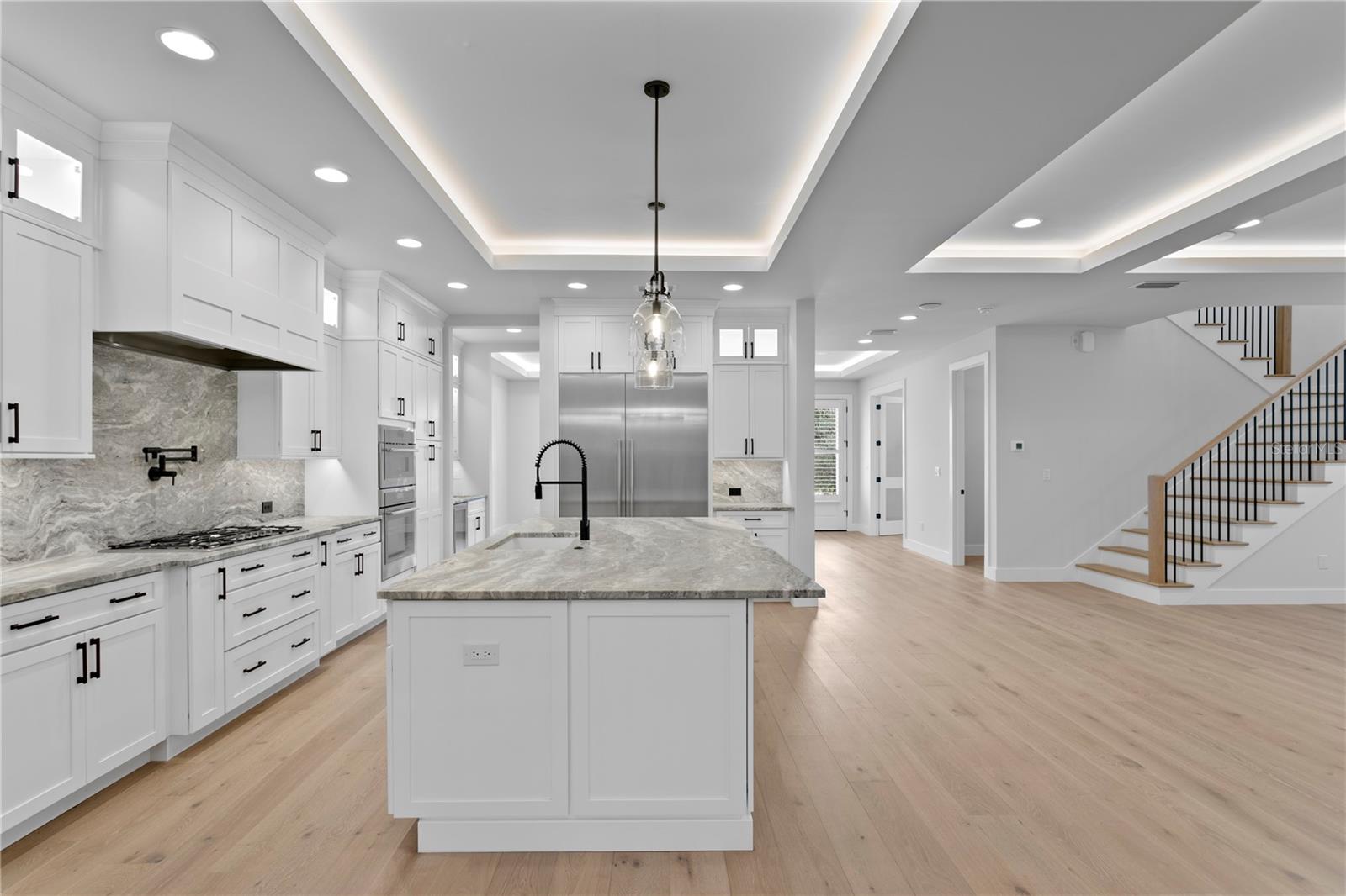 Escondidos em uma rua bonita e sombreada em um zona de sem-ingestão (zona de inundação X), esta casa de luxo personalizada oferece paz, privacidade e conveniência-tudo a uma curta caminhada das escolas de melhor classificação, restaurantes de renome e os melhores locais locais da cidade. Com acesso rápido a rodovias próximas, o deslocamento é uma brisa. Construído em 2024, esta casa personalizada foi comprada, mas nunca ocupada, apresentando uma rara oportunidade de possuir uma construção totalmente nova com atualizações e serviços completos-prontos para a mudança imediata. No interior, a casa possui um layout flexível projetado para a vida moderna: trabalhe confortavelmente em um escritório privado com um armário, hospeda convidados na sala de jantar formal ou relaxe na área de estar de conceito aberto com lareira elétrica, tons motorizados, uma TV grande e sistema de som embutido. Os tetos modernos da bandeja com iluminação LED diminuídos adicionam ambiente. A cozinha do chef está equipada com armários personalizados, bancadas de textura de couro macias, iluminação sub-cabinete, utensílios de aço inoxidável premium, uma despensa e um café com um refrigerador de bebidas. Um recanto de café da manhã encantador oferece vistas pacíficas da piscina e vegetação exuberante. No térreo, um quarto com vista para a piscina oferece flexibilidade como suíte de hóspedes ou retiro privado. O Mudroom inclui lavanderia empilhada, uma pia e armazenamento de utilidades e se conecta diretamente a uma garagem de três carros com piso epóxi e uma calçada de pavimentação-fornecendo função e apelo do meio-fio. Ao ar livre, o sonho de um artista aguarda: a piscina de água salgada aquecida é cercada por um lanai exibido para facilitar a manutenção e o prazer durante todo o ano. A cozinha ao ar livre aprimora suas possibilidades de hospedagem, enquanto o território adequado para cães, palmeiras sombreadas e iluminação de paisagem LED adiciona privacidade e serenidade. No andar de cima, o loft de entretenimento inclui uma grande TV, bar molhado com refrigerador de bebidas e se conecta a um quarto privado em suíte - ideal para hóspedes ou adolescentes. Dois quartos adicionais compartilham um banheiro de jack-and-jill e uma espaçosa lavanderia oferece armários personalizados e iluminação embutida. A suíte primária é um verdadeiro retiro, com tons elétricos, armários duplos, vaidades duplas com espelhos LED, uma estação de maquiagem dedicada, uma banheira de imersão, um grande chuveiro com iluminação LED e um armário de água privado com um bidê. Ligue para seu agente hoje para agendar uma exibição particular-essa casa de luxo pronta para mover-se está esperando por você!