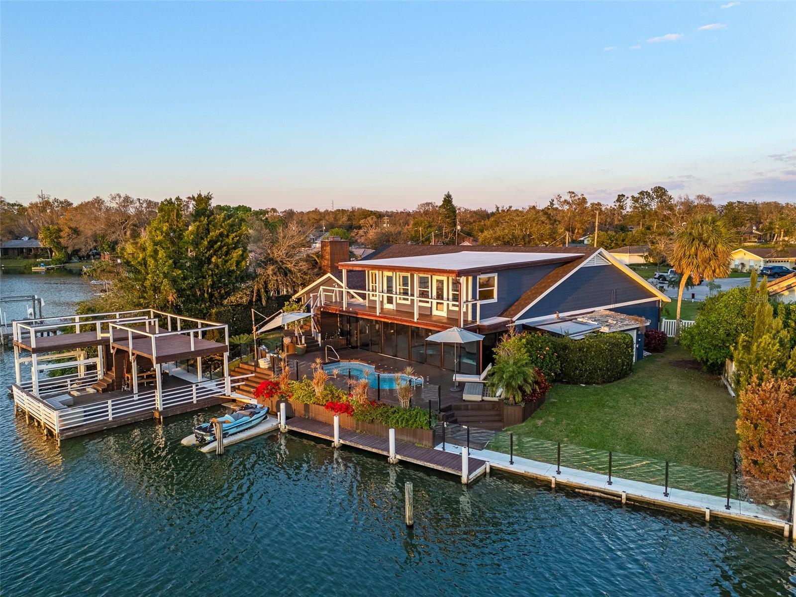 O pôr do sol, mais de 60 acres, o lago Egito, o lago de esqui mais próximo de South Tampa, Hyde Park, o centro de Tampa e o Aeroporto Internacional de Tampa. Esta impressionante residência moderna à beira do lago de meados do século tem quatro quartos e quatro banheiros, enquanto residia no alto de uma península tranquila e sem saída, com aproximadamente 121 pés de fachada à beira-mar. À medida que você se aproxima, você será recebido pela porta da frente de grande porte e entrará no Grand Hallyer, oferecendo vistas imediatas da água e tetos da catedral de 12 pés, criando uma sensação de luxo sofisticado. O piso quente e largo de ladrilhos flui perfeitamente por todo o primeiro andar, acentuado por um impressionante design de embutimentos de barrote em mármore no hall de entrada, e misturado a ladrilhos elegantes na cozinha. A grande sala ampla é ideal para divertir, onde as janelas do chão ao teto e as janelas de impacto abrangem toda a parede voltada para o lago, apresentando vistas panorâmicas de tirar o fôlego da água. A cozinha requintada possui uma grande ilha central com bancadas de quartzo, uma borda de cachoeira dupla, cozinheira embutida, enchimento de panela e capuz de alcance. Uma nova geladeira dupla Dacor de 60 polegadas é complementada pelos novos fornos de parede embutidos do Dacor, a máquina de lavar louça Bosch e os armários de agitadores azuis, juntamente com uma despensa escondida com armários de vidro contendo uma segunda geladeira. A suíte primária está no primeiro nível, com um banho expansivo com espaço de preparação de dupla vaidade separado, com uma parede de mármore, um armário de água separado, uma banheira livre livre e uma terceira pia no banho principal. Dois grandes armários de entrada são totalmente construídos com gavetas de exibição de vidro, oferecendo amplo armazenamento e organização. A academia em casa com ar-condicionado é aprimorada por grandes janelas de vidro para luz natural e foi adicionada no ano passado, juntamente com a nova garagem de dois carros que apresenta uma brilhante porta de garagem de vidro moderno. Esse layout oferece ótimos aspectos, como um café independente, refeições formais em frente à lareira, uma suíte de sogro com entrada ao ar livre, uma banheira de lavagem de animais de estimação na lavanderia, um loft de TV no andar de cima, um espaço de gardão coberto ao ar livre, um treliço de garden, um galpão de armazenamento e um gancho de pet-side para crianças ou garotas. Os principais toques incluem bandeiras e portas de artesãos, luminárias de ouro elegantes, maçanetas de cristal, iluminação LED embutida, molduras de janelas de bronze, um sistema de osmose reversa completa, sistema de áudio integrado, termostatos de ninho, um sistema de segurança sem tanques e um telhado e um novo telhado em 2021. A vida externa é elevada com uma piscina de água com uma piscina de água e um telhado em 2021. quintal. Uma varanda traseira com novos tetos de cedro, acessível a partir do deck da piscina, é complementada pelos calhas de cobre e bonés de chaminé. O paisagismo exuberante da propriedade flui para a gigante doca de dois níveis, que abraça o lago com áreas cobertas abaixo e áreas de bronzeamento acima que oferecem vistas mais impressionantes da água.