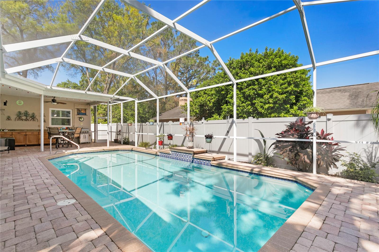 Localizado em um lote de canto de 10.695 pés quadrados no coração de Carrollwood, esta encantadora casa de 4 quartos e 3 banheiros tem tudo com um layout bem projetado, piscina de água salgada, cercada no quintal e atualizações recentes nos principais sistemas da casa. Situado em uma comunidade tranquila e pacífica, alinhada com árvores e calçadas, esta casa combina um ambiente relaxante com a localização privilegiada. Entre em uma planta piso de conceito aberto, cheio de luz natural, com portas de pátio com várias linhas que permitem a vida inteira fora de fora. A ampla área de estar flui sem esforço para o pátio coberto, onde você pode relaxar enquanto com vista para a impressionante piscina de água salgada com um recurso tranquilo em cascata. O oásis externo entre a tela também inclui uma área de bar molhada ao ar livre, completa com uma pia e uma mini -frigideira - perfeita para entretenimento. Projetado para estilo e função, a cozinha possui utensílios de aço inoxidável, uma ilha com armazenamento, assentos de bar e um recanto de café da manhã, além de acesso direto à sala de jantar formal. A encantadora suíte primária fornece acesso direto ao ar livre através de portas francesas, bem como um banheiro em suíte, completo com um grande chuveiro fechado de vidro, banheira de jacuzzi, armário de água separado e um closet com embutidos personalizados. Um quarto de fundo distinto apresenta sua própria sala de bônus/espaço flexível com uma entrada separada, criando a oportunidade perfeita para uma suíte privada, se desejar. Esta área inclui um quarto dedicado, o versátil espaço de bônus e um banheiro privativo completo. O outro quarto oferece um closet com acesso a um banheiro privativo. A sala da frente oferece flexibilidade para ser usada como um escritório ou um quarto adicional. Numerosas atualizações adicionam tranquilidade, incluindo o New Windows (setembro de 2021), uma nova bomba de piscina e compressor (2025), um sistema de 2020 AC e um aquecedor de água 2020. A garagem de dois carros de grandes dimensões apresenta pisos epóxi e prateleiras de armazenamento aéreo seguras. A estabilização da fundação do solo realizada pela LRE em 2024, aumentando a segurança do lar e contribuindo para sua longevidade. Relatórios disponíveis.