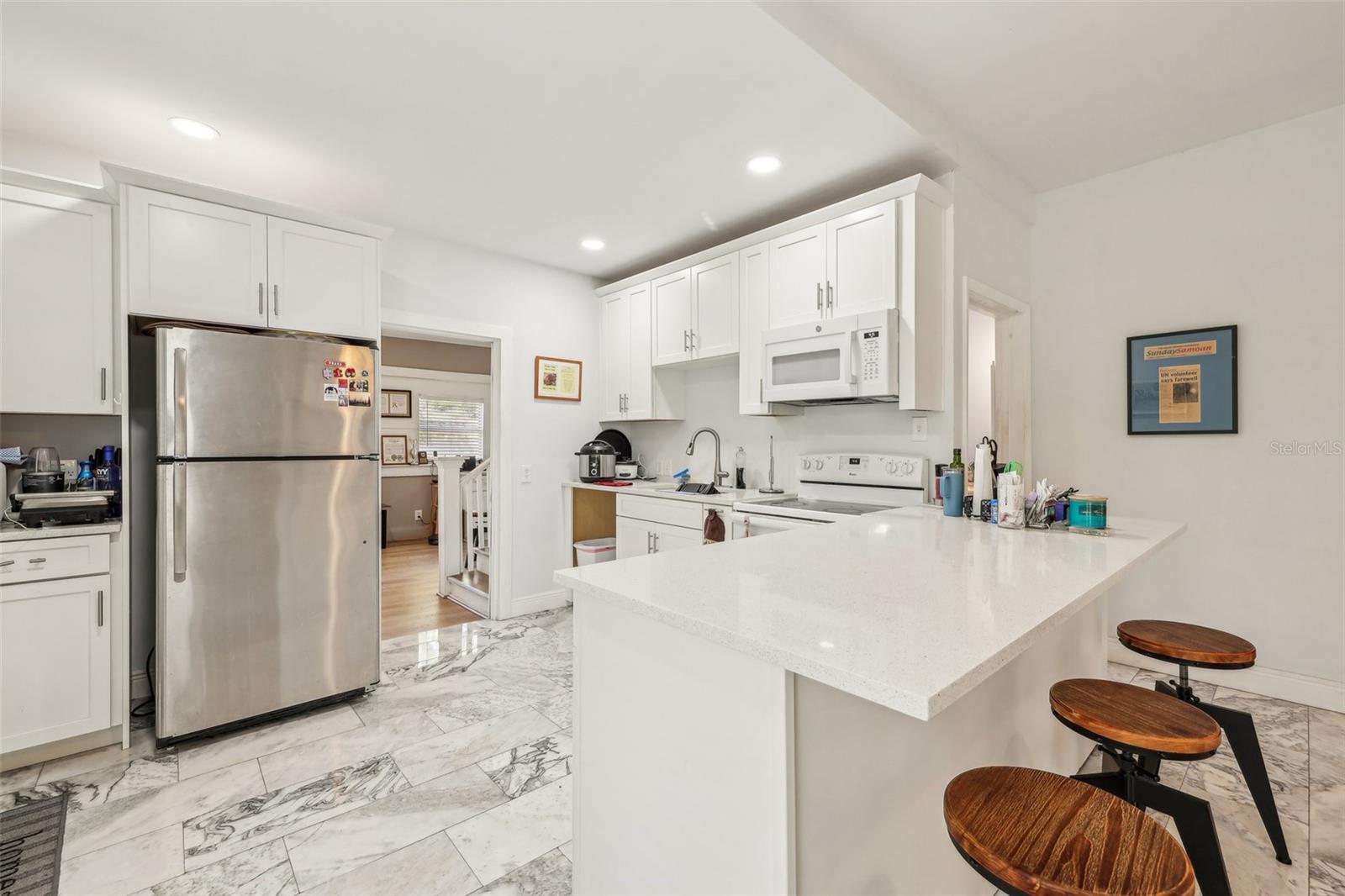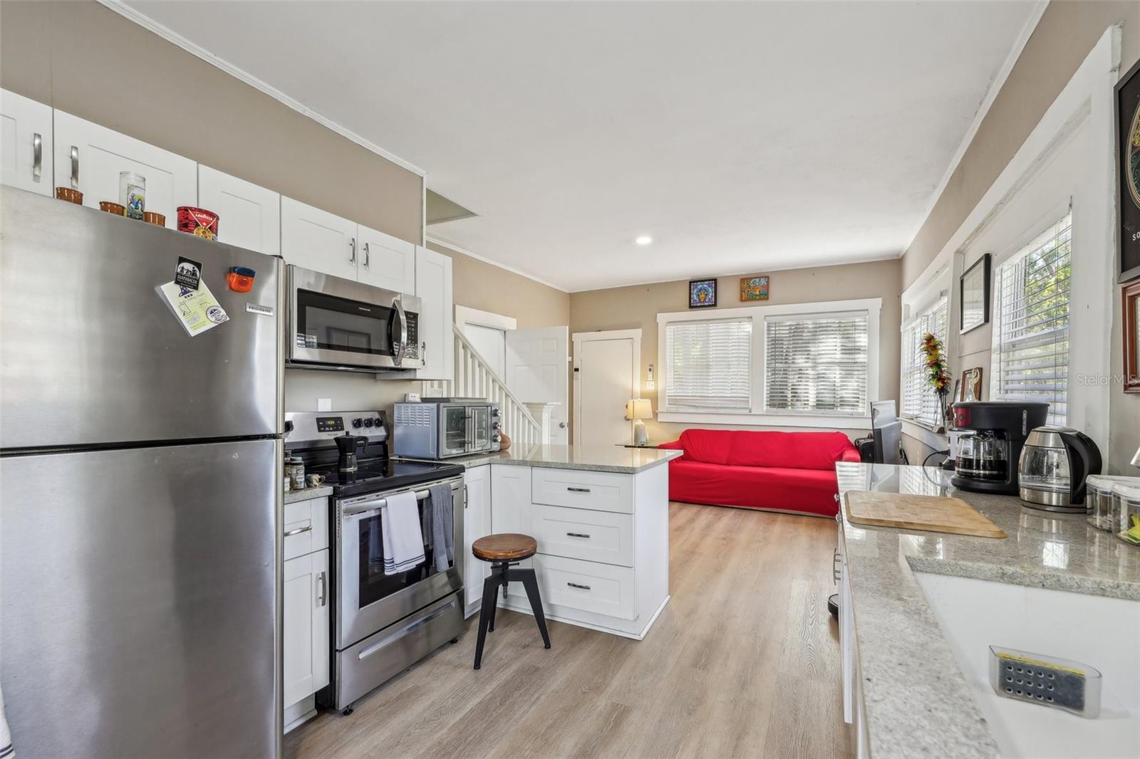 Bungalo de 1925, de 1925, perto de Ybor, Channelside e Downtown! Descubra a mistura perfeita de charme histórico e conveniência moderna com este bangalô de Bunida, de 1925, de 1925! A poucos minutos de Ybor City, Channelside e o coração do centro de Tampa, esta jóia versátil oferece dois espaços de estar separados-ideais para vida multigeracional, renda de aluguel ou simplesmente espaço extra! Entre no espaço primário da frente e você encontrará uma cozinha impressionante e totalmente renovada, com eletrodomésticos atualizados, pisos de ladrilhos de mármore elegantes, um microondas embutido e lindas bancadas de superfície sólida. O banheiro é igualmente impressionante, com um chuveiro de azulejos personalizado com uma porta de vidro e uma vaidade elegante. A espaçosa lavanderia interna vem completa com uma lavadora e secadora para maior conveniência. O espaço secundário é igualmente impressionante! Possui uma cozinha moderna com armários atualizados, uma pia elegante e bancadas de superfície sólidas. O quarto no andar de cima inclui um espaço flexível perfeito para um escritório em casa, Den ou até um segundo quarto. Fique confortável o ano todo com duas unidades HVAC mini-split-uma para cada nível! Ambos os espaços de estar são conectados por uma porta interior que pode ser trancada para maior privacidade. O rico piso de madeira laminado da casa está em excelente estado, adicionando calor e caráter. Aproveite o estilo de vida da Flórida em suas varandas cobertas nas entradas laterais e traseiras. O estacionamento é fácil com acesso ao beco traseiro - sem aborrecimentos de estacionamento aqui! Esta casa é uma descoberta rara - carregada de charme, atualizações e flexibilidade. Não perca a chance de possuir um pedaço da história de Tampa! ?