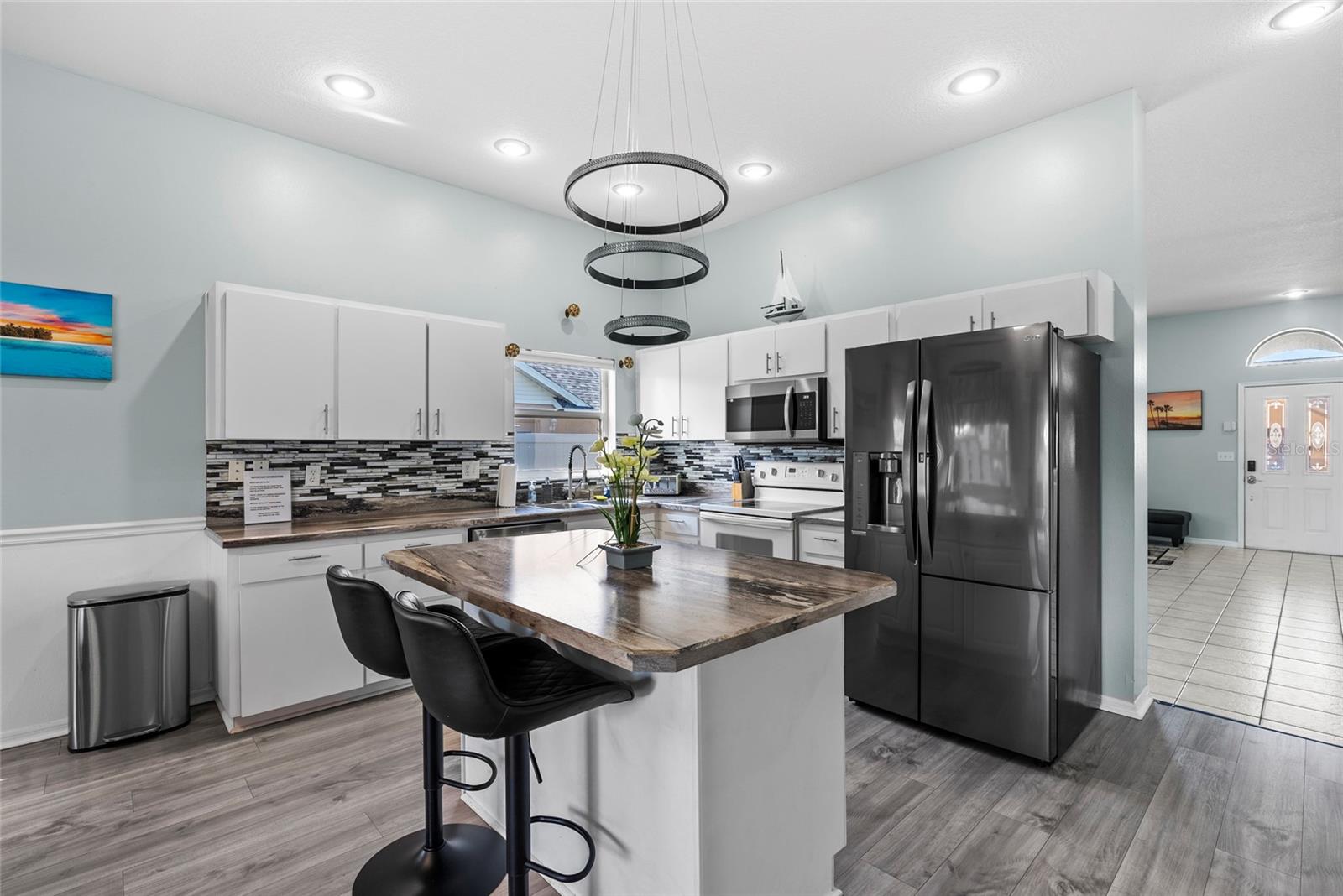 Esta deliciosa casa de 4 quartos e 2 banheiros oferece um ambiente costeiro sereno que convida o relaxamento desde quando você chega. A planta baixa é elegante e funcional, tornando -a uma excelente opção para entreter ou aproveitar um tempo de qualidade com a família e os amigos. A sala de estar é brilhante e arejada, graças aos seus tetos altos e janelas grandes, permitindo ampla luz natural. A cozinha totalmente equipada possui uma geladeira de aço inoxidável, bancadas generosas e espaço para o armário, uma ilha e uma despensa útil. Adjacente à cozinha, a área de jantar oferece um cenário encantador para refeições caseiras, com vistas do quintal particular. Cada um dos quatro quartos espaçosos é cuidadosamente decorado e apresenta vinil luxuoso, garantindo conforto e estilo. A suíte principal se destaca com seu teto abobadado e closet, enquanto o banheiro principal está equipado com pias duplas, uma banheira de imersão de jardim e um chuveiro separado para um luxo adicional. O verdadeiro destaque desta casa é o espaço ao ar livre. Entre no seu oásis de quintal particular, incluindo uma piscina brilhante e um lanai exibido-um local ideal para um mergulho refrescante ou relaxante à beira da piscina com uma bebida gelada. Convenientemente localizado perto de compras, restaurantes e rodovias, esta casa está perfeitamente posicionada para conforto e acessibilidade.