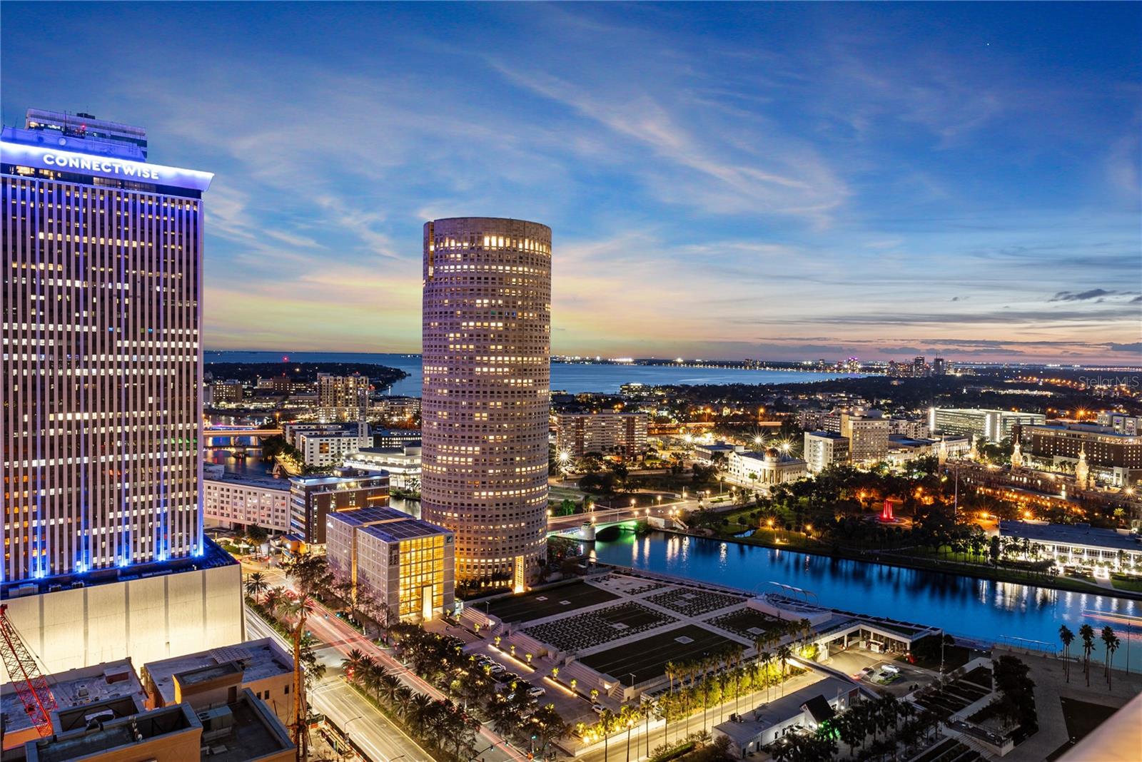 Este estúdio sofisticado oferece o retiro perfeito para quem procura um estilo de vida minimalista na cidade vibrante, ou para quem procura mergulhar nas diversas ofertas do centro de Tampa. Seja você um fã de hóquei que freqüenta os jogos de raios, desfrute de shows no Straz Center for the Performing Arts, participe das muitas atividades no Riverwalk ou simplesmente desejam a emoção da vida da cidade, esta residência serve como a base perfeita para sua escapada de Tampa. Ao entrar, você é recebido por janelas do chão ao teto que se enquadram vistas deslumbrantes do horizonte de Tampa, da Baía de Tampa e do tranquilo rio Hillsborough. Entre na sua varanda privada para respirar as vistas e sons abaixo. Esta residência foi cuidadosamente atualizada com pisos de ladrilhos, criando uma estética perfeita e moderna. A cozinha elegante possui armários de madeira, bancadas em granito e amplo espaço para acomodar uma mesa de café da manhã. O banheiro possui um luxuoso chuveiro sem moldura com ladrilhos de grife, fornecendo o lugar perfeito para rejuvenescer após um longo dia. Eleve seu estilo de vida no Skypoint com acesso exclusivo a uma variedade de comodidades no estilo resort. Mergulhe em luxo com uma piscina aquecida e spa que oferece vistas deslumbrantes da paisagem da cidade. A área chique do clube, sala de teatro e bilhar oferecem espaços ideais para hospedar reuniões ou conhecer vizinhos. As estações de grelhar ao ar livre e um parque urbano elevado criam configurações perfeitas para entretenimento ou relaxamento. Mantenha-se ativo nas salas de cardio e fitness de última geração. O serviço de concierge 24/7 garante uma experiência de vida confortável e luxuosa dentro do edifício. Existe até uma máquina de café complementar no saguão. Convenientemente localizado para as artes, o local do centro da Skypoint coloca você no epicentro da cena vibrante de artes e cultura de Tampa. Do Tampa Theatre ao Straz Center for the Performing Arts, Curtis Hixon Park, Riverwalk reconhecido nacionalmente, Amalie Arena e locais de música e festivais de rua, você terá o melhor da comunidade criativa de Tampa à sua porta. A minutos de Bayshore Blvd., Water Street Tampa, Channel District, Hyde Park e Ybor. Existem vários restaurantes elegantes no térreo do seu prédio e inúmeros mais na esquina. Experimente o melhor da vida urbana no Skypoint, onde o luxo encontra a conveniência no coração de Tampa.