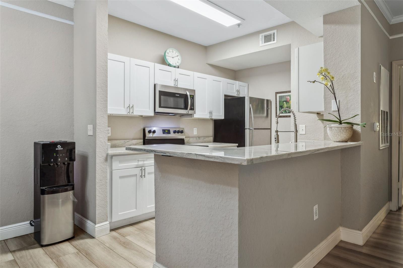 Luxo Remodelado 2Br com garagem privada - sem escadas, sem zona de inundação! Mudar-se pronto e atualizado meticulosamente, este plano de dois quartos de piso dividido entrega todos os itens obrigatórios. Armários espaçosos, banheiros privativos com bancadas elegantes de pedra-além de um chuveiro e banheira de banheiro replominado. Estilo e conveniências modernas da cozinha: novos armários brancos, contadores de granito de 2023, gavetas de close suave, nova iluminação aérea de LED suave. Piso de tábua de vinil de luxo fácil por toda parte. Os aparelhos (lava -louças, alcance, geladeira, microondas) são de 3 a 4 anos. Fãs de teto em todos os quartos. Toques elegantes: moldagem por coroa, cortina preta do chão ao teto, entrada de madeira e entrada sem chave. Lavanderia/Mudroom com arruela/secadora profunda de Whirlpool 2024). Varanda redremedida (2024) com vista para uma reserva tranquila - não vizinhos traseiros, apenas pássaros e vida selvagem. Novo telhado (2023), AC de 4 anos e aquecedor de água. Estilo de vida ativo e comodidades comunitárias: Clubhouse, Pool, Fitness Center, Racquetball, Tênis, Gerenciamento no local, Compactor de lixo. O Tampa Palms, altamente procurado, possui escolas de melhor classificação, incluindo programas de classificação A Liberdade e STEM. Tampa Palms combina paisagismo exuberante com vida ao ar livre - caminhadas mutuamente encontram beleza selvagem. Explore as 7+ milhas de trilhas sombreadas, vida selvagem e ciclovias perto da I-75. Caminhe para lojas e jantar ou zíper para o USF, VA Hospital e as principais atrações via I-75. Ideal para proprietários ou investidores-as regras de learque permitem dois arrendamentos de 6 meses por ano. Localização, luxo e conveniência - tudo em um!