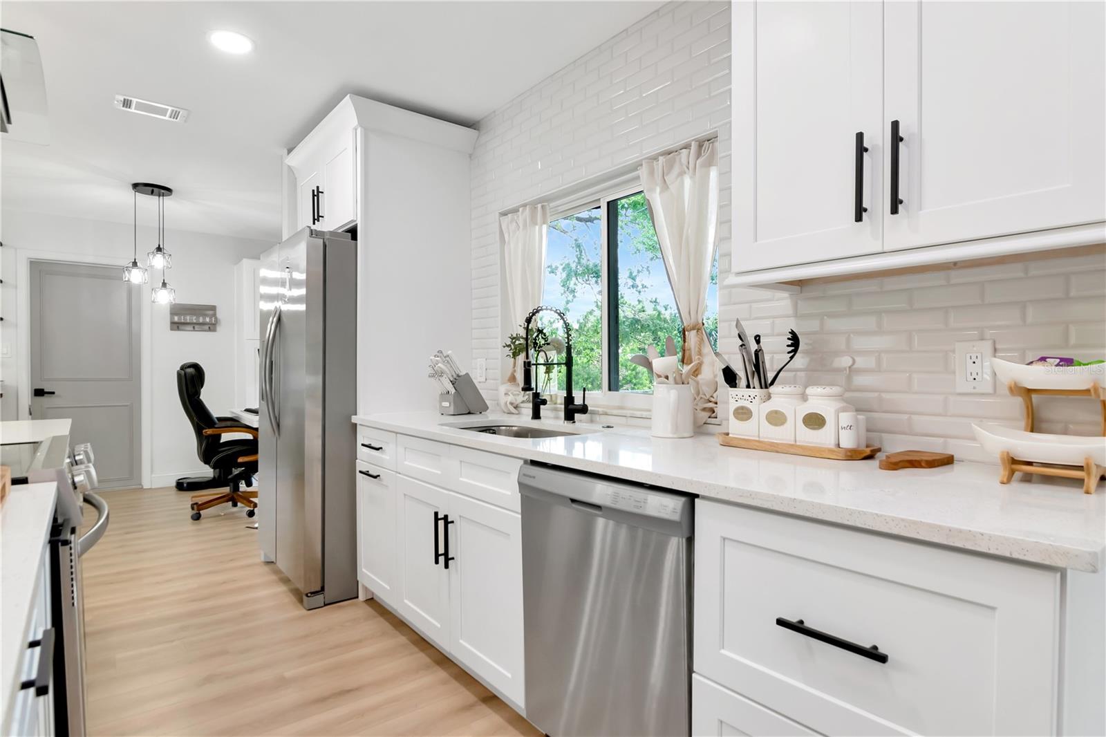 Bem-vindo a esta residência requintada e lindamente atualizada de 3 quartos e 2 banheiros, aguardando ansiosamente seu novo proprietário! Ao se aproximar, deixe-se cativar pela charmosa varanda frontal adornada com floreiras de bom gosto que realçam o apelo elegante do meio-fio. Entre para descobrir uma planta aberta convidativa com luxuoso piso de pranchas de vinil, elementos de design moderno e uma lareira aconchegante que exala instantaneamente calor e sofisticação. A cozinha dos sonhos do chef possui requintados armários brancos em estilo shaker, impressionantes bancadas de quartzo branco e eletrodomésticos de aço inoxidável de última geração, criando um espaço ideal para a criatividade culinária. No final do corredor, descubra quartos de tamanhos generosos, com dois compartilhando um banheiro enorme completo com uma grande penteadeira luxuosa. Além do nosso recente ajuste de preço, o Vendedor também está oferecendo um crédito de US$ 5.000 para os custos de fechamento dos compradores. Retire-se para o magnífico quarto principal, onde você encontrará um espaçoso closet e um banheiro privativo que oferece um refúgio sereno. Desfrute de uma vida interna e externa perfeita com acesso ao pátio da sala de estar, com vista para um quintal totalmente cercado - perfeito para realizar churrascos esplêndidos no quintal e reuniões memoráveis! Melhorando a experiência ao ar livre, a casa apresenta um paisagismo recém-projetado, um quintal lindamente trabalhado e um sistema de irrigação de última geração completo com linhas de gotejamento nos canteiros da frente e ao longo da cerca traseira, garantindo uma vegetação exuberante durante todo o ano. Novas calhas complementam o exterior da casa, enquanto o sistema de osmose reversa e filtragem de água Culligan para toda a casa garante a qualidade da água cristalina por toda parte. Para maior comodidade, desfrute das novas persianas automáticas com conectividade Bluetooth, proporcionando controle fácil da luz natural. Localizada na 125 Siobhan, esta casa oferece conveniência incomparável, com fácil acesso à I-275 e uma variedade de opções de compras e restaurantes nas proximidades. Atualizações dignas de nota também incluem um novo telhado instalado em 2023, garantindo tranquilidade ao proprietário exigente. Não perca a chance de experimentar o luxo e o conforto que esta casa impecável tem a oferecer!