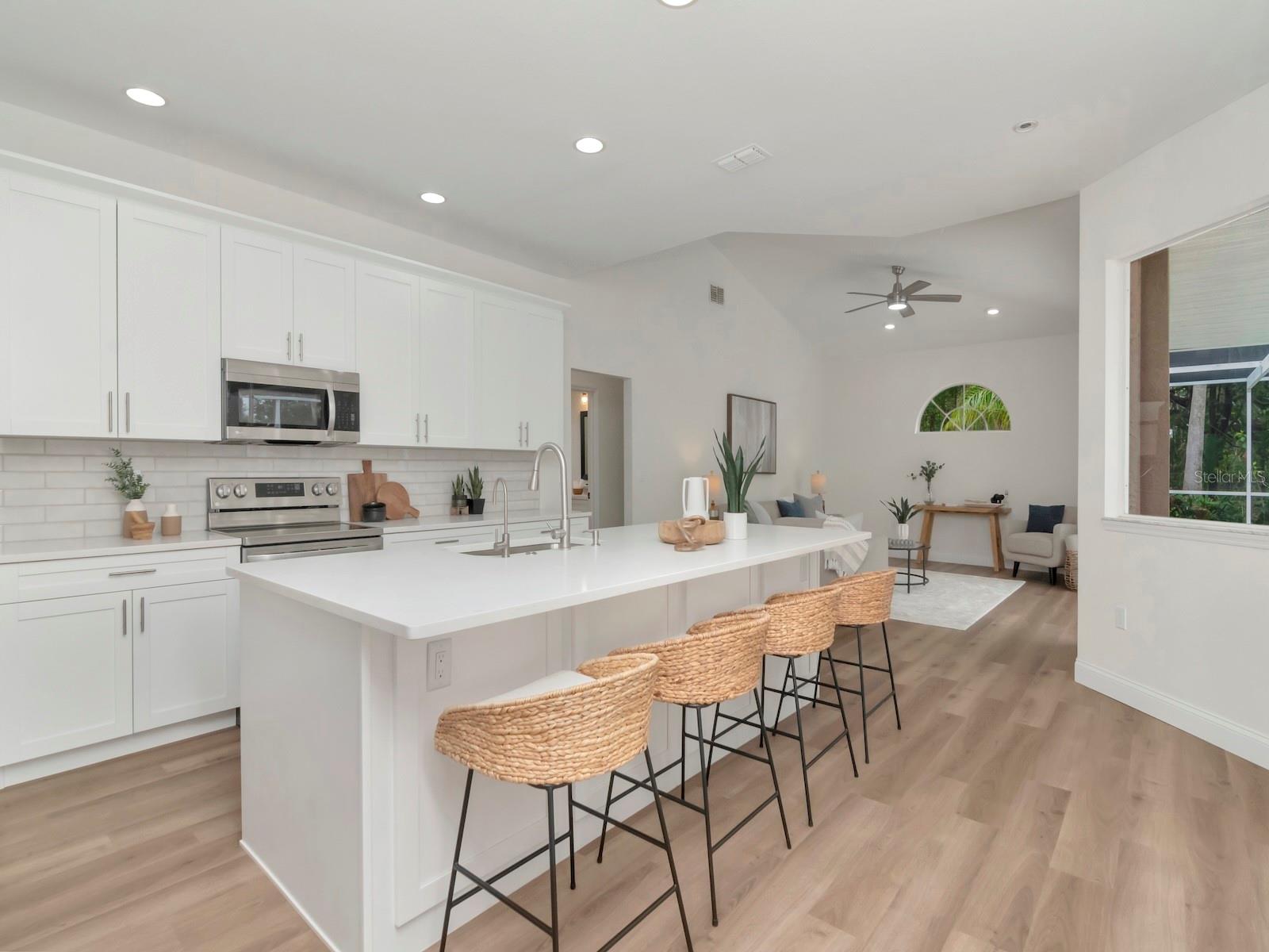 Lar impressionante e totalmente renovado em um lote de conservação de 0,26 acres com vistas tranquilas, sem vizinhos traseiros e uma impressionante elevação de 59 pés, mantendo-a alta, seca e intocada através das tempestades de 2024, segundo o proprietário. No interior, você encontrará acabamentos personalizados e sofisticados raramente vistos a esse preço: uma ilha de quartzo de 15 pés com assentos de bar, armários de agitadores, backsplash de azulejos e tetos abobadados na sala da família que enquadram as vistas serenas do seu lanai, a lagoa e o backyard de oásis de backyard. O layout de quartos divididos oferece uma suíte primária semelhante a um spa com acesso à piscina privada, closet, banheira de banheira dupla, banheira de imersão moderna e um chuveiro de grande porte com vidro sem moldura. Renovado em 2022 com piso LVP, rodapés de 5,25 polegadas, novas portas internas, iluminação elegante, hardware preto fosco e um novo teto. O espaço ao ar livre brilha: a piscina e o spa foram completamente ressurgidos e retilados, com um novo deck de travertino, aquecedor a gás, sistema de água salgada, iluminação LED e paisagismo exuberante com iluminação personalizada (2022-23). As atualizações adicionais de big bicket incluem novo ar condicionado (2023), sistema de água em toda a casa (2022), porta de garagem (2022) e toda a nova esgrima (2025). Baixo HOA e localização ideal perto de Avila, Cheval, Carrollwood Golf & Country Clubs, Gaither HS, St. Joseph's North Hospital e TIA, com fácil acesso a jogos de Bucs, Bolts e Rays no Raymond James, Amalie Arena e Legend's Field.