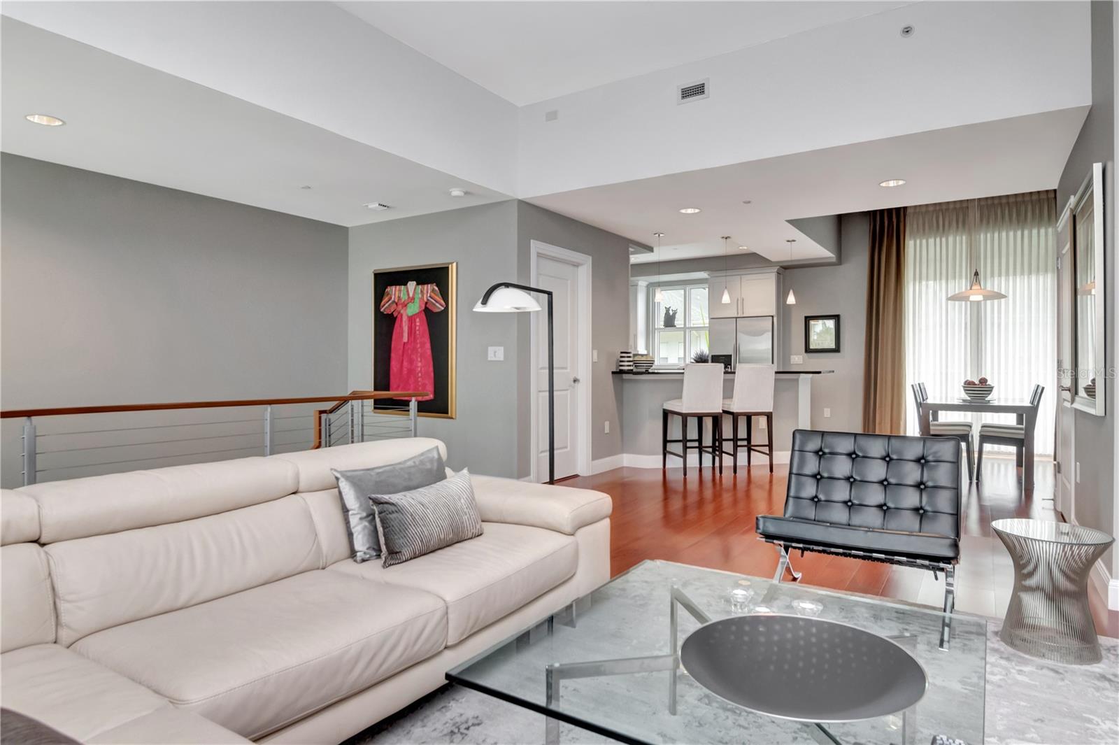 Esta residência urbana de 2/2,5 andares em estilo brownstone está repleta de atualizações, com áreas de estar no nível principal e quartos no nível inferior. A cozinha, aberta para as áreas de jantar e de estar, possui armários de madeira de 42" com detalhe de coroa, eletrodomésticos de aço inoxidável, balcões de granito e balcão para café da manhã. O terraço da cozinha oferece vista para a Water Street! A área de estar é de tamanho generoso, dando acesso à ampla varanda privativa. Há uma parede de porcelanato personalizada de design na área de estar. O nível principal também possui um hall de entrada e toalete dedicados. Há grades personalizadas na escada que transformam completamente o espaço. A luz natural é abundante. do norte e do sul. A suíte dos proprietários inclui um quarto de tamanho generoso com acesso a uma varanda privativa, closet, cortinas blackout, banheiro atualizado com duas pias e chuveiro grande com porta sem moldura. O segundo quarto tem 2 armários (um dos quais é duplo) e um banheiro privativo atualizado (Sherwin Williams Mindful Grey); portas sólidas; tratamentos de janela transmitem; estacionamento acessado a partir do nível inferior - menos de um minuto a pé ou aproveite o serviço de manobrista, cobertura de recepção 24 horas: equipe em tempo integral no local: concierge, gerente de propriedade e assistente de propriedade, engenheiro de construção e seu assistente. centro de bem-estar totalmente equipado, sala de spa com mesa de massagem, sauna, centro de negócios, duas salas de conferências e 4 carregadores de veículos elétricos. Todas as áreas comuns internas e externas passaram por uma reforma recente. O comprador pode fazer uma contribuição única de 0,2% do preço de compra para o centro de Tampa e St. fundo no fechamento. Móveis e acessórios para pátio externo estão disponíveis para compra. Clique no primeiro link do Tour Virtual para um Tour 3D do Matterport.