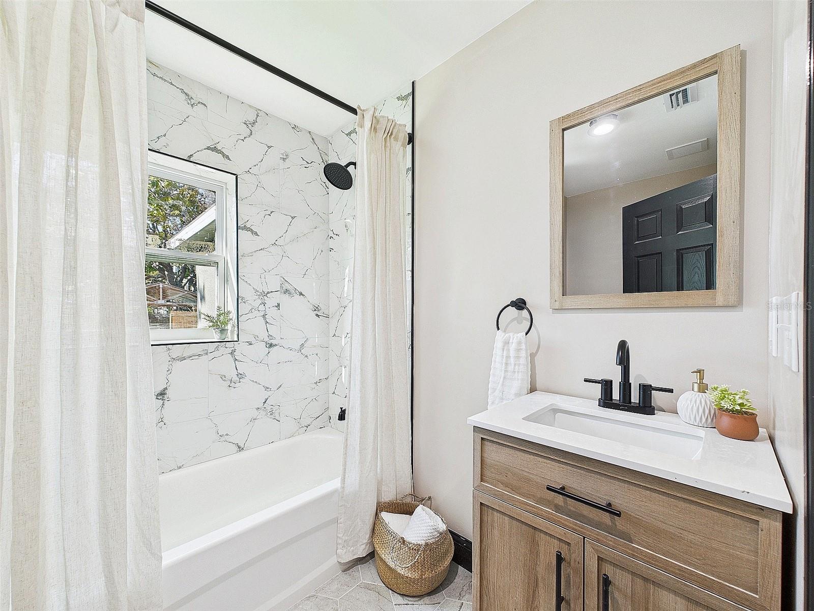 *O vendedor ajudará com os custos de fechamento do comprador!* Procurando uma casa com aquela vibração "Moody"? Este é o único! Esta casa de três quartos e dois banheiros localizada em Southeast Seminole Heights é a mistura perfeita de acabamentos modernos e confortáveis e elegantes em um belo espaço cheio de luz. Esta casa foi completamente reimaginada e possui recursos exclusivos, como um teto de tábua de madeira na cozinha, parede de destaque de pedra pintada e molduras pretas e trabalho de acabamento por toda parte. Na cozinha, você vai adorar como os armários escuros são compensados pelo balcão de quartzo brilhante e backsplash de ladrilhos vibrantes. O pacote de eletrodomésticos inclui um alcance de deslizamento e alcance que é o ponto focal da sala. O espaço oferece muitas opções para a colocação de móveis, com ótimas linhas de visão para a cozinha. Os quartos secundários estão localizados na sala de estar, enquanto o quarto principal é escondido na parte traseira da casa. O quarto principal tem um armário de caminhada que leva ao banheiro privativo e ao armário de lavanderia. Esta propriedade é cercada e oferece acesso à calçada pavimentada pelo beco traseiro. Os proprietários podem optar por estacionar aqui ou até armazenar um pequeno barco ou campista. Com muitas novas casas de construção sendo construídas nas proximidades, esta casa é uma ótima compra. Aproveite essa casa de mudança para casa, localizada a poucos minutos de todos os Seminole Heights e Tampa Bay tem a oferecer.