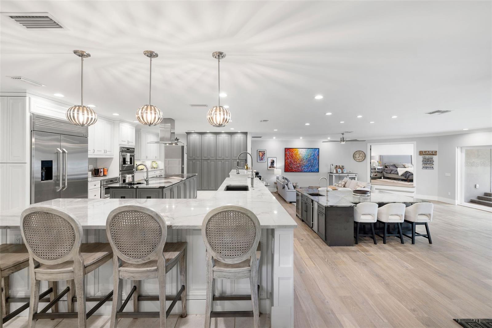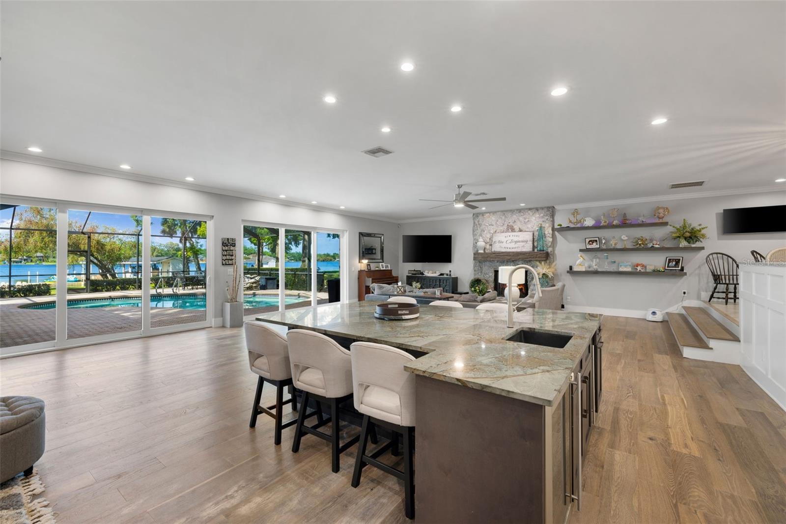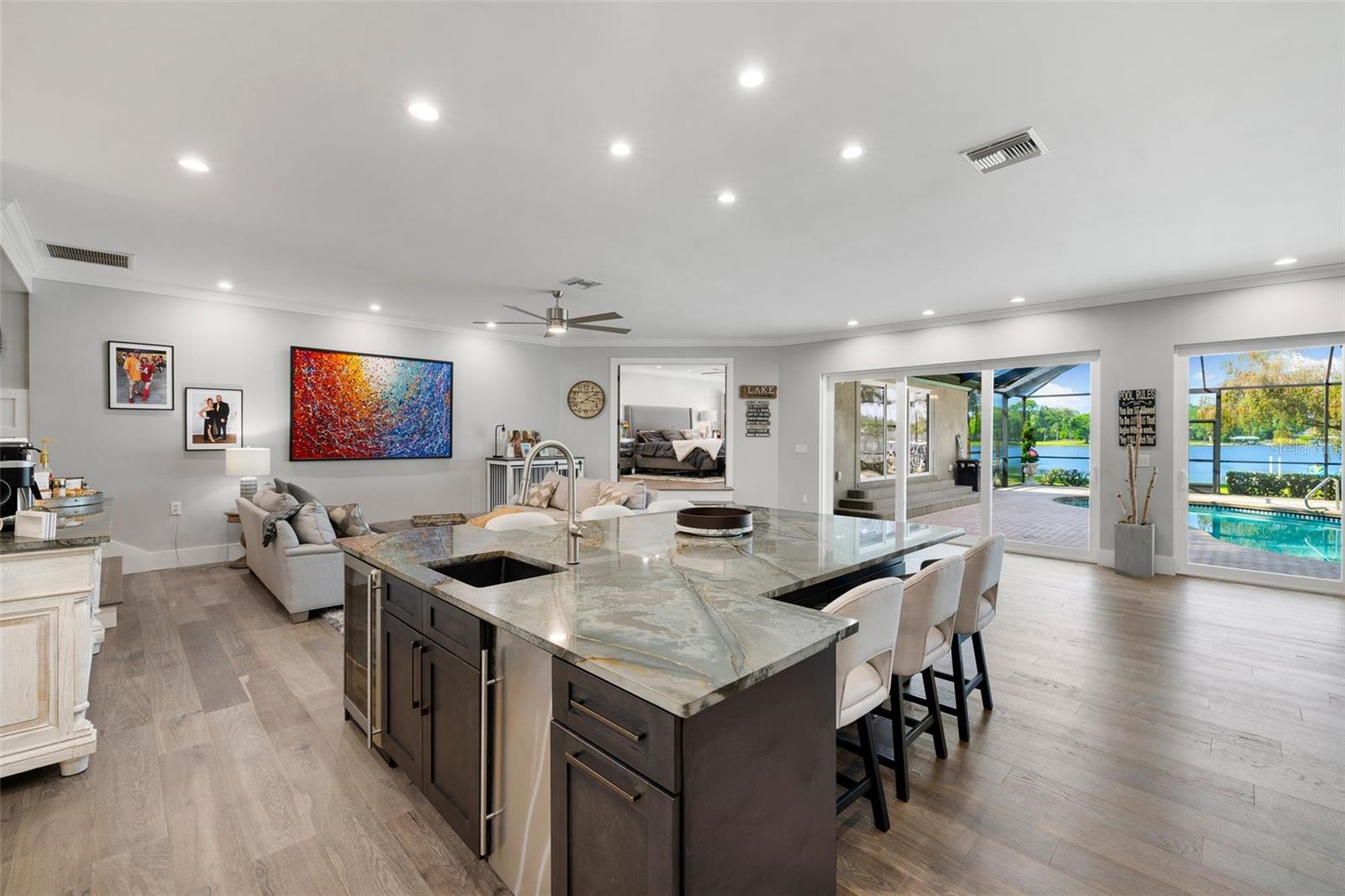 Bem -vindo a uma oferta verdadeiramente rara - uma de apenas 13 casas em White Trout Lake com mais de 1,5 acres de terra e a única atualmente à venda. Privados fechados e situados na zona de inundação X, esta propriedade de 5 quartos e 4,5 banheiros se estende por 1,71 acres com 124 pés de fachada direta no lago de esqui privado de 78 acres. Com apenas 60 casas em White Trout Lake, oportunidades como essa são poucas e distantes - especialmente uma oferecendo esse nível de espaço, privacidade e estilo de vida no coração de Tampa. Este é o momento perfeito para os compradores garantirem uma casa em um lago de esqui particular - bem a tempo do verão na água. Situado profundamente na propriedade atrás de um portão privado e na imponente parede de tijolos, a casa oferece isolamento e paz excepcionais-posicionados perfeitamente na parte de trás do lote de 1,71 acres para maximizar a privacidade e as vistas do lago. A área principal foi aberta dramaticamente-destacada pela remoção de vigas internas e pela instalação de controles deslizantes com classificação de furacões de 8 'que trazem luz natural abundante e emolduram perfeitamente as impressionantes vistas do lago das áreas de cozinha e de estar. A expansiva Ilha da Sala Principal - com encanamento e elétrica - é perfeita para refeições casuais, noites de jogos em família ou se reunir com os hóspedes enquanto desfruta de vistas da piscina e do lago. Os acabamentos interiores incluem pisos de madeira reais e portas de núcleo sólido, juntamente com bancadas de quartzo, luminárias atualizadas e tinta fresca por toda parte. A planta aterradora cuidadosamente projetada apresenta dois quartos de hóspedes com banheiros privativos de suíte-um dos quais funciona como uma verdadeira suíte de sogro com sua própria entrada privada, oferecendo flexibilidade para os convidados multigeracionais ou prolongados. A suíte primária é um verdadeiro retiro-completa com controles deslizantes de bolso que se abrem para a piscina e o lago, um enorme closet com acesso privado a um espaçoso deck elevado, com vista para o quintal e o lago, e um banheiro privativo, semelhante a um spa, com um grande chuveiro. A experiência de vida ao ar livre é inigualável, apresentando uma quadra de tênis/pickleball privada com iluminação de estádios, uma piscina e uma doca equipada com um elevador de barco coberto de 8.500 lb e uma doca de jato flutuante. A casa também possui uma conexão RV de 50 A, proporcionando uma flexibilidade adicional para hospedar hóspedes ou acomodar planos de viagem estendidos. Destaques adicionais incluem uma sala de jantar formal, áreas de estar de conceito aberto, uma garagem de 2 carros e espaço de armazenamento excepcional, dentro e no sótão. Com mais de US $ 575.000 em melhorias recentes, esta propriedade única à beira do lago oferece a rara oportunidade de desfrutar de espaço, privacidade e estilo de vida.