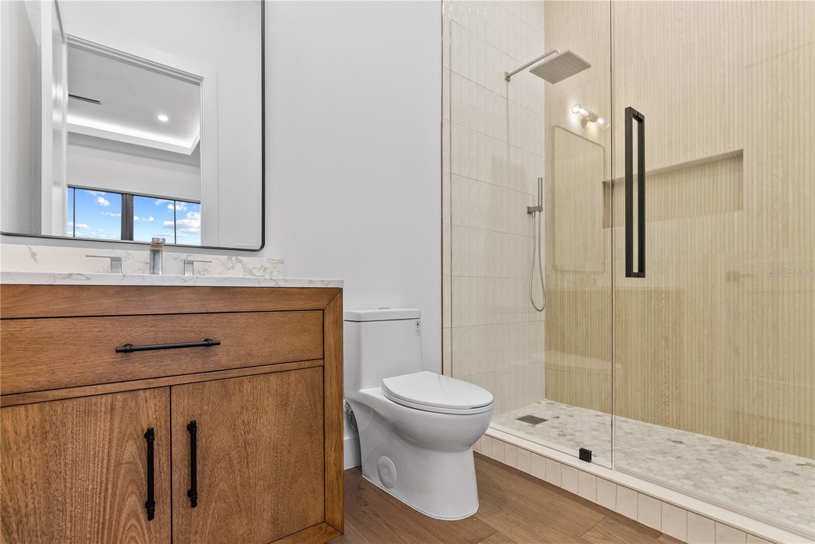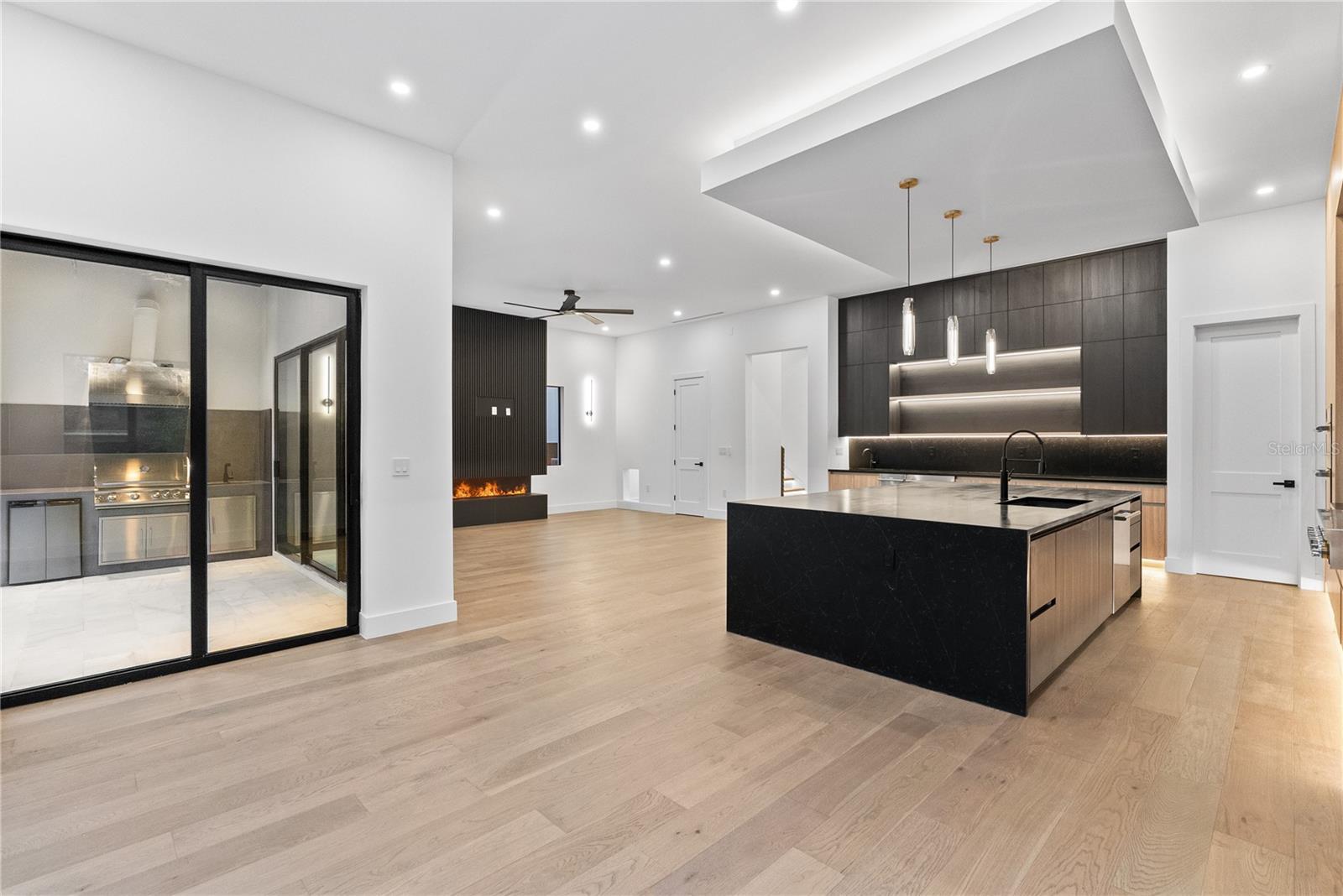 Nova construção sofisticada no centro da cidade Esta nova casa de 5 quartos e 5,5 banheiros abrange 3.420 pés quadrados de área elevada, habilmente trabalhada com acabamentos luxuosos e funcionalidade cuidadosa por toda parte - e o melhor de tudo, não localizada em uma zona de inundação. No interior, paredes lisas de nível 4 e pisos de madeira de carvalho criam um cenário refinado e minimalista. A grande sala de conceito aberto possui uma lareira elegante, ladeada por arandelas de design e banhada por luz natural. A cozinha do chef impressiona com painéis pretos canelados na ilha, armários personalizados de carvalho branco e preto e iluminação pendente impressionante - tudo perfeitamente conectado ao bar e à despensa para entretenimento sem esforço. Suba as escadas para a suíte principal do segundo andar, onde a serenidade de um spa o aguarda com uma banheira independente, chuveiros duplos, um lustre sobre a banheira e um layout de penteadeira de carvalho branco acentuado por ousados encanamentos pretos. Cada detalhe foi considerado - desde uma elegante lavanderia dupla até iluminação selecionada, incluindo um lustre moderno na escada, louças sanitárias douradas e arandelas em camadas nos corredores. A casa também oferece acesso à varanda e ao pátio, confundindo as linhas internas e externas. Saia para o seu oásis particular: uma elegante piscina e spa cercado por uma paisagem exuberante e iluminação externa cuidadosa. Esteja você relaxando com a família ou recebendo convidados, esta casa oferece estilo de vida e luxo.