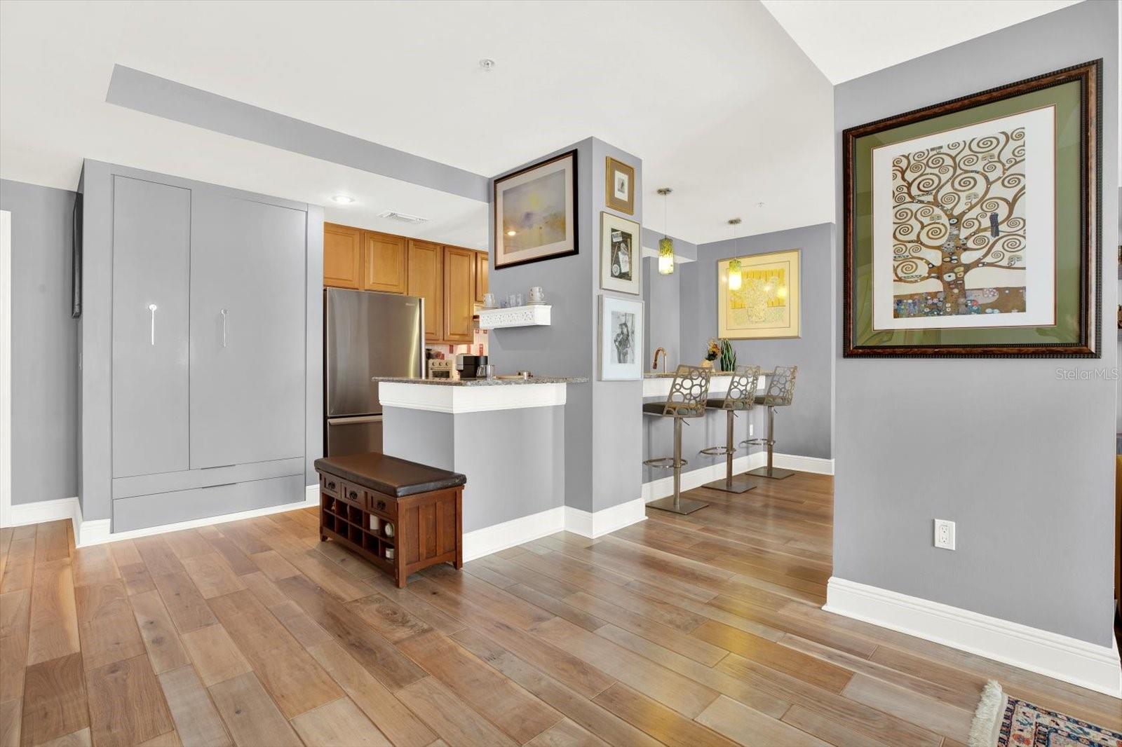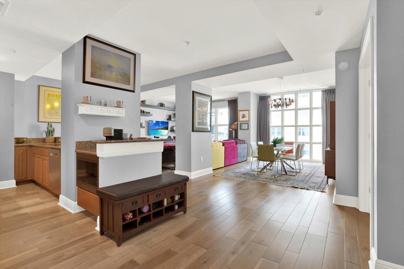 Viva Elevado no Coração do Channelside! Isto é mais do que uma casa, é uma atualização de estilo de vida esperando por você em um dos bairros mais movimentados e emocionantes de Tampa. Oferecido por um vendedor motivado, este Residence D de 2 quartos e 2 banheiros lindamente selecionado nos prestigiosos Condomínios Ventana apresenta uma rara oportunidade de entrar em estilo de resort com design refinado e acesso imbatível ao melhor do centro da cidade. A partir do momento em que você entra, você será recebido por piso de madeira projetado, armários embutidos personalizados e um layout de conceito aberto cheio de luz que flui facilmente para um espaçoso pátio privado com vista para a piscina cintilante e um exuberante centro de comodidades perfeito para café da manhã ou vinho à noite. A cozinha gourmet possui eletrodomésticos de aço inoxidável KitchenAid, armários abundantes e uma despensa elegante e personalizada que combina estilo e armazenamento inteligente. O layout dos quartos divididos oferece o máximo de privacidade e flexibilidade, com a suíte principal apresentando um banheiro inspirado em spa e closet com design profissional. Esteja você procurando um retiro pessoal sereno ou um espaço elegante para entretenimento, esta casa atende em todos os níveis. Para maior comodidade, um pacote de móveis opcional está disponível separadamente, ideal para quem procura uma segunda casa pronta para uso ou uma experiência de mudança sem complicações. Ventana oferece comodidades de luxo, incluindo acesso fechado, segurança 24 horas por dia, 7 dias por semana, piscina estilo resort, academia, sauna e terrenos impecavelmente mantidos. Saia e você estará a poucos minutos de Water Street, Sparkman Wharf, Amalie Arena, Tampa Riverwalk, restaurantes sofisticados, boutiques de fitness e cuidados de saúde de classe mundial. Esta é a vida do Channelside no seu melhor. Agende seu tour privado hoje e descubra por que a Residência #702 em Ventana continua atraindo compradores locais, de fora do estado e internacionais.