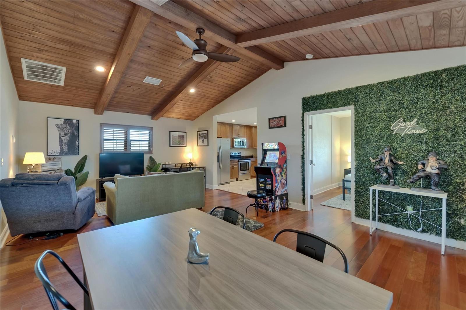 Pare com essa propriedade verdadeiramente única do Golf Access em Tampa Bay! Ao chegar pela primeira vez nesta luxuosa casa, você notará o ambiente tranquilo em uma ótima localização central e também em uma rua sem saída. As possibilidades são infinitas com os principais recursos de oferta da casa de palafitas apenas vistos em uma casa mais nova, pois essa casa elevada foi construída em 2018. Fora da porta da frente é um enorme pátio coberto e coberto para relaxar com uma banheira de hidromassagem privada para desfrutar daquelas belas noites de verão com vista para a água. A atenção aos detalhes interna não pode ser negligenciada dos tetos de madeira abobadados, acabamentos de ponta ou spa como o banheiro que até apresenta um mictório. Atualmente, o segundo quarto é usado como um quarto pequeno, mas também pode ser usado como um escritório com vistas à beira -mar. Uma das melhores características desta propriedade é o fato de que existe um apartamento de estúdio de 400 pés quadrados que pode ser usado para uma suíte em direito ou até mesmo colocar no Airbnb para obter renda adicional ou possivelmente o suficiente para cobrir a hipoteca com um aluguel de curto prazo! Até o estúdio foi atualizado recentemente com novos armários Shaker, bancadas de granito, além do sistema HVAC de mini divisão atualizado e eficiente. Fora deste apartamento isolado, há outro grande deck para desfrutar que olha diretamente no canal para uma grande oportunidade de ver os golfinhos, peixes -boi e outros animais selvagens que passaram. Este não vai durar muito, então agende sua exibição enquanto estiver disponível!