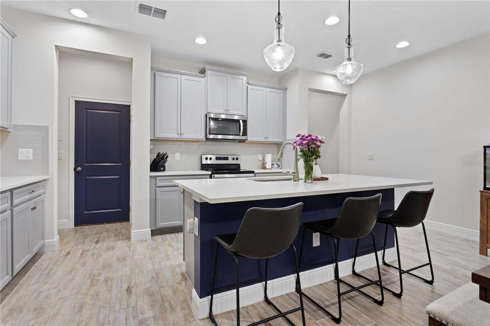 Valor incrível! Vista para o lago premium e beco sem saída! Construído em 2020 por Mattamy Homes, os Townhomes em Lakeview em Citrus Park raramente entram no mercado! Lindamente mantido e idealmente posicionado na parte de trás de um condomínio fechado, esta casa de 3bd/2.5ba oferece uma rara combinação de privacidade, design moderno e vista pacífica do lago - sem vizinhos diretamente na frente ou atrás! O exterior do país francês possui um palato de cor quente, detalhes em pedra, porta frontal de 8 pés e persianas decorativas. A garagem estendida permite uma manobra fácil para famílias de 2 carros. A popular planta de Ormond oferece 1961 Sqft, 3 quartos espaçosos, vida conceitual aberta, armários em todos os quartos e um bônus no andar de cima! O 1º andar apresenta ladrilhos de madeira atualizados e um layout aberto cuidadosamente projetado, perfeito para a vida e o entretenimento cotidianos. A cozinha é estilizada com armários superiores de cinza macio, 42 "com moldagem por coroa, bancadas de quartzo, assentos de bancada na ilha, uma pia de montagem de uma tutana, utensílios de aço inoxidável, incluindo uma lavadora de louça, que está de acordo com a lava-louças, a conduta de tocam na pista de tocam a entrada da pista de entrada da escada. A área apresenta uma luminária de designer e muito espaço para uma mesa grande. Suba as escadas e descubra o loft de tamanho generoso, que funciona perfeitamente como um escritório em casa, sala de mídia ou sala de jogos. A suíte primária está localizada na parte de trás do Townhome e inclui um banho semelhante ao spa com pias duplas, bancadas de quartzo, toneladas de armazenamento de gabinete, chuveiro de tampa, armário de linho, pequeno armário secundário e um enorme armário! Se o espaço do armário é uma prioridade ... esta é a casa para você! Os quartos 2 e 3 estão situados na frente da casa e também possuem armários. O 2º banho bem equipado possui uma bancada de quartzo, gabinete atualizado e uma combinação de banheira/chuveiro. O armário de lavanderia está convenientemente localizado no 2º andar e a lavadora e secadora ficará com a casa. A garagem de 1 carro é grande o suficiente para o seu carro e algum armazenamento, além de ser pré-conectado para carregamento de EV ou Tesla! Este bairro fechado fica fora da via expressa dos veteranos, oferecendo acesso rápido ao Westshore Business District, Aeroporto Internacional de Tampa e ao centro de Tampa, tornando -o um ajuste perfeito para passageiros e viajantes. Zona de inundação X e dividida para escolas de primeira classificação! O HOA inclui seguro de construção, água, reservas, manutenção de terrenos, playground, trilhas para caminhada e um cais para acessar o lago Gant para caiaque, pesca e paddlebaording! Desfrute de um custo mais baixo, com uma casa mais recente com eficiência energética, além de nenhum CDD!