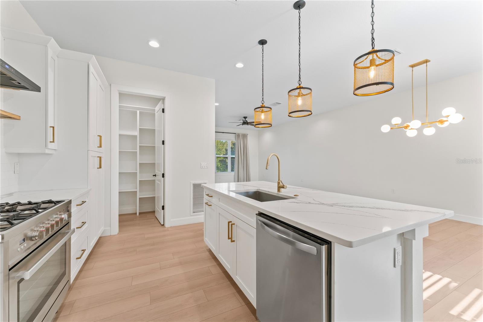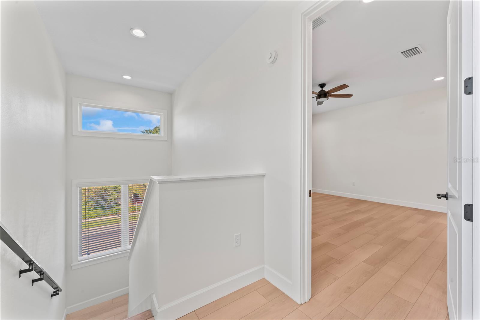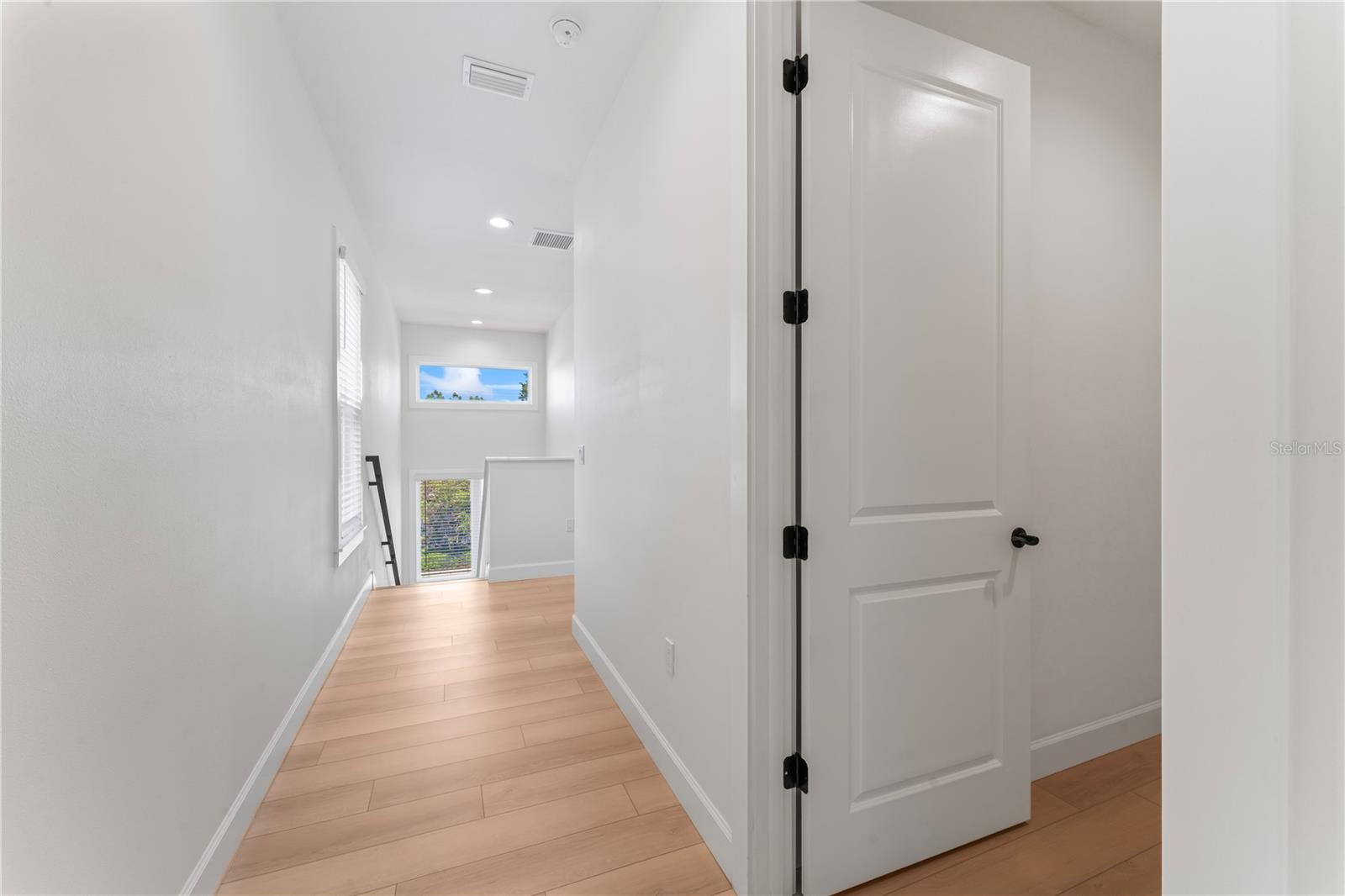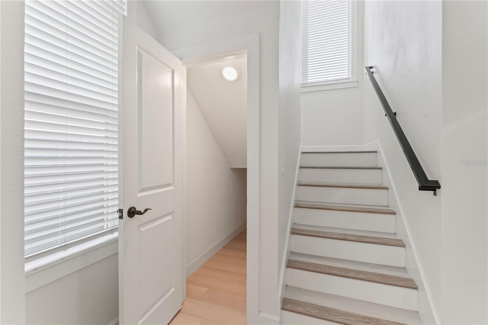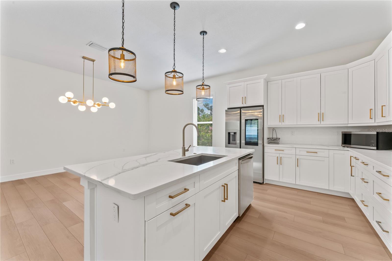 Venha ver esta unidade final privada disponível para ocupação imediata. On the first floor you will find the oversized 19x23 garage and a first-floor bedroom suite that could also serve as a home office if you wish. O segundo andar é aberto e espaçoso, combinando as áreas de estar/jantar e cozinha e o terceiro andar contém o quarto mestre e hóspedes e uma lavanderia de bom tamanho. This end unit is flooded with natural light because of the additional exterior windows. Recursos adicionais incluem câmeras de segurança com fio, tetos de madeira manchados na entrada e varanda coberta e piso de tábua de vinil de luxo por toda parte. Todos os quartos têm banheiros privativos, armários e belas cortinas de linho neutro. Existem tetos de 9 pés, muito armazenamento sob a construção de escadas e blocos construídos com janelas e portas com classificação de furacões (de acordo com o desenvolvedor). Os espaços ao ar livre, incluindo um pátio de tamanho agradável, localizado na entrada da frente e uma espaçosa varanda coberta no andar de cima com piso de ladrilho que estende o comprimento do espaço. A alegre cozinha branca tem um fogão a gás de 36 ", exaustor, aparelhos de aço inoxidável, carrocerias de preenchimento de panela e calacatta.