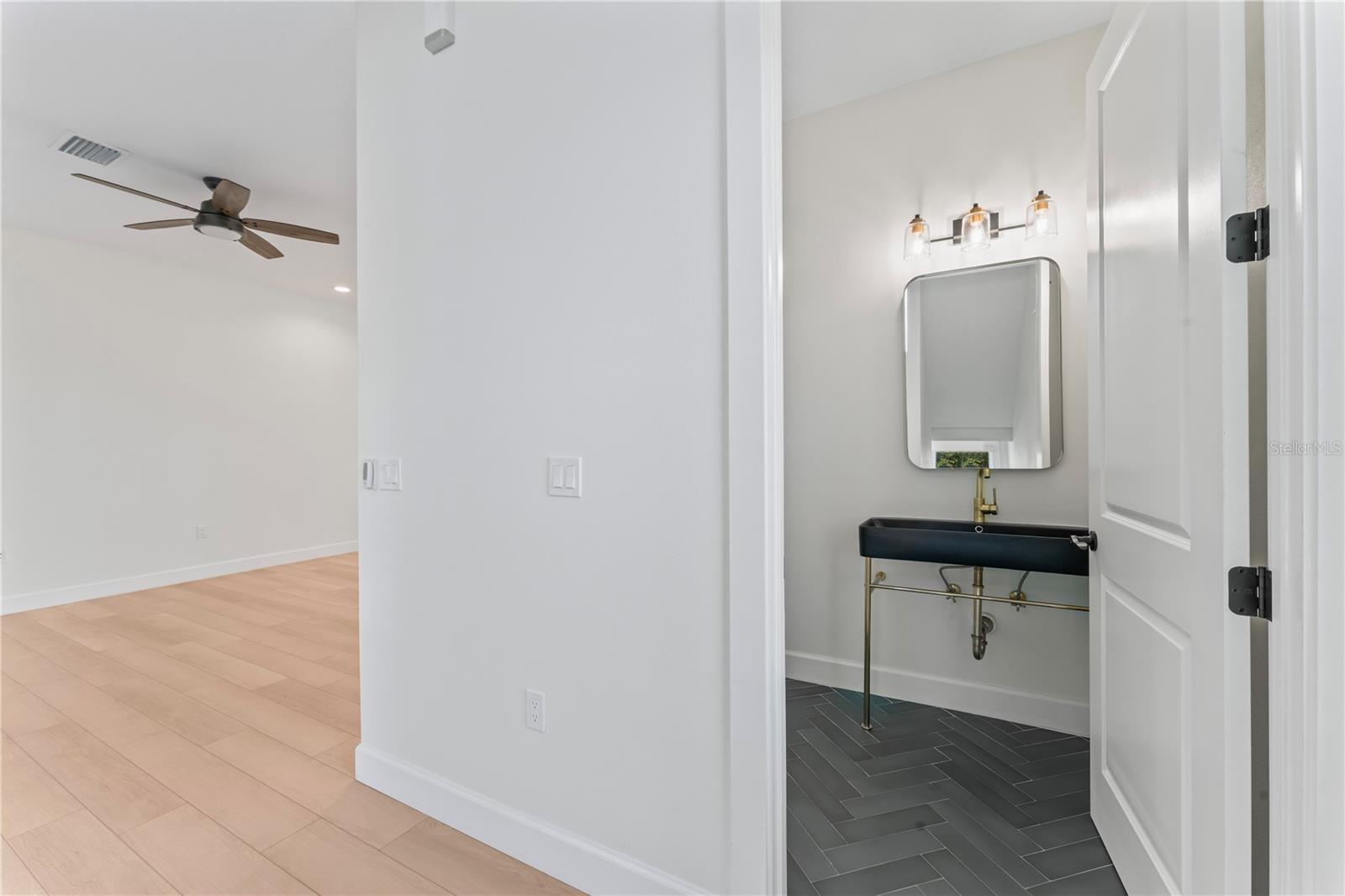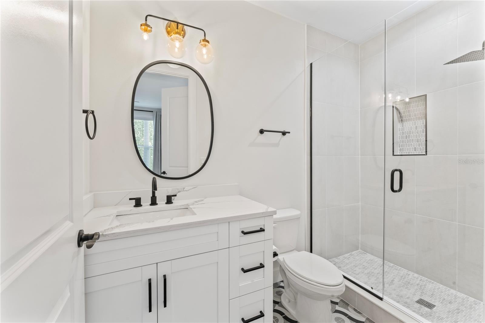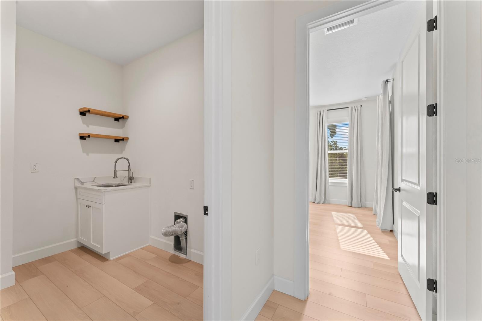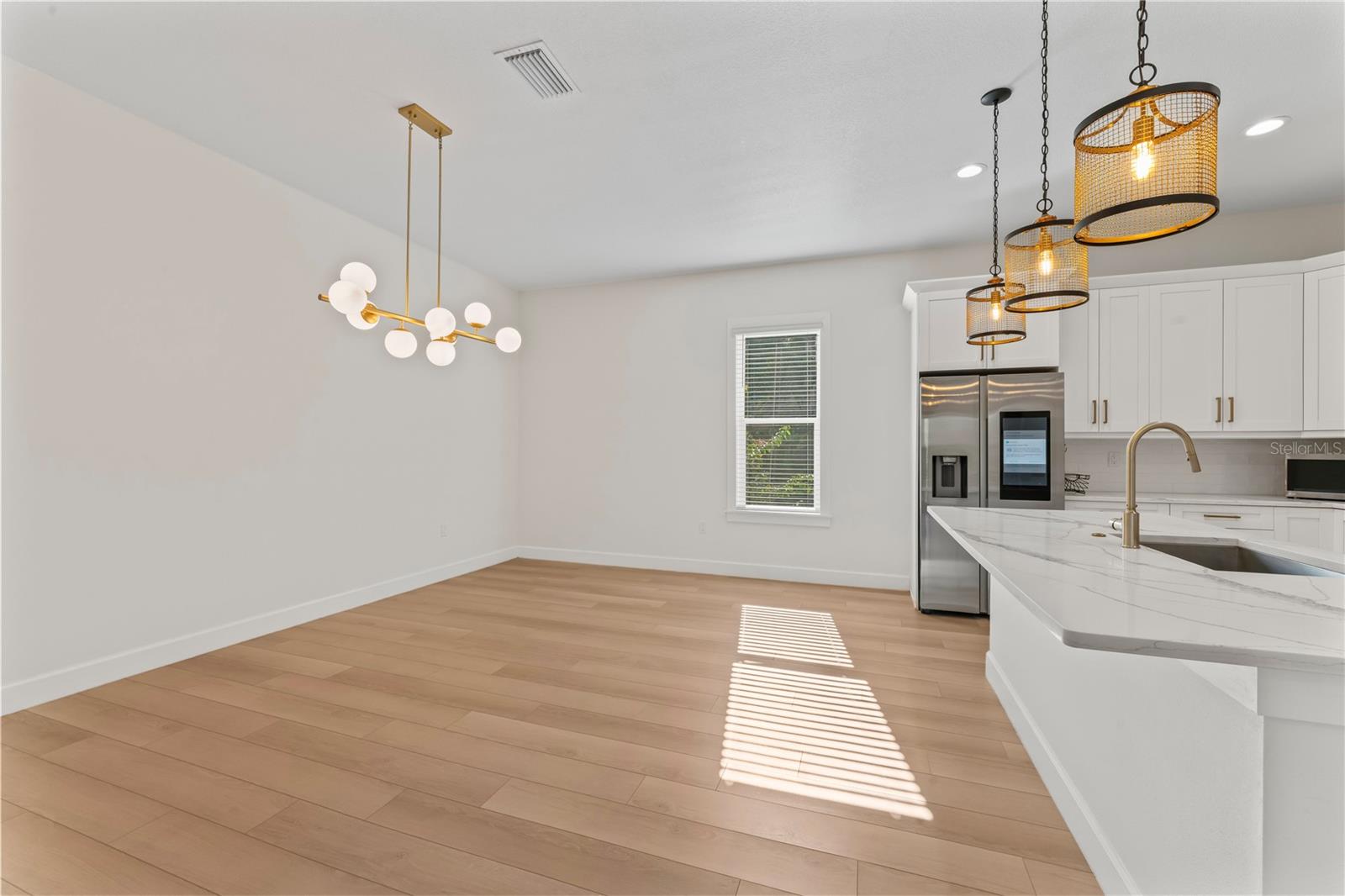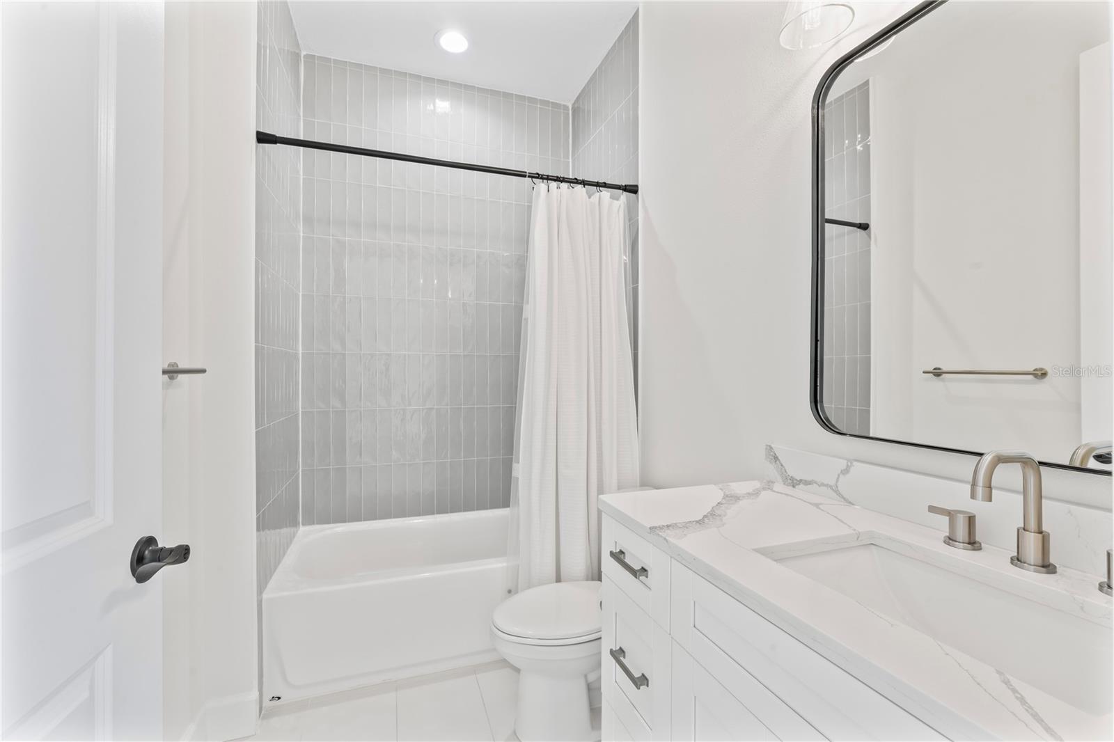 Venha ver esta unidade final privada disponível para ocupação imediata. On the first floor you will find the oversized 19x23 garage and a first-floor bedroom suite that could also serve as a home office if you wish. O segundo andar é aberto e espaçoso, combinando as áreas de estar/jantar e cozinha e o terceiro andar contém o quarto mestre e hóspedes e uma lavanderia de bom tamanho. This end unit is flooded with natural light because of the additional exterior windows. Recursos adicionais incluem câmeras de segurança com fio, tetos de madeira manchados na entrada e varanda coberta e piso de tábua de vinil de luxo por toda parte. Todos os quartos têm banheiros privativos, armários e belas cortinas de linho neutro. Existem tetos de 9 pés, muito armazenamento sob a construção de escadas e blocos construídos com janelas e portas com classificação de furacões (de acordo com o desenvolvedor). Os espaços ao ar livre, incluindo um pátio de tamanho agradável, localizado na entrada da frente e uma espaçosa varanda coberta no andar de cima com piso de ladrilho que estende o comprimento do espaço. A alegre cozinha branca tem um fogão a gás de 36 ", exaustor, aparelhos de aço inoxidável, carrocerias de preenchimento de panela e calacatta.