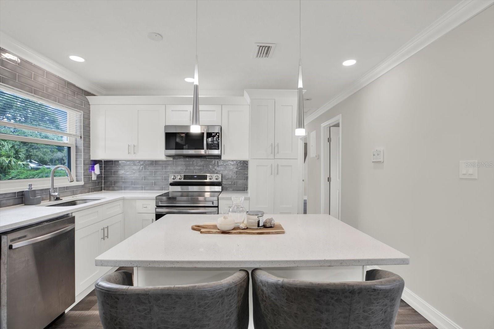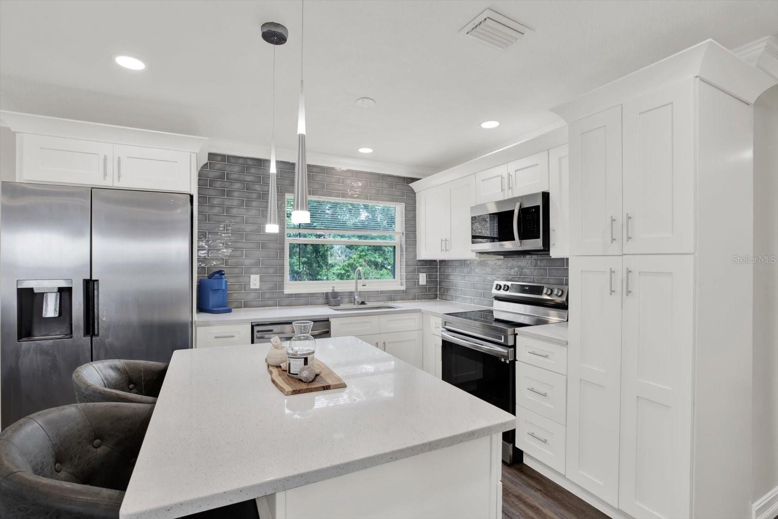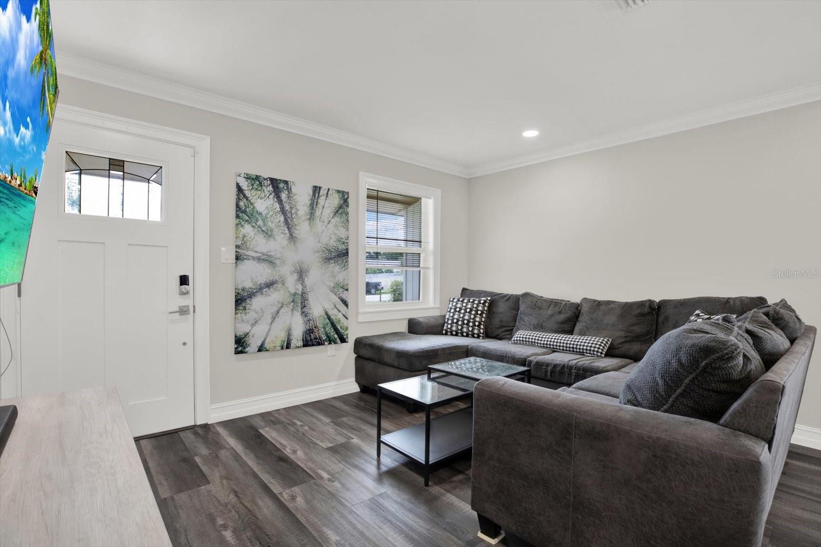 Incentivo preferido do credor! Use para comprar sua taxa, fechando custos ou pré-pagos. Esta casa lindamente atualizada de 3 quartos e 2 banheiros fica em um lote de canto de grandes dimensões. No interior, desfrute de um piso plano aberto com piso de vinil durável, cozinha de um chef moderno e área de jantar. À esquerda, há um espaço de estar separado que oferece ótima luz natural, acesso a garagem e uma lavanderia de grandes dimensões com amplo armazenamento e balcão. Do outro lado da casa estão seus dois quartos adicionais, um banho de hóspedes completo e uma suíte primária privada com banheiro da suíte. Do lado de fora, o pátio totalmente cercado possui dois galpões de armazenamento e uma árvore de abacate madura. Com um telhado de metal, atualizações recentes e nenhuma designação de zona de inundação, esta casa oferece uma mudança fácil e uma tranqüilidade.