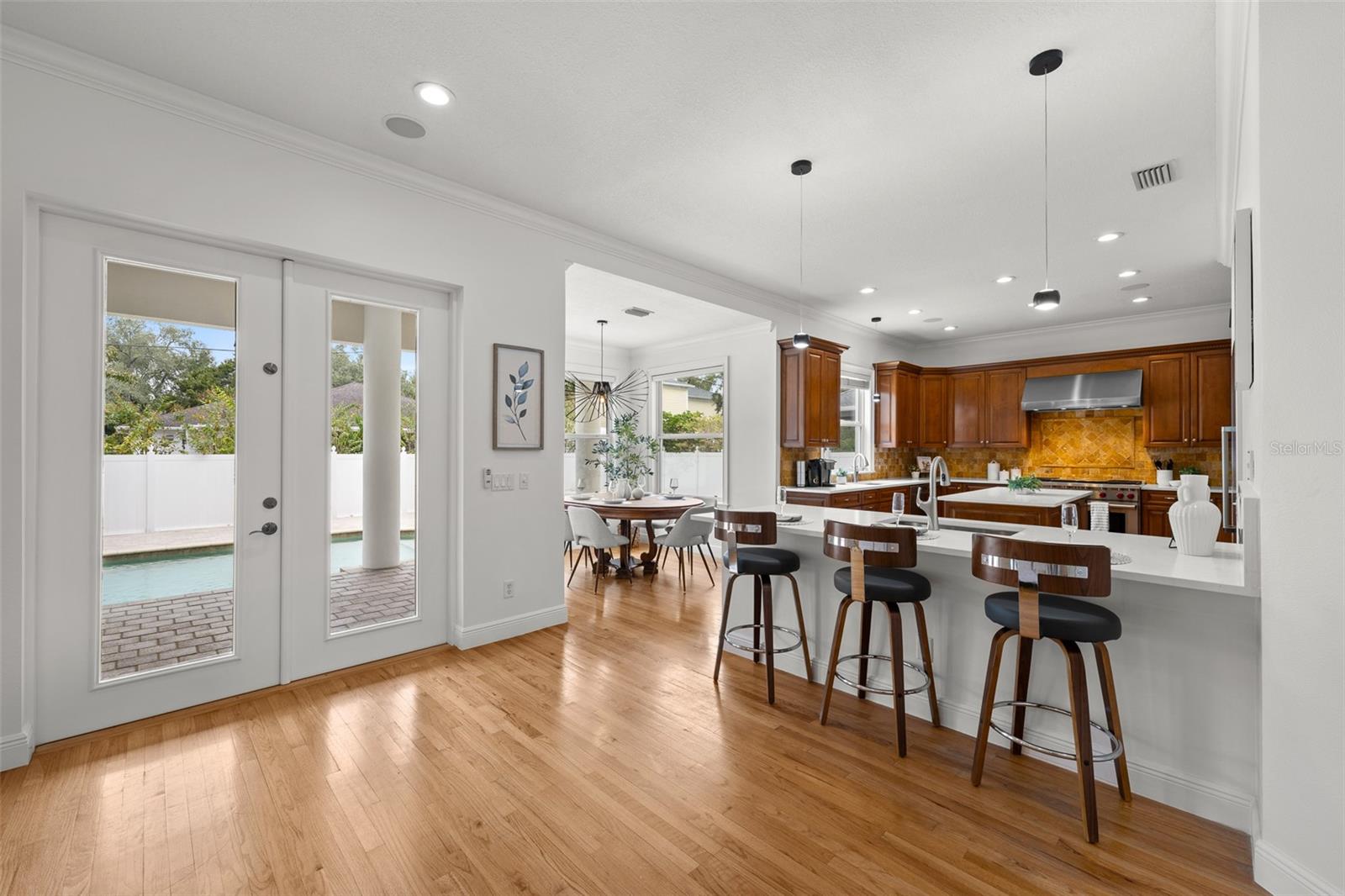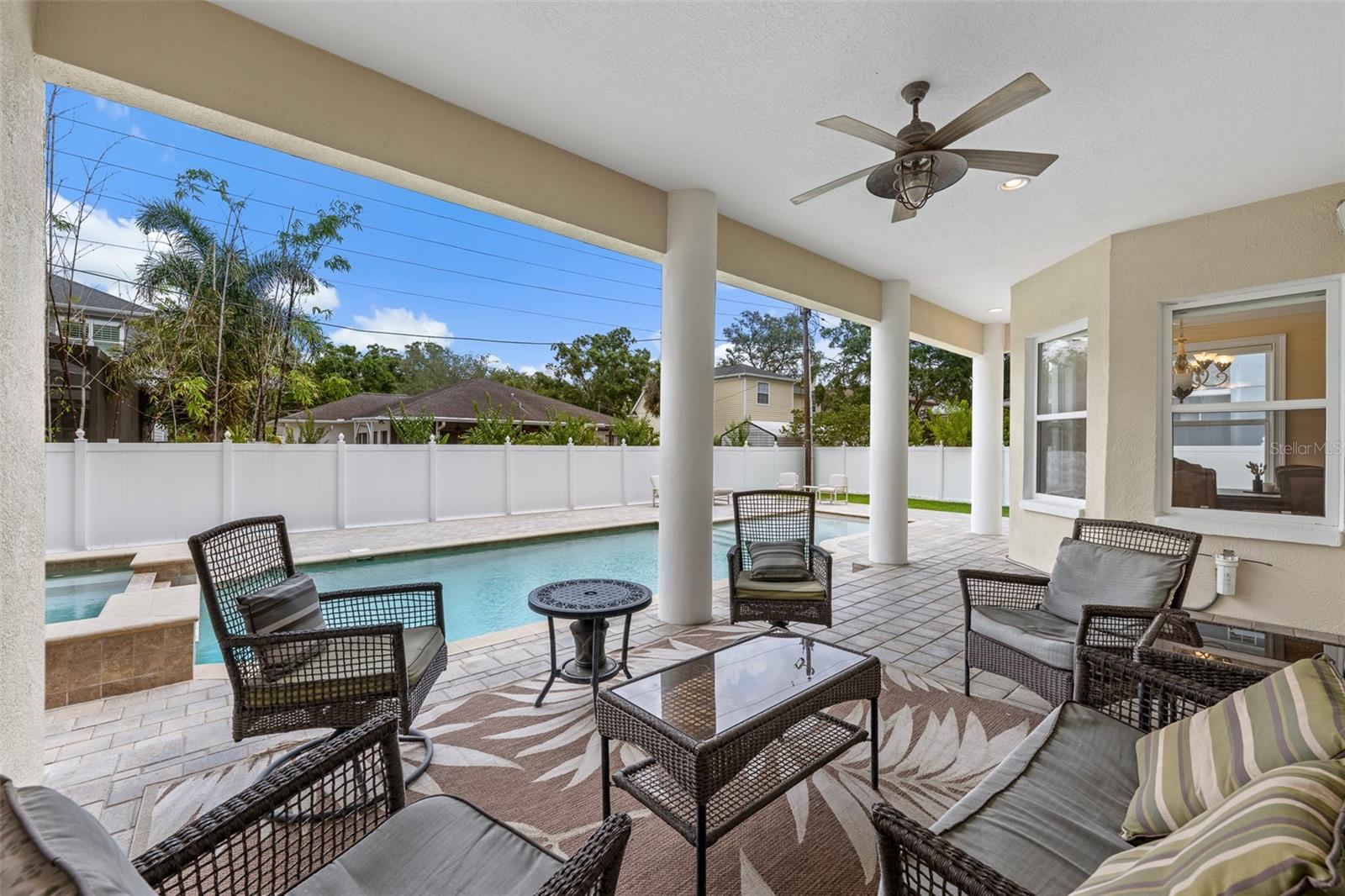 Esta elegante residência de 5 quartos e 4,5 banheiros no exclusivo Sunset Park de South Tampa oferece atualizações significativas que incluem um telhado 2018 e dutos de ar HVAC 2025, tinta fresca, novas bancadas, novos acessórios, novas arandelas e muito mais, garantindo conforto moderno e paz de espírito. Ao entrar, uma entrada de dois andares emoldurada por pilares revela um grande hall de entrada com tetos de 22 pés, um lustre motorizado de 30 luzes e uma janela em arco. A cozinha gourmet, totalmente customizada em 2016, é equipada com fogão a gás Wolf de 1,2 m, geladeira Thermador, ilha de granito e copa com janela, luz natural abundante e vista para a piscina. Um bar molhado, completo com adega refrigerada e sistema R/O, complementa a sofisticada sala de estar, que possui portas francesas que se abrem para a varanda. A sala de jantar formal é decorada com sancas e alto-falantes embutidos, enquanto a sala familiar oferece lareira a gás, tetos de catedral e uma grande janela em arco. As comodidades ao ar livre incluem uma varanda coberta com iluminação embutida e ventilador de teto, que leva à piscina de água salgada com borda de bronzeamento com entrada zero e banheira de hidromassagem elevada. A ampla suíte principal possui entrada com porta dupla, tetos inclinados, janelas de popa e um grande closet com embutidos ajustáveis. Seu banheiro privativo inclui banheira de imersão de hidromassagem, box amplo de vidro e pia dupla de granito com amplo armazenamento. Dois quartos de hóspedes compartilham um banheiro Jack e Jill, e um quarto quarto de hóspedes inclui um armário embutido e uma grande janela. A sala de mídia, acessível por porta dupla, possui bar molhado em granito, proporcionando um espaço ideal para entretenimento. Uma lavanderia no andar de cima com pia aumenta a conveniência. Outras características notáveis incluem pisos de madeira, sancas, cercas de vinil branco com portões duplos, sistema HVAC de três zonas e dois aquecedores de água a gás. Localizada em uma rua tranquila e sofisticada no desejável distrito de Plant High School, esta casa oferece acesso conveniente a parques, lojas, restaurantes, comodidades comunitárias e principais rotas de transporte. Convidamos você a agendar uma exibição privada para conhecer esta propriedade excepcional.