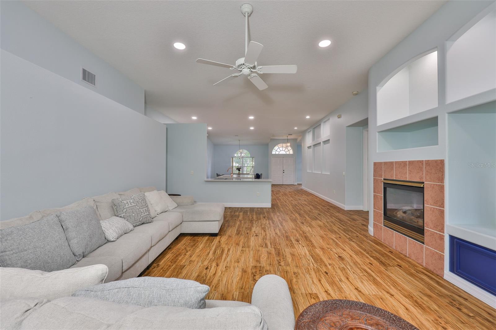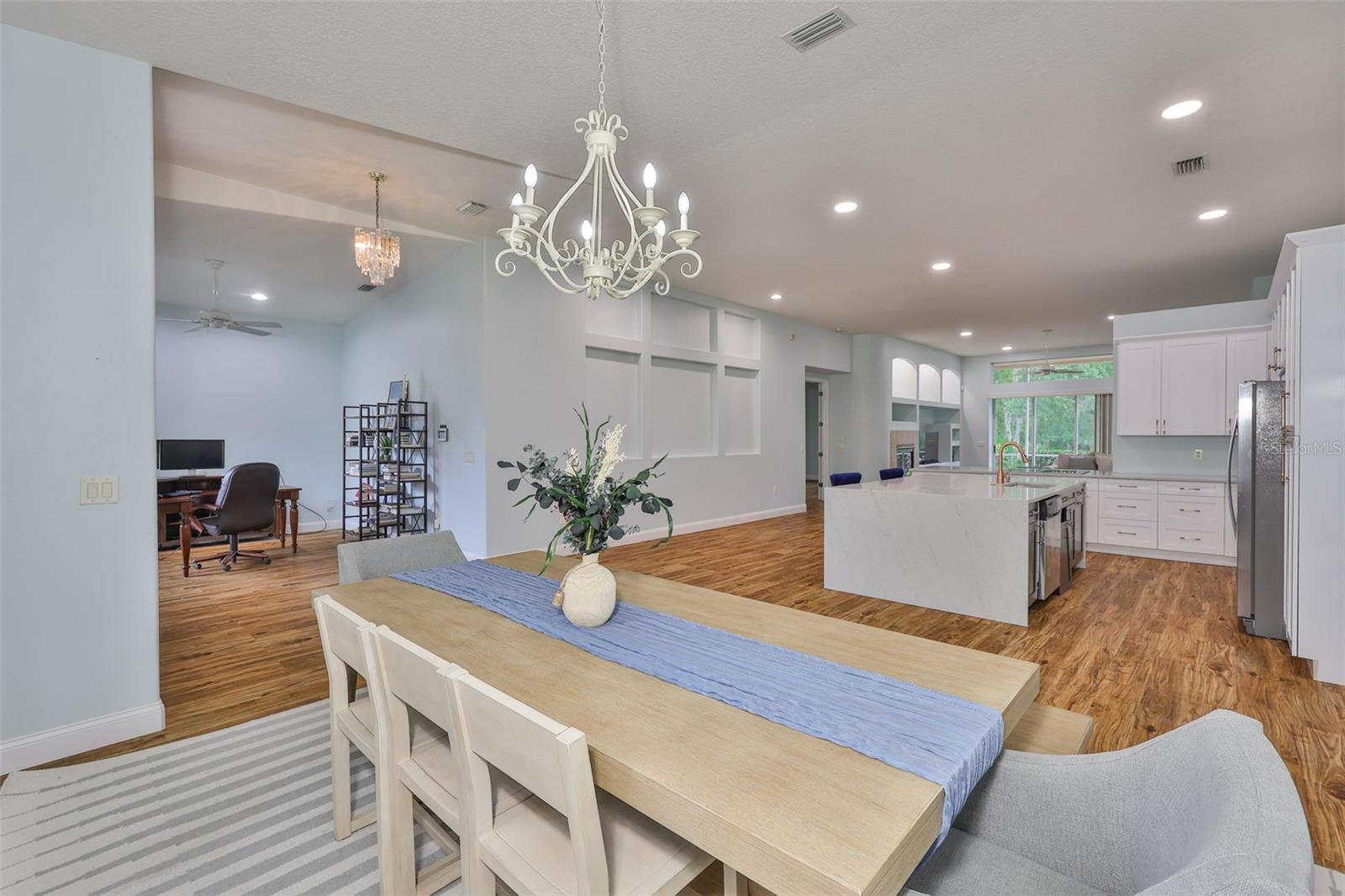 Lindamente atualizado de 3 quartos + escritório, 2 banheiros com uma garagem de 3 carros no condomínio fechado de Covington Estates, com preço de venda. Este layout de um andar aberto e de conceito aberto apresenta tetos altos, uma sala de jantar formal e uma cozinha totalmente renovada com uma ilha de quartzo em cascata, utensílios de aço inoxidável, armários modernos e bar de café da manhã, perfeitos para entretenimento ou vida cotidiana. A espaçosa sala de estar inclui embutidos personalizados, uma lareira a gás e nichos de arte para adicionar charme. Todos os quartos são grandes e incluem grandes armários. O Escritório/Den privado oferece a configuração ideal de trabalho ou espaço flexível. A suíte do proprietário apresenta closetes duplos, vaidades duplas, uma banheira de imersão e um chuveiro separado. Desfrute de uma vida ao ar livre na Lanai, com vista para um quintal de grandes dimensões, com paisagismo exuberante, um refúgio tranquilo no estilo de jardim com muito espaço para adicionar uma piscina ou cozinha ao ar livre. Localizado em frente à Pride Elementary e perto do Benito Middle, da New Tampa Library, das trilhas Flatwoods, das lojas do WilBrass, Tampa Premium Outlets e I-75 para facilitar o deslocamento.