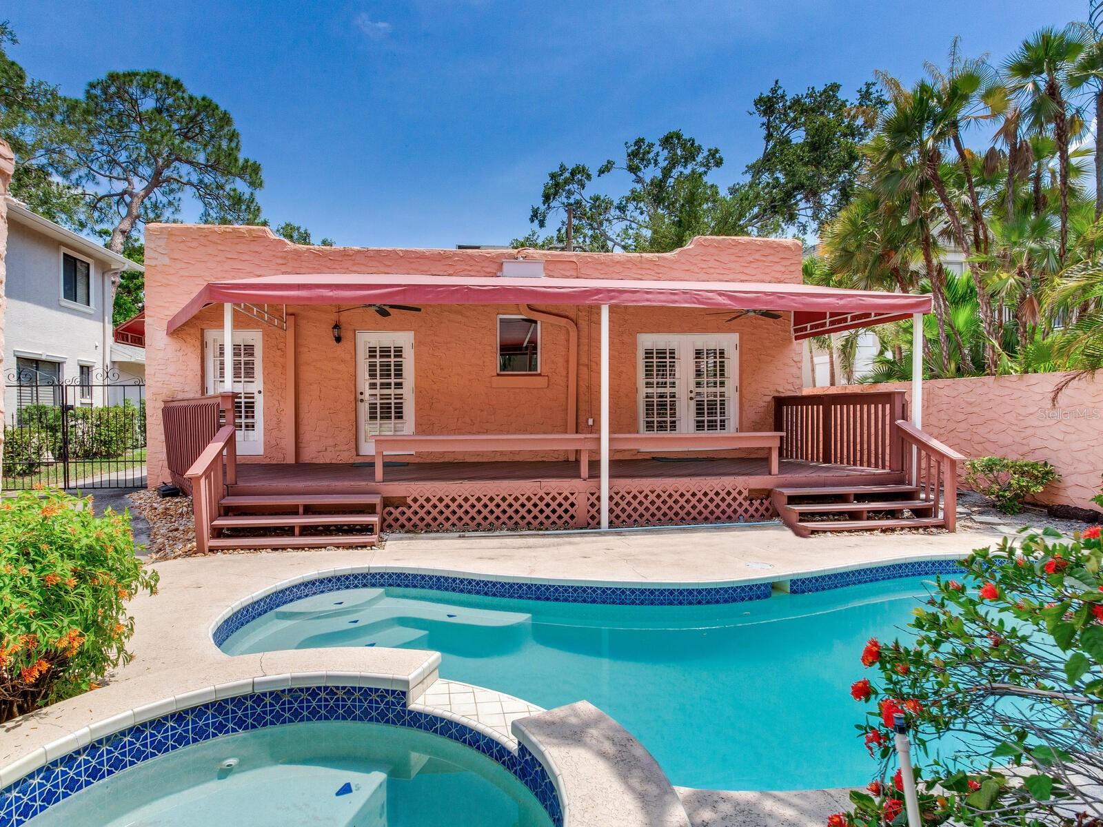 Um encantador exclusivo clássico que possui muitos dos recursos originais com ótimas atualizações. Localizado na praia Estacione em uma seção da Azeele Street que não tem muito tráfego. Entre na sala de estar e fique impressionado pelo Lareira original e as janelas de vidro com chumbo manchado. Sala de jantar, cozinha e todos os quartos têm persianas de plantações. Desfrute de sentar na varanda coberta de trás de olho na piscina. As portas francesas lideram Para o exterior, na sala de estar e no quarto principal. O lar não foi impactado pelo furacões. Todas as janelas têm persianas de furacões que podem ser aplicadas.