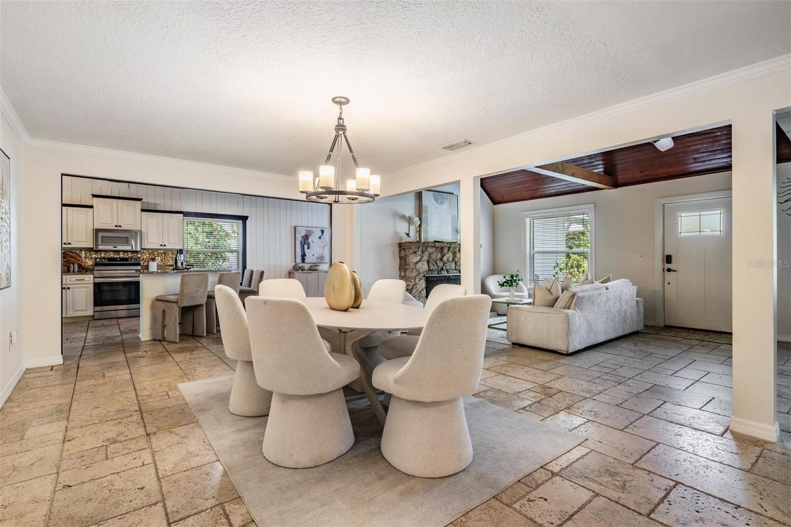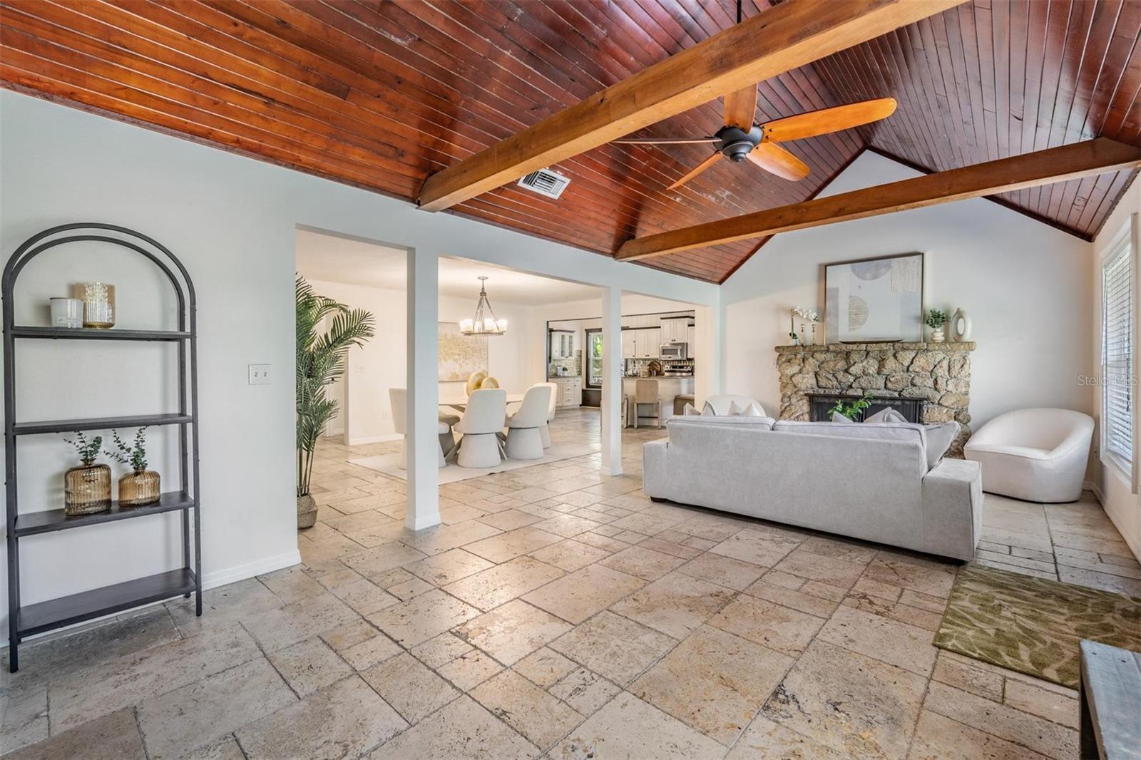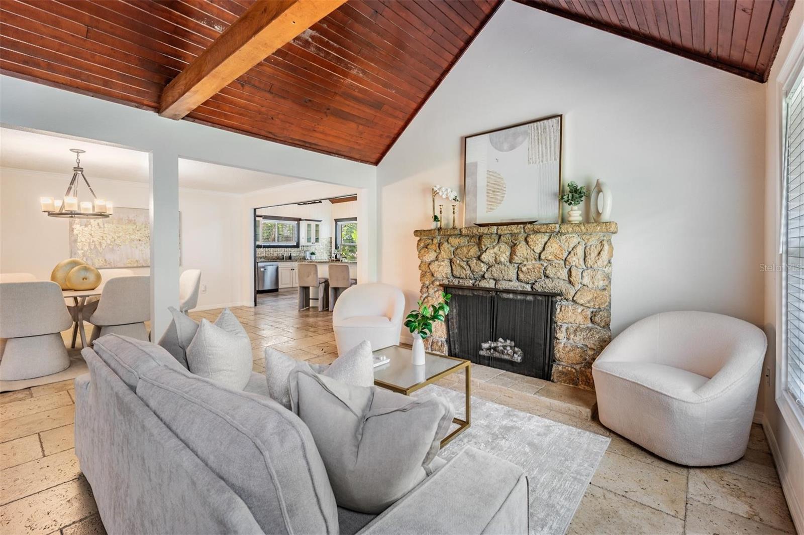 Localizado no sul de Tampa, no altamente procurado Distrito Escolar de Plantas, esta encantadora casa de 3 quartos e 2,5 banheiros com uma sala de bônus inclui um grande jardim de frente cercado que apresenta um pátio coberto de pérgola, cercado por paisagismo elegante-ideal para entretenimento ou relaxamento ao ar livre. Step inside and you’ll be greeted with beautiful travertine tile flooring, high vaulted wood ceilings, and a wood-burning fireplace, as well as plenty of natural light, making for a very warm, inviting space when you first walk in. Off to the right, you’ll find the expansive kitchen, boasting granite countertops, stainless steel appliances, and a large center island, all situated between the living and dining areas, making it perfect for hosting. A suíte primária possui lindas molduras de coroa, armários duplos e um banheiro luxuoso com bancada de granito duplo, uma banheira de imersão e um chuveiro. A sala de bônus contribui para um escritório perfeito ou uma sala flexível de sua escolha, enquanto a ala de hóspedes oferece dois quartos adicionais, além de um banheiro completo, e está situado longe da suíte primária para maior privacidade. Os destaques adicionais incluem uma lavanderia dedicada com meia banheira, uma garagem de 1 carro com uma garagem estendida para um amplo estacionamento, um sistema de aspersores ao ar livre e um telhado mais recente, substituído em outubro de 2022 para a paz de espírito adicional. Convenientemente localizado perto da I-275, do Aeroporto Internacional de Tampa, Raymond James Stadium, Tampa International Mall, Downtown Tampa e as melhores compras e refeições de South Tampa. Esta casa combina charme, funcionalidade e localização - não perca a oportunidade de vê -lo. Agende sua exibição particular hoje!