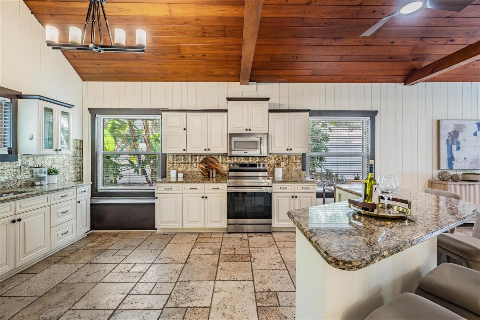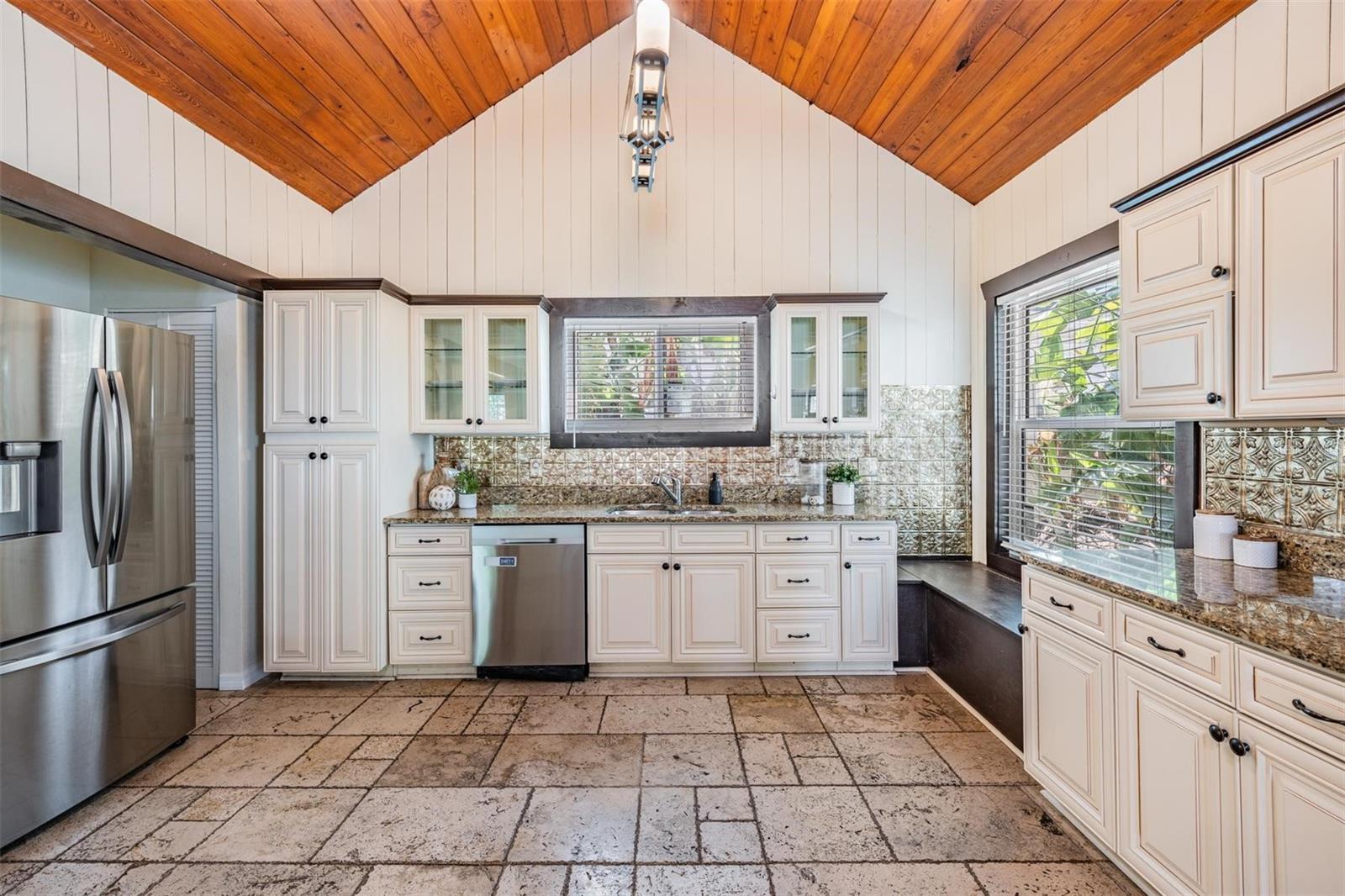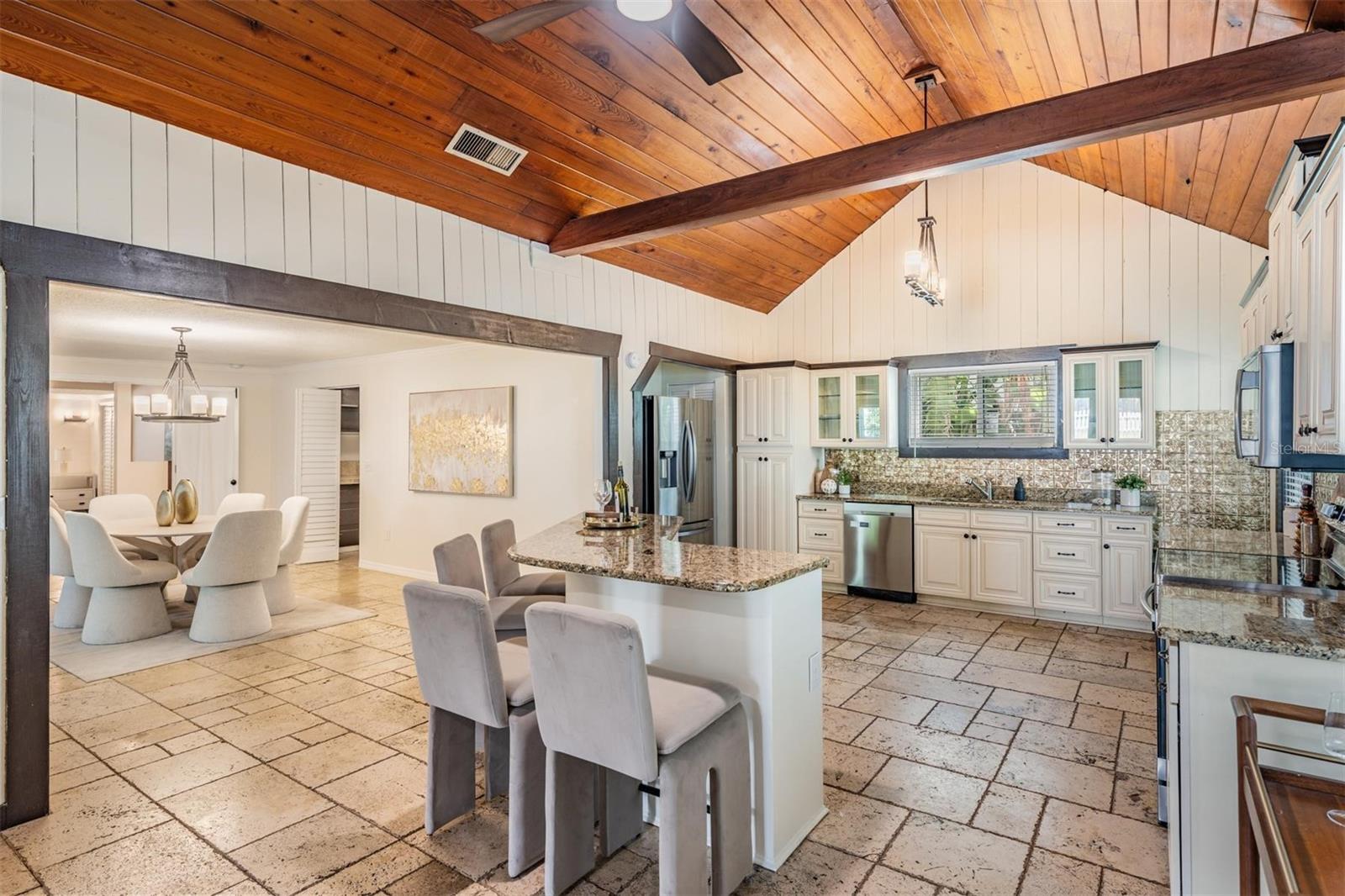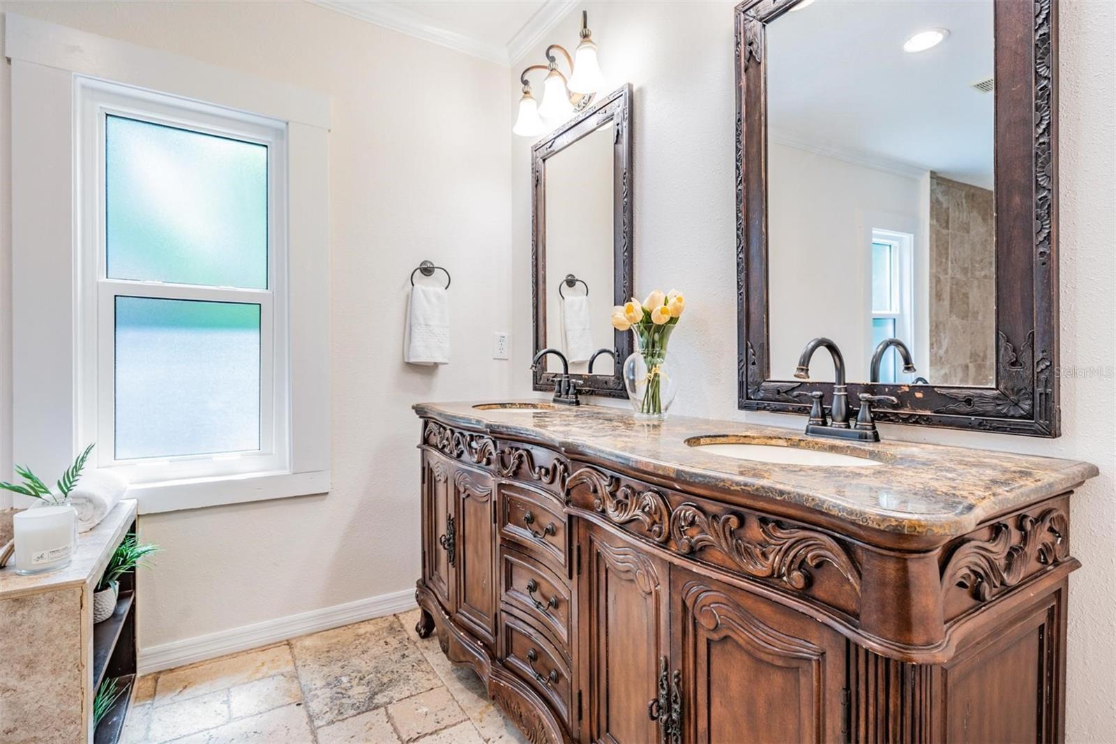Localizado no sul de Tampa, no altamente procurado Distrito Escolar de Plantas, esta encantadora casa de 3 quartos e 2,5 banheiros com uma sala de bônus inclui um grande jardim de frente cercado que apresenta um pátio coberto de pérgola, cercado por paisagismo elegante-ideal para entretenimento ou relaxamento ao ar livre. Step inside and you’ll be greeted with beautiful travertine tile flooring, high vaulted wood ceilings, and a wood-burning fireplace, as well as plenty of natural light, making for a very warm, inviting space when you first walk in. Off to the right, you’ll find the expansive kitchen, boasting granite countertops, stainless steel appliances, and a large center island, all situated between the living and dining areas, making it perfect for hosting. A suíte primária possui lindas molduras de coroa, armários duplos e um banheiro luxuoso com bancada de granito duplo, uma banheira de imersão e um chuveiro. A sala de bônus contribui para um escritório perfeito ou uma sala flexível de sua escolha, enquanto a ala de hóspedes oferece dois quartos adicionais, além de um banheiro completo, e está situado longe da suíte primária para maior privacidade. Os destaques adicionais incluem uma lavanderia dedicada com meia banheira, uma garagem de 1 carro com uma garagem estendida para um amplo estacionamento, um sistema de aspersores ao ar livre e um telhado mais recente, substituído em outubro de 2022 para a paz de espírito adicional. Convenientemente localizado perto da I-275, do Aeroporto Internacional de Tampa, Raymond James Stadium, Tampa International Mall, Downtown Tampa e as melhores compras e refeições de South Tampa. Esta casa combina charme, funcionalidade e localização - não perca a oportunidade de vê -lo. Agende sua exibição particular hoje!