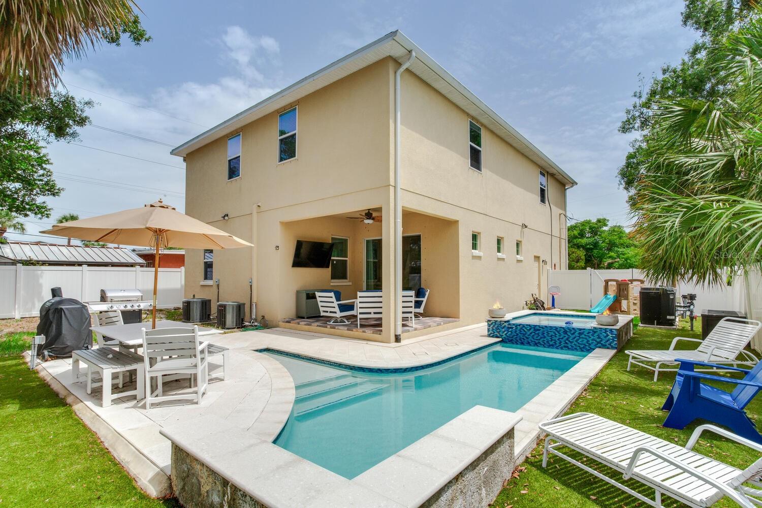 VENDEDOR MOTIVADO - SOUTH TAMPA VIVENDO NO SEU MELHOR!! Procurando uma CASA DE 5 QUARTOS COM PISCINA E SPA NOVIDADES no coração de South Tampa? Desfrute de um sistema solar totalmente próprio que alimenta toda a casa e piscina, proporcionando economia de serviços públicos a longo prazo, com uma conta de energia elétrica em média de apenas US$ 16/mês. Esta é sua chance de ter tudo. ESTA CASA NÃO ESTÁ EM ZONA DE INUNDAÇÃO E NÃO INUNDOU. Construída em 2018 e mantida impecavelmente, esta espaçosa casa de dois andares oferece 5 quartos e 3 banheiros completos. O arrumos/quinto quarto flexível está localizado no primeiro andar próximo a um banheiro completo, o que o torna ideal para um home office ou suíte privativa para sogros. Localizado a poucos quarteirões de Bayshore Boulevard, MacDill AFB, SOHO e Westshore - com fácil acesso a lojas, restaurantes, entretenimento, eventos esportivos e a apenas 30 minutos das praias do Golfo - este local é verdadeiramente imbatível. Entre em uma impressionante planta baixa de conceito aberto com rico piso de madeira em todo o nível principal e uma escada de ferro forjado que acrescenta elegância e personalidade. A cozinha gourmet foi projetada para os entusiastas da culinária, apresentando bancadas de granito, armários modernos com sancas, um backsplash elegante e muito espaço de armazenamento. No andar de cima, a luxuosa suíte principal apresenta um teto falso e um banheiro privativo grande de 11x11 com pia dupla, armários estilo shaker e um box amplo separado. O oásis cercado no quintal possui uma nova piscina e spa aquecidos e refrigerados, perfeitos para diversão durante todo o ano. Relaxe sob o pátio coberto enquanto assiste ao jogo ou recebe familiares e amigos. E o melhor de tudo? O sistema solar do telhado será pago no fechamento, oferecendo eficiência energética e tranquilidade nos próximos anos. Não perca esta rara oportunidade de possuir uma casa com eficiência energética e pronta para morar, com todas as atualizações modernas em um dos bairros mais procurados de Tampa! Este desejável endereço em South Tampa permitirá que você esteja no Aeroporto Internacional de Tampa em 20 minutos e no centro de Tampa em apenas 12 minutos. Ligue hoje para sua exibição privada!!