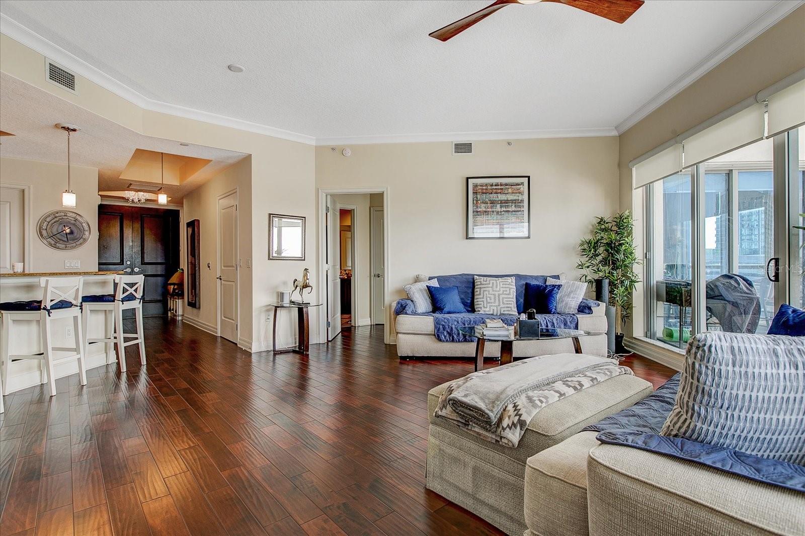 ** Melhora de US $ 100.000 de preços. Vendedor aberto para contribuir para uma taxa de compra ** Se você gosta de soltar o sol que solta o pôr do sol, este é o lugar para você! Bem-vindo a este condomínio lindamente projetado de 1338 SF com embrulho em torno da varanda, com 2 quartos e 2,5 banheiros localizados no 10º andar das torres procuradas de Channelside. Esta unidade espaçosa oferece um layout de conceito aberto cheio de luz natural e vistas de tirar o fôlego de todos os quartos. Ao entrar, você é recebido pelos pisos de madeira recém -refinados e meio banheiro, convenientemente localizado à esquerda, e uma lavanderia escondida à direita pela cozinha. A cozinha flui perfeitamente para a sala de estar brilhante e arejada, perfeita para entreter ou relaxar. A suíte master está localizada no lado esquerdo da unidade e possui um armário embutido, um armário de casaco adicional e um espaçoso banheiro privativo (azulejo e rejunte apenas refinados nos dois banheiros) completos com vaidades duplas, uma banheira e um chuveiro separado. O quarto de hóspedes fica no lado oposto da unidade e inclui seu próprio banheiro privativo e um closet. As janelas do chão ao teto fornecem uma abundância de luz natural e vistas deslumbrantes da cidade, as quais também podem ser apreciadas pelo amplo pátio aberto pavimentado com pedra italiana-ideal para café da manhã ou pôr do sol à noite. Uma unidade de armazenamento também está incluída na premissa, localizada perto dos 2 vagas de estacionamento atribuídas no 4º andar. Desfrute de comodidades no estilo resort em uma das comunidades de arranha-céus mais cobiçadas de Tampa. As Torres de Channelside oferecem concierge e segurança de 24 horas, uma piscina de 8 seções e 250.000 galões com vistas do horizonte, características e cachoeiras, paisagismo tropical, cabanas à beira da piscina e pavilhões de grelhados ao ar livre. As vantagens adicionais incluem dois parques de cães particulares no 5º andar e um clube residente com um lounge, TV de tela grande, bar, bilhar, sala de eventos e cozinha de catering para uso/reserva residente. Experimente o luxo que vive com as comodidades e um local imbatível entre o distrito de Water Street e o distrito de Channelside; Uma distância percorrida para a Amalie Arena, Sparkman Wharf, Predalina, Boulon Brasserie e muitos outros restaurantes de ponta e lojas de varejo de luxo.