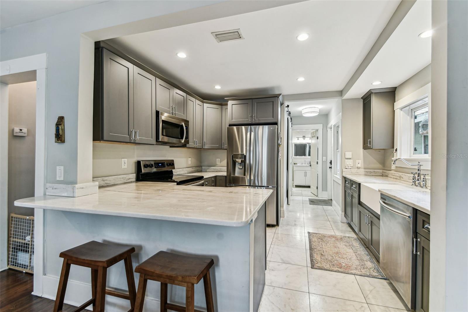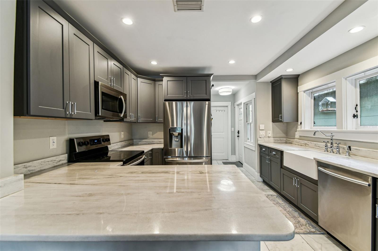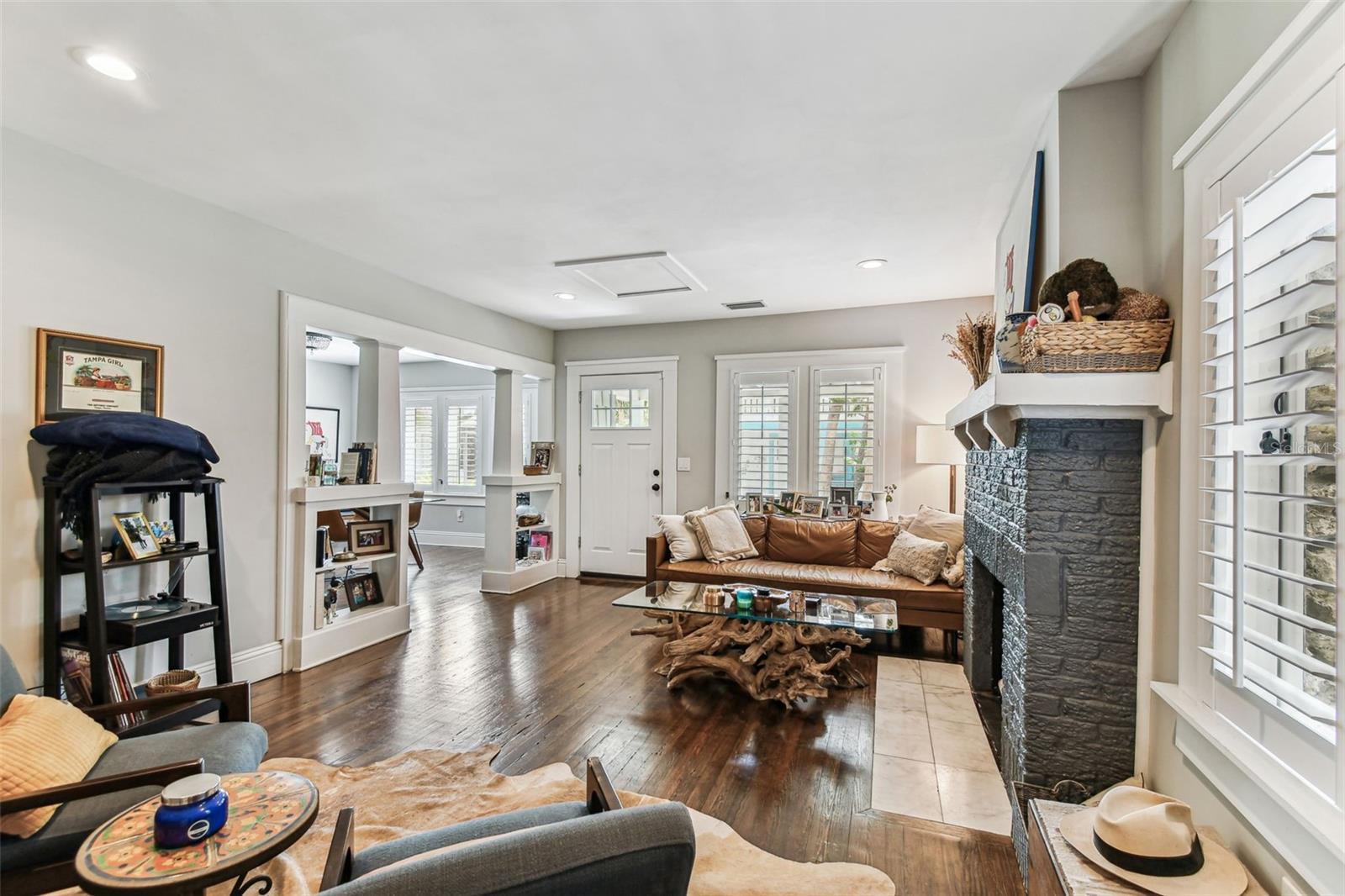 Aninhado no coração do icônico bairro de Bungalow Terrace de Tampa, esta casa combina lindamente o charme de 1916 com os recursos obrigatórios de hoje. Um dos únicos dois bangalôs na rua que oferecem estacionamento dedicado para dois veículos, esta jóia rara foi atenciosa, preservando sua alma de artesão. Entre em um cenário de livro de histórias com uma cerca branca que envolve um quintal da frente totalmente cercado, recém-concluído para seus amigos peludos e um gramado artificial de baixa manutenção e perfeita. As atualizações recentes incluem: o exterior recém-pintado e o telhado novo (maio de 2025) com nova chaminé piscando. No interior, pisos restaurados do coração de pinheiro, rico de usina arquitetônica, embutidos, persianas e uma lareira de madeira aconchegante convidam você a relaxar e ficar um pouco. A cozinha deslumbra com pisos de mármore, bancadas de quartzo, utensílios inoxidáveis de alta qualidade e pia da fazenda-um sonho para qualquer chef doméstico. A suíte primária no andar de baixo apresenta um armário de Walk-in na Califórnia e um banho de suíte de pia dupla, enquanto o segundo quarto no estilo loft do andar de cima oferece vistas de 360 graus nas janelas panorâmicas. Uma adição de cano de cobre encantador em um feixe exposto é um local perfeito para pendurar plantas. Desfrute de itens essenciais atualizados, como o PVC Plumbing, uma geladeira e lavadora/secadora em aço inoxidável de 2021 e seu próprio carregador Tesla - um achado raro neste distrito histórico. Idealmente localizado apenas degraus para os restaurantes, butiques, cinema e charme ao ar livre. Este é o que você estava esperando-Classic, Modern e Move-In Ready.